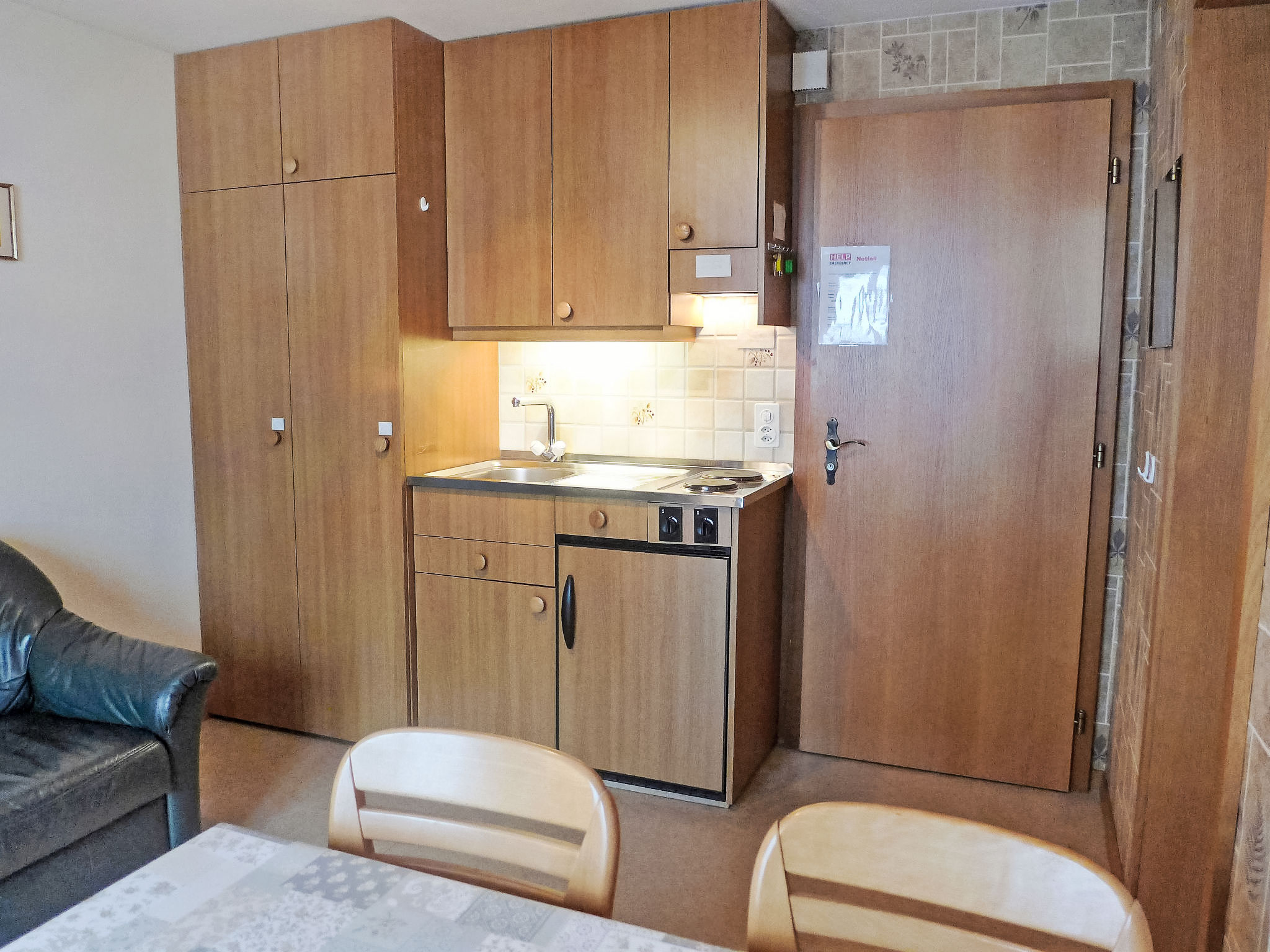 2-Zimmer-Wohnung 30 m2 im 4. Stock, Südlage. Zweckmässig eingerichtet: Wohn-/Esszimmer mit Sat-TV (Flachbildschirm). Ausgang zum Balkon, Richtung Süden und Richtung Westen. 1 Zimmer mit 1 Doppelbett (2 x 90 cm, Länge 200 cm). Ausgang zum Balkon, Richtung Süden und Richtung Westen. Kochnische (2 Kochplatten, Toaster, Wasserkocher, Mikrowelle, elektrische Kaffeemaschine, Racletteofen). Dusche/WC. Parkettboden. Balkon 8 m2, Südlage und Westlage. Balkonmöbel. Herrliche Sicht auf die Berge, die Skipiste, die Ortschaft und Eigernordwand. Zur Verfügung: Haartrockner. Internet (Wireless LAN, gratis). Parkplatz beim Haus. Bitte beachten: Nichtraucher-Unterkunft. Feuerlöscher, kein Fahrstuhl. Das Badezimmer liegt ausserhalb der Wohnung (1m, zur Alleinbenutzung).