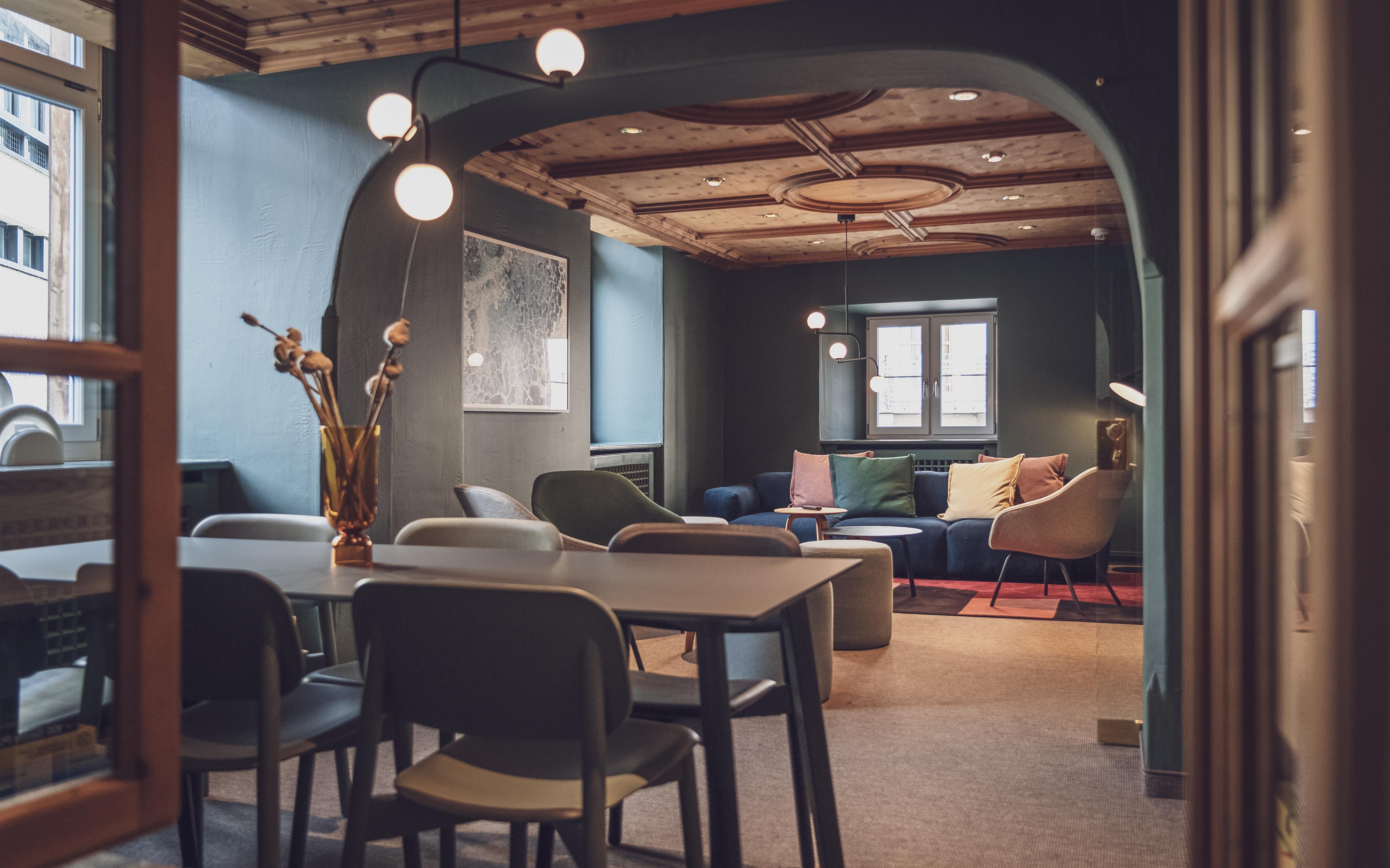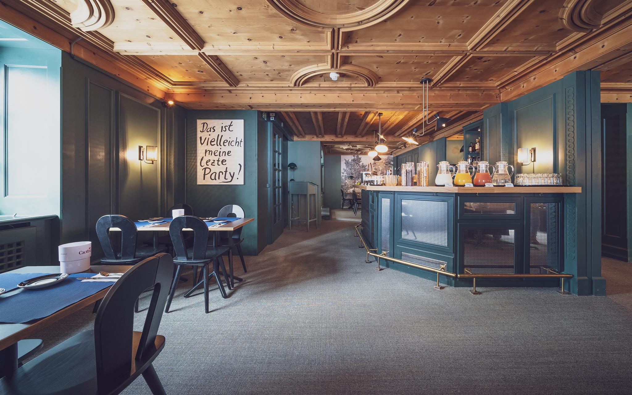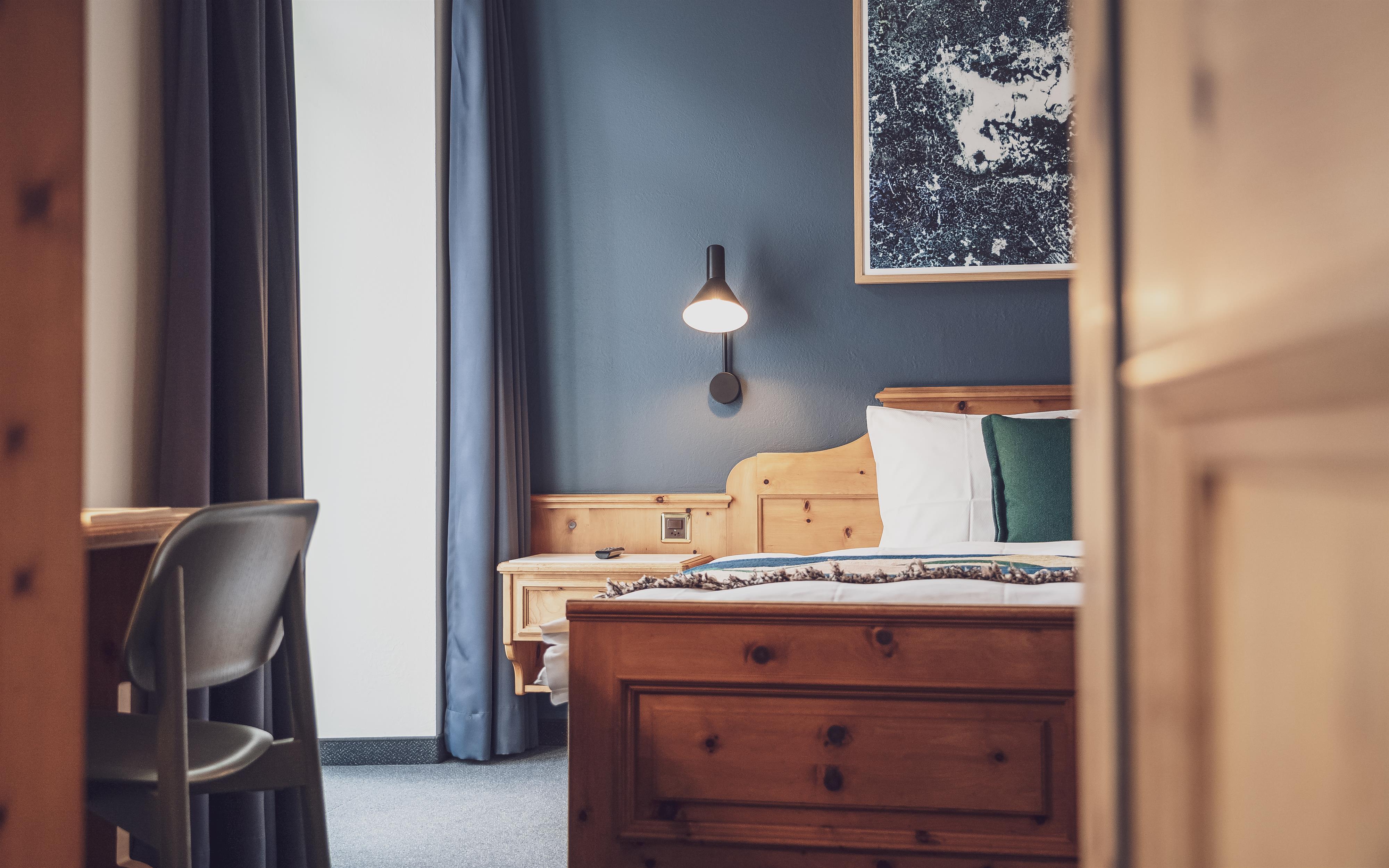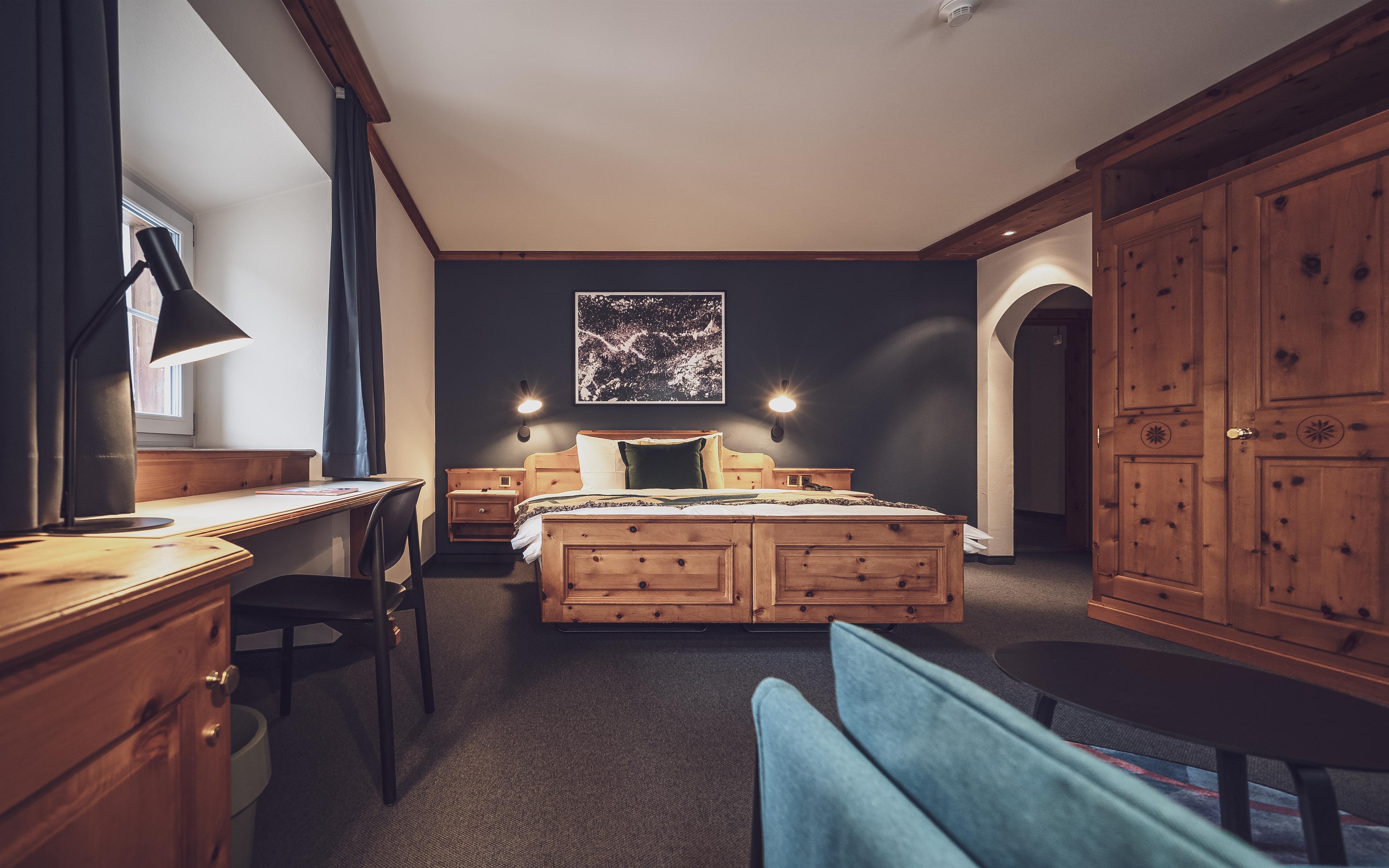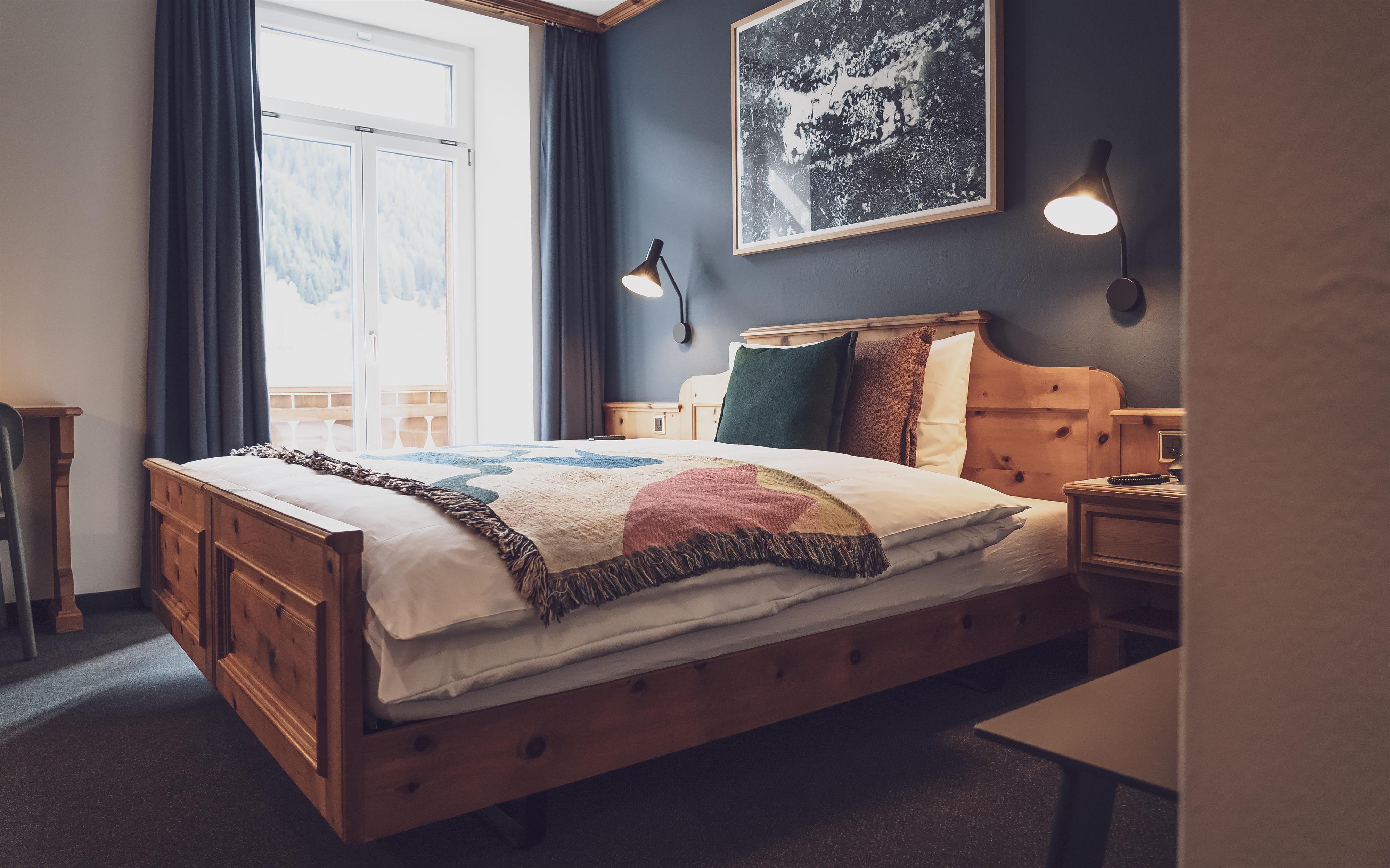 Aus dem Bett fallen und direkt auf die Piste – Im neu designten Davoserhof kein Problem! Das kontrastreiche Interieur vereint den Bündner Charme mit modernen Akzenten. So trifft das neu renovierte Hotel den Nerv der Zeit und richtet sich an ein unternehmenslustiges Publikum, dass die zentrale Lage des Hauses und die Ausgehmöglichkeiten im Hotel mit dem Musikclub und Bar Rotliechtli und dem stylischen Restaurant Piz Piz schätzten und dort die Nacht zum Tag machen. Der Davoserhof verfügt über 21 Zimmer mit Platz für bis zu 38 Gäste. Die grosszügigen Einzel- und Doppelzimmer mit Dusche/WC, Safe, Radio und Flachbildschirm-Fernseher sind gemütlich und mit stylischen Deko-Elementen. Das reichhaltige Frühstücksbuffet garantiert einen perfekten Start in traumhafte Urlaubstage in den Davos Klosters Mountains.