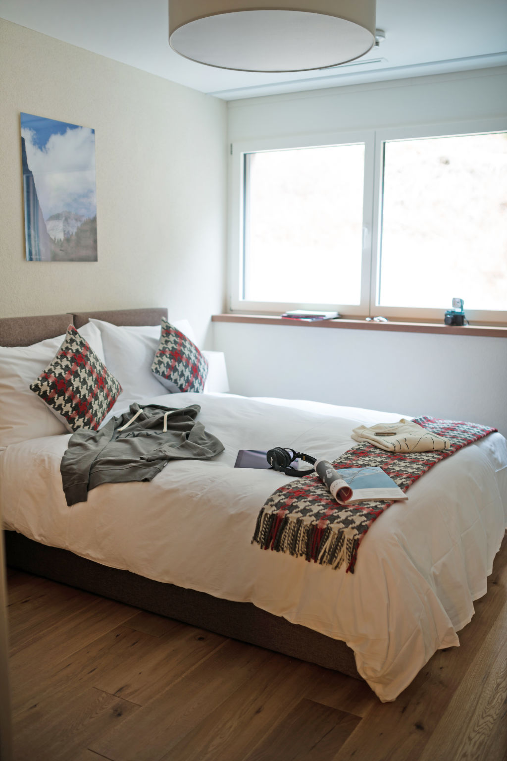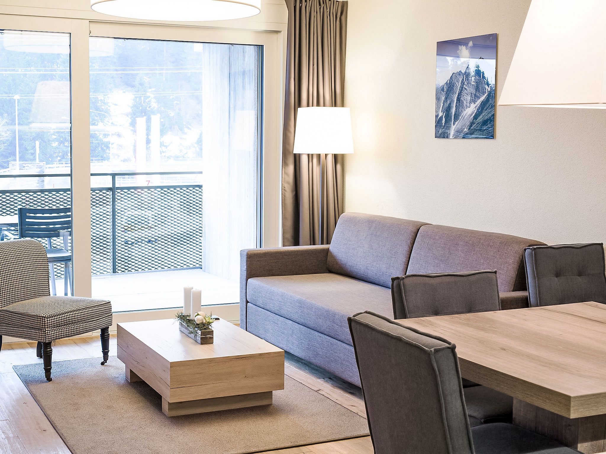 "Peaks Place 2.5", 2-Zimmer-Wohnung 55 bis 56 m2. Komfortabel und modern eingerichtet: Wohn-/Esszimmer mit 1 Diwanbett (80 cm, Länge 200 cm), 1 Wandklappbett (90 cm, Länge 200 cm), Kabel-TV (Flachbildschirm). 1 Doppelzimmer mit 1 Doppelbett. Offene Küche (Backofen, Geschirrspüler, 4 Induktionskochplatten, Wasserkocher). Bad/WC. Balkon. Balkonmöbel, Abstellkammer. Schöne Sicht auf die Berge und die Landschaft. Zur Verfügung: Safe, Babybett, Haartrockner. Internet (Wireless LAN). Bitte beachten: Nichtraucher-Unterkunft. Maximal 1 Haustier/Hund erlaubt.