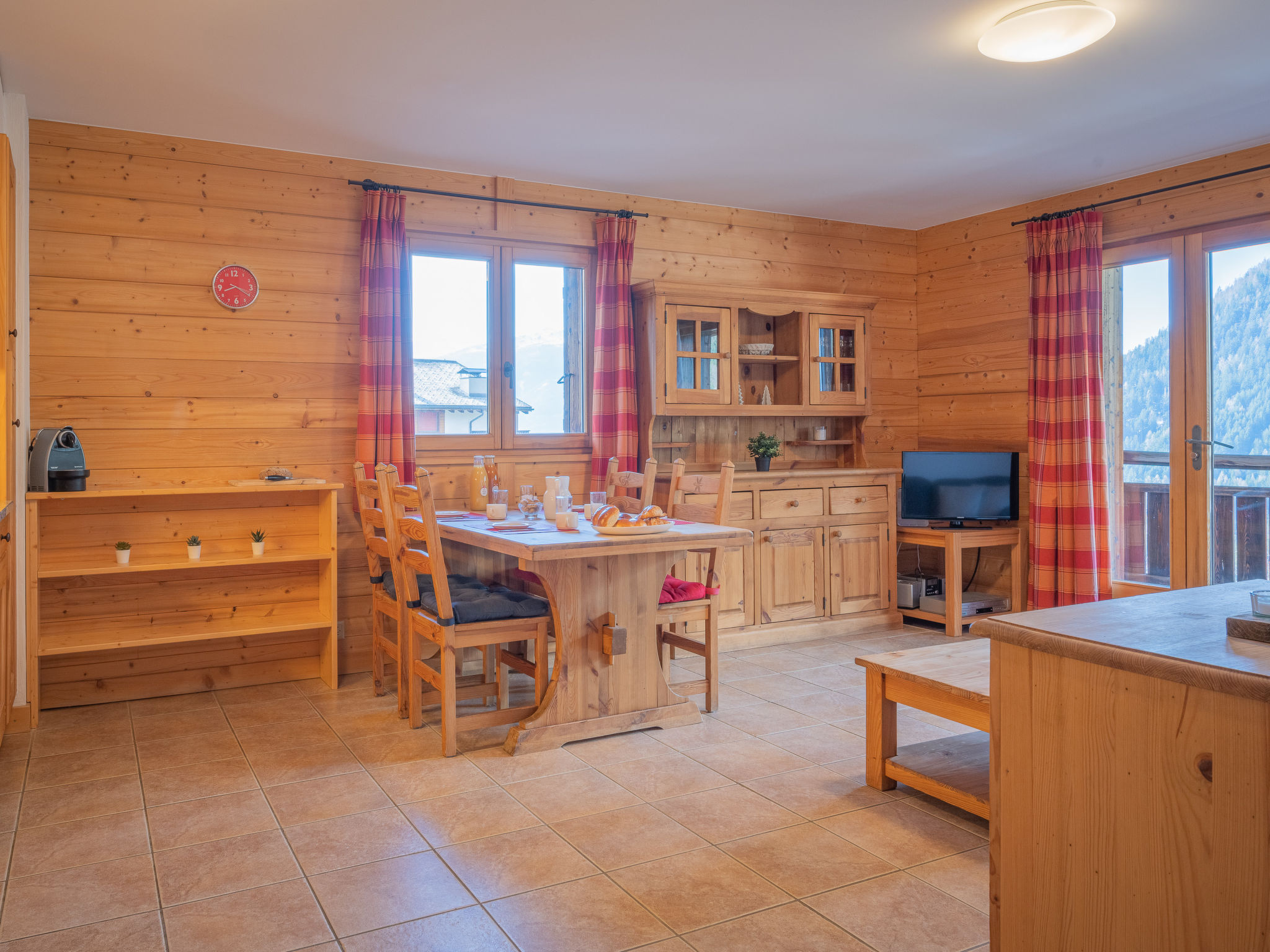 "Les Chalets de Marie A 21", 3-Zimmer-Wohnung 70 m2, Südostlage. Komfortabel und geschmackvoll eingerichtet: Wohn-/Esszimmer mit 1 Diwanbett (90 cm, Länge 190 cm), Esstisch, Kabel-TV, Video, Stereoanlage und DVD. Ausgang zum Balkon. 1 Zimmer mit 1 franz. Bett (1 x 160 cm, Länge 190 cm), Radio. 1 Zimmer mit 2 Betten (90 cm, Länge 190 cm). Offene Küche (4 Kochplatten, Backofen, Geschirrspüler, Mikrowelle, elektrische Kaffeemaschine, Kapseln für die Kaffeemaschine (Nespresso) extra). Dusche/WC, sep. WC. Terrasse 15 m2. Terrassenmöbel, Liegestühle (4). Sehr schöne Sicht auf die Berge und das Tal. Zur Verfügung: Bügeleisen, Babybett bis 3 Jahre, Haartrockner. Internet (WLAN, gratis). Garage Nr. 21, Höhe 215 cm. Bitte beachten: Nichtraucher-Unterkunft.