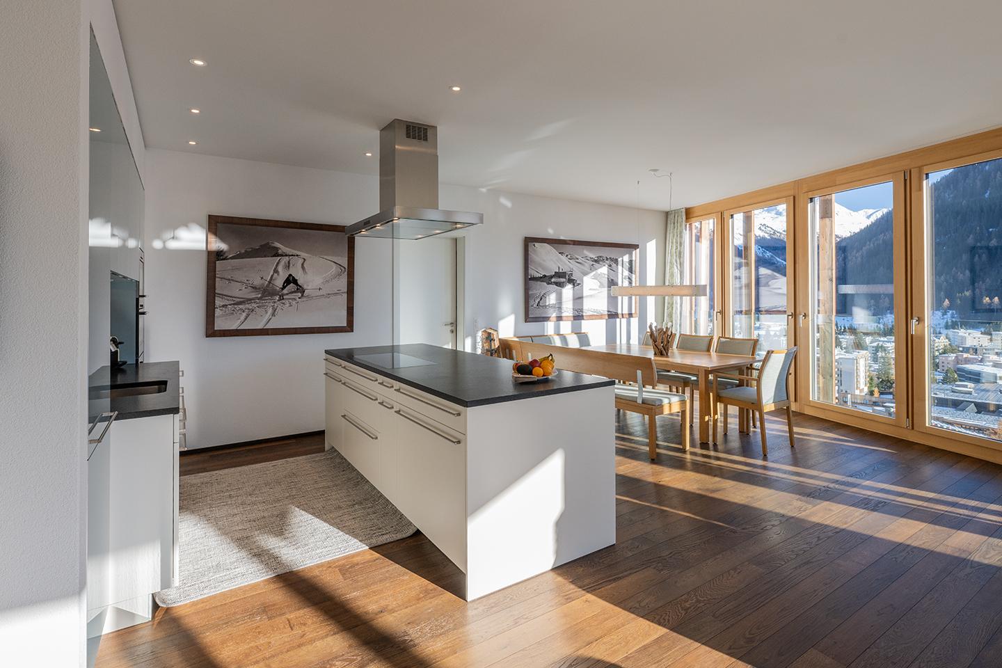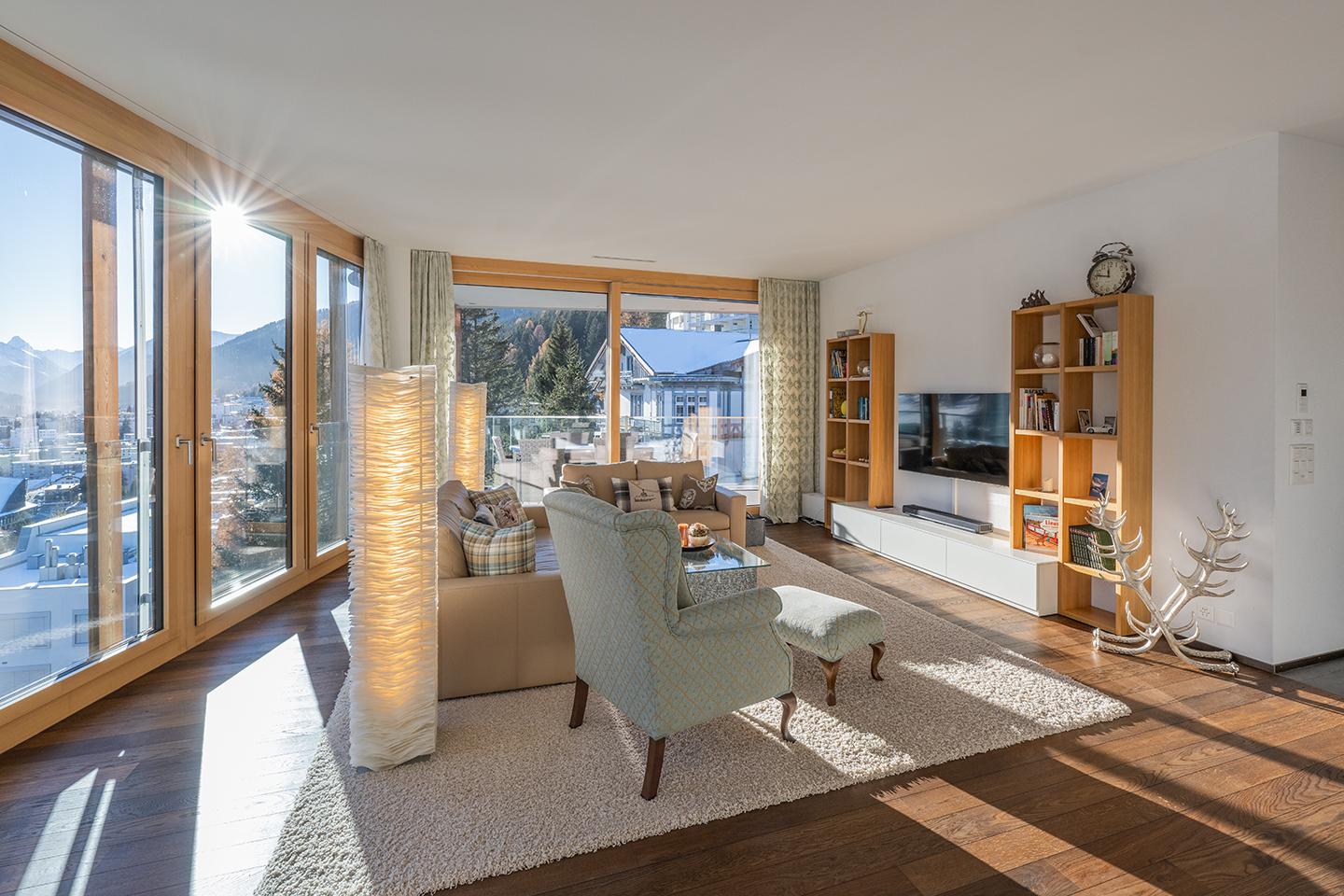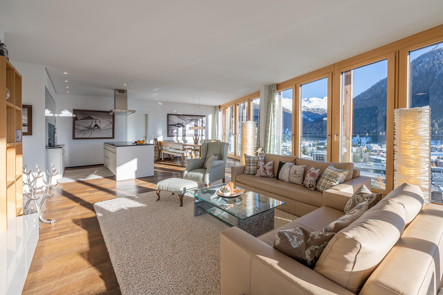 4 Zimmerwohnung (ca. 141 m2) im 6. OG; Mehrfamilienhaus mit Lift, Balkon; 2 Autoabstellplätze in Garage; Mitbenützung des Skiraumes, Waschmaschine/Tumbler; Küche mit Backofen, 4 Plattenglaskeramikherd, Kühlschrank mit Tiefgefrierfach, Geschirrspülmaschine; 3 Schlafzimmer mit Doppelbett mit zwei Matratzen; 1 Bad/WC, 2 Dusche/WC; Polstergruppe, Essecke, Bettwäsche, Frottewäsche, Küchentücher, Duvet, TV, WLAN, Abfallsäcke blau; Nichtraucher-Wohnung; Keine Haustiere erlaubt; Kinderreisebett steht auf Wunsch zur Verfügung.