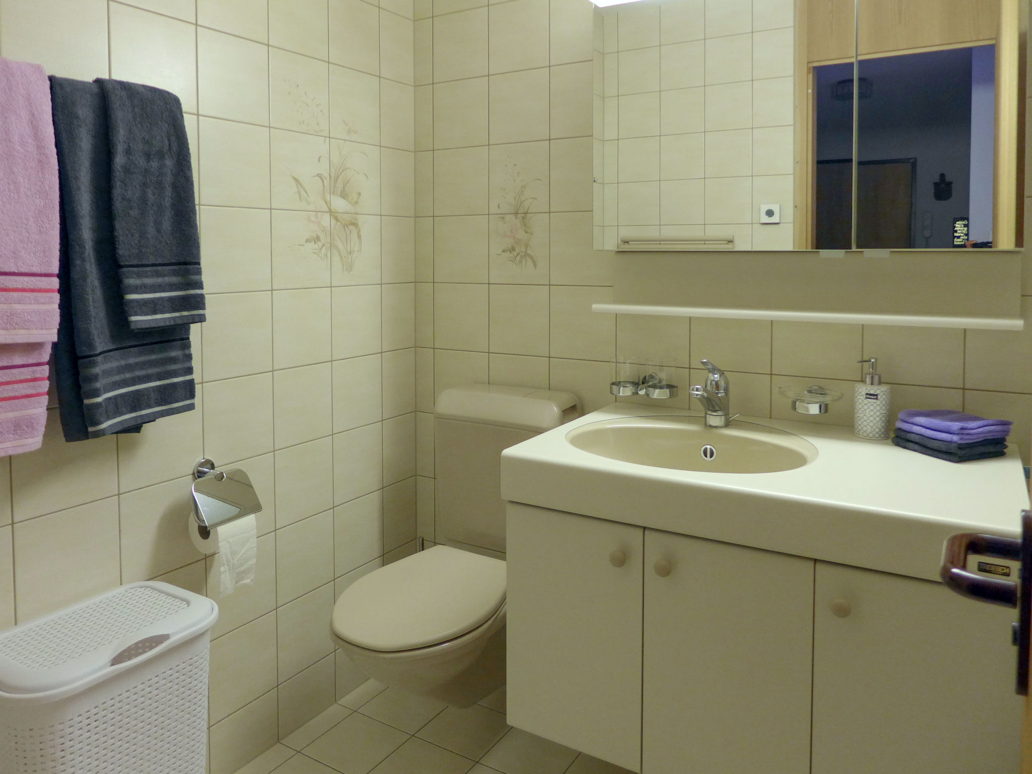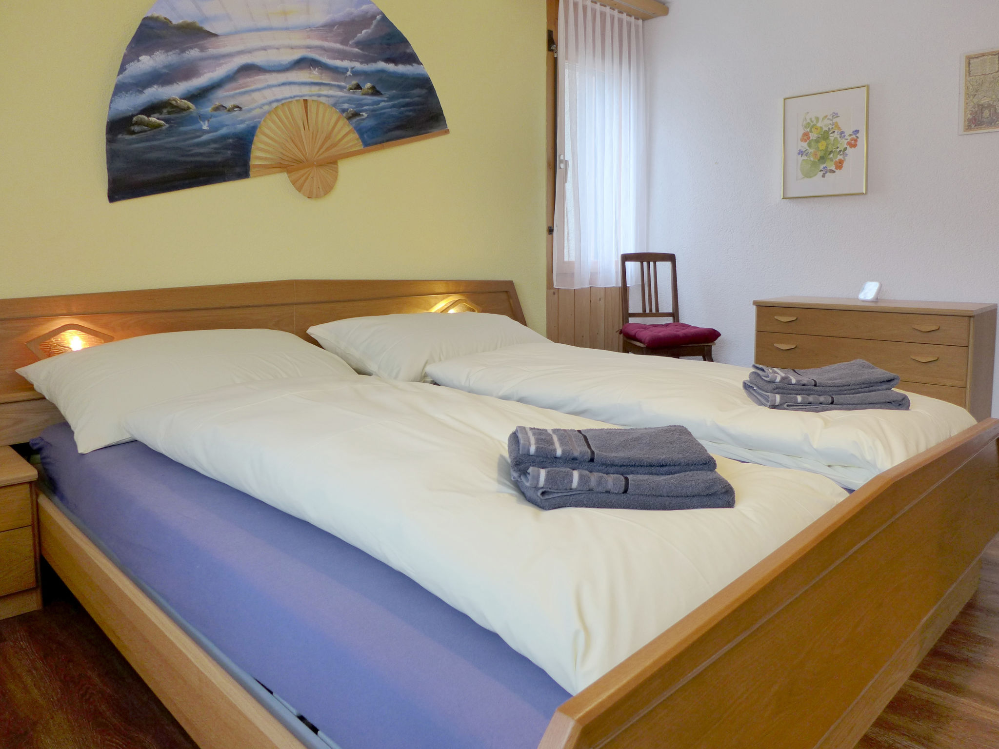 "Allmi", 3-Zimmer-Wohnung 75 m2 im 2. Stock, Südlage. Geräumig und hell, sehr komfortabel und gemütlich eingerichtet: offenes Wohn-/Esszimmer 30 m2 mit Esstisch und Kabel-TV (Flachbildschirm), Stereoanlage. Ausgang zum Balkon. 1 Zimmer mit 1 Bett (90 cm, Länge 200 cm), 1 franz. Bett (140 cm, Länge 200 cm). 1 Zimmer mit 1 Doppelbett (2 x 90 cm, Länge 200 cm). Offene Küche (Backofen, Geschirrspüler, 4 Glaskeramikplatten, Mikrowelle, elektrische Kaffeemaschine, Kapseln für die Kaffeemaschine (Delizio) extra, Racletteofen, Fondue Set (Käse)). Bad/Dusche/WC. Fussbodenheizung. Balkon, Südlage. Balkonmöbel, Elektrogrill. Sehr schöne Sicht auf die Berge und die Landschaft. Zur Verfügung: Bügeleisen, Kinderhochstuhl, Babybett, Haartrockner. Internet (WLAN, gratis). Parkplatz (überdacht, 1 Auto). Bitte beachten: geeignet für Familien. Nichtraucher-Unterkunft. Maximal 1 Haustier/Hund erlaubt. Rauchmelder.