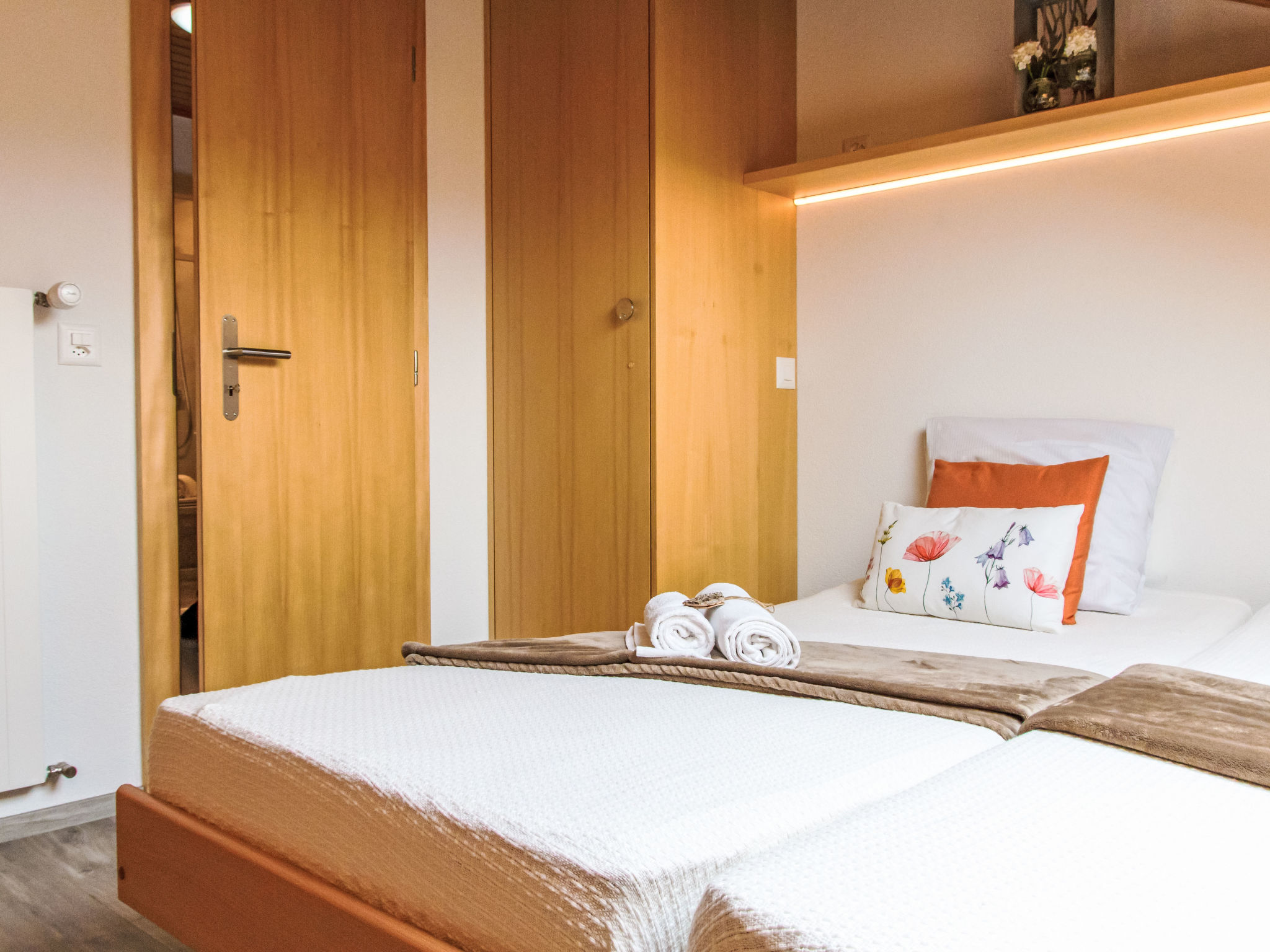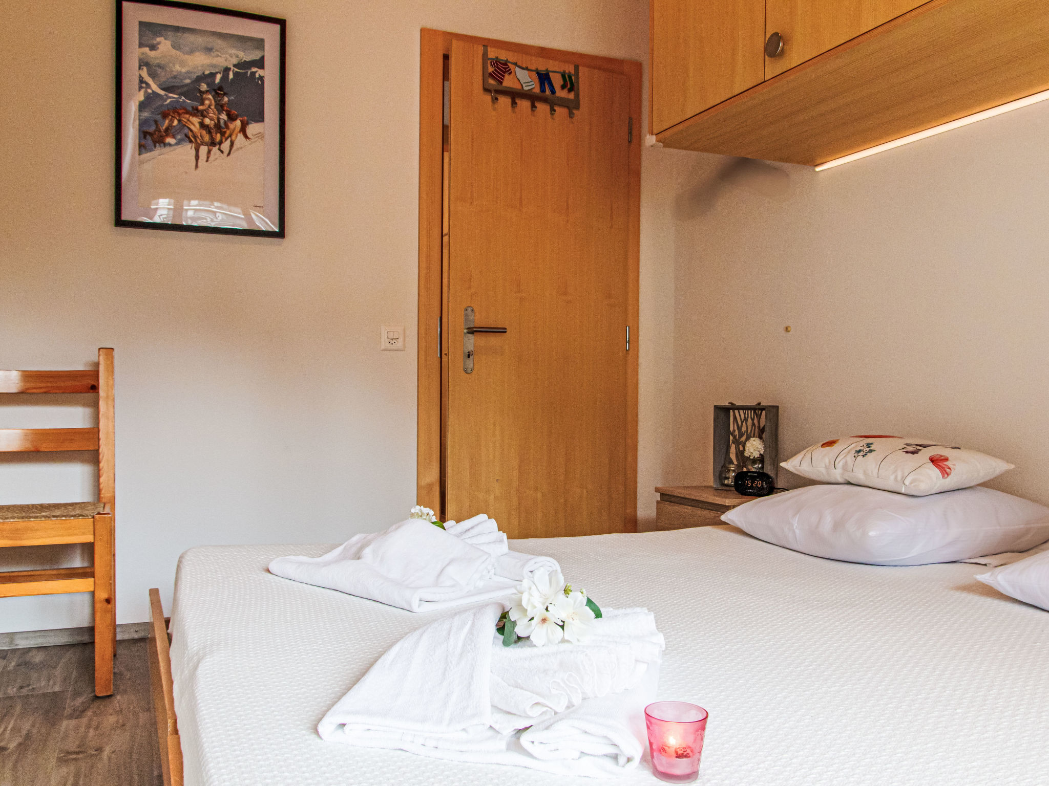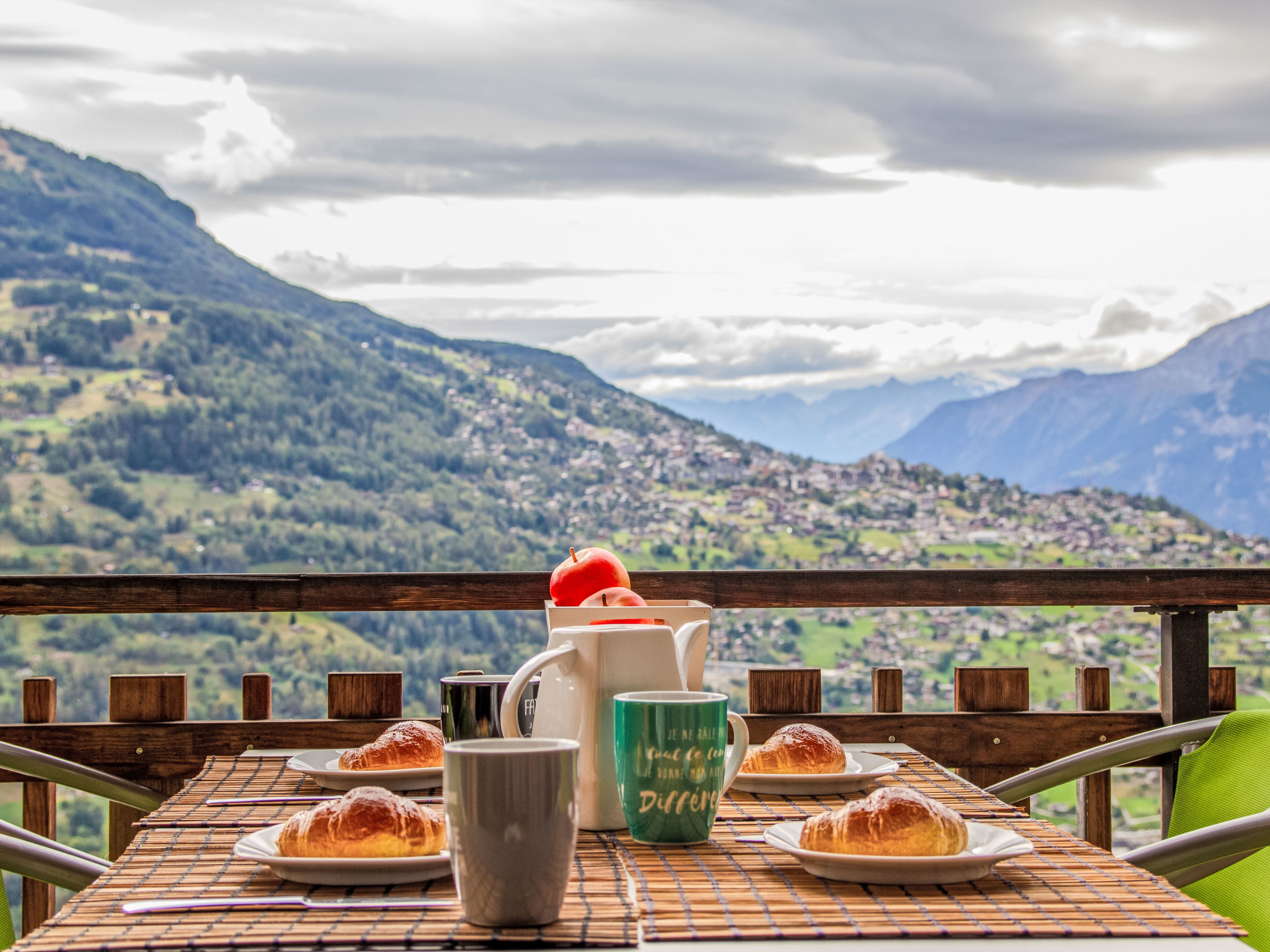 "Beau Soleil - Gentianes 40", 5-Zimmer-Wohnung 125 m2 im 3. Stock. Geräumig, teilweise renoviert, komfortabel und geschmackvoll eingerichtet: Eingang. Wohn-/Esszimmer mit Kabel-TV und CD. Ausgang zum Balkon. 3 Zimmer, jedes Zimmer mit 2 Betten (90 cm, Länge 190 cm). 1 Zimmer mit 2 Betten (90 cm, Länge 200 cm). Offene Küche (Backofen, Geschirrspüler, 4 Glaskeramikplatten, Toaster, Wasserkocher, Mikrowelle, Tiefkühler, elektrische Kaffeemaschine, Kapseln für die Kaffeemaschine (Senseo) extra, Racletteofen, Fondue Set (Käse)). Bad/WC, Dusche/WC. 2 Balkone, Westlage und Südostlage, kleine Terrasse. Balkonmöbel. Sehr schöne Sicht auf die Berge und das Tal. Zur Verfügung: Internet (WLAN, gratis). Bitte beachten: Nichtraucher-Unterkunft, kein Parkplatz.
