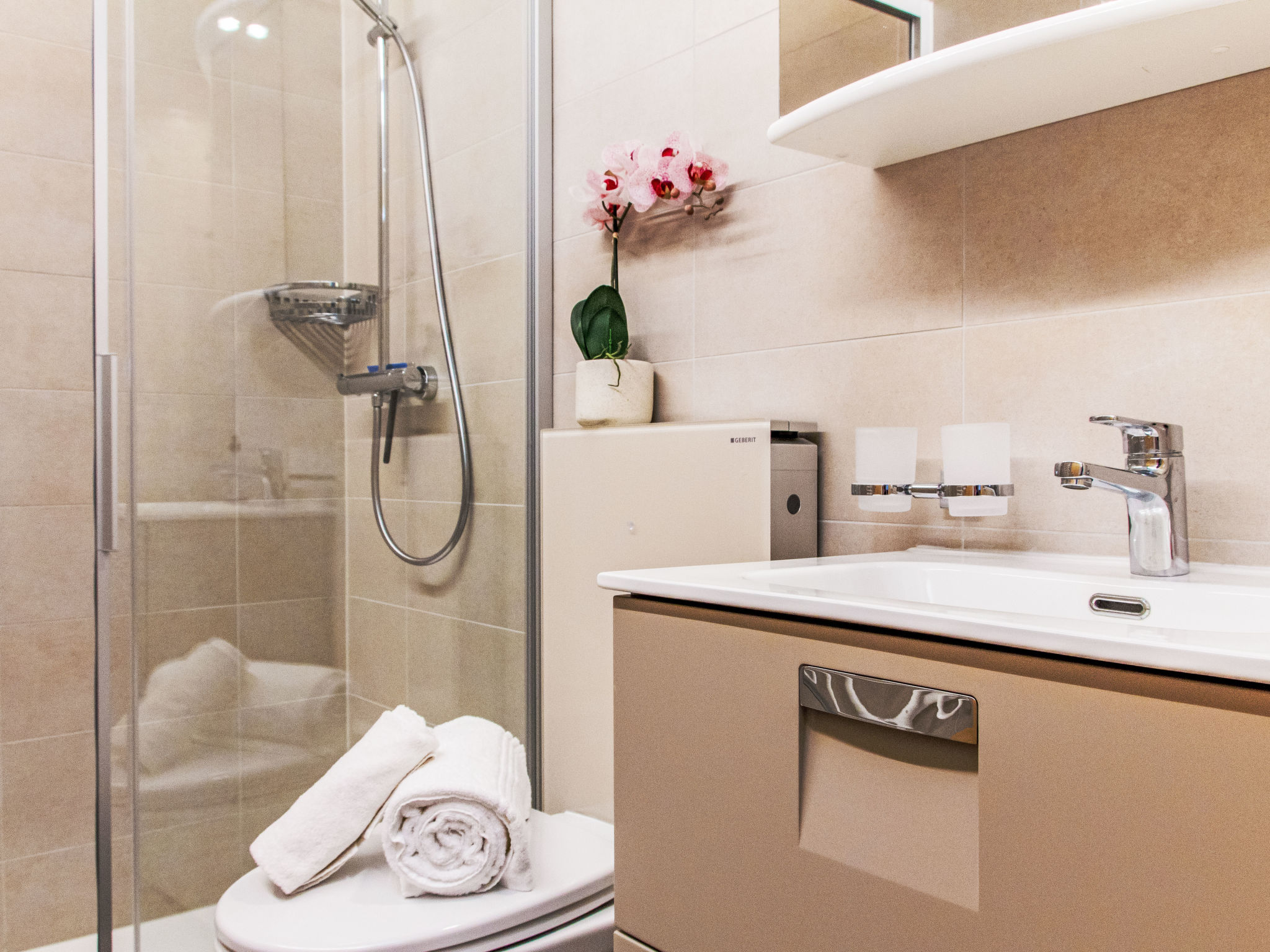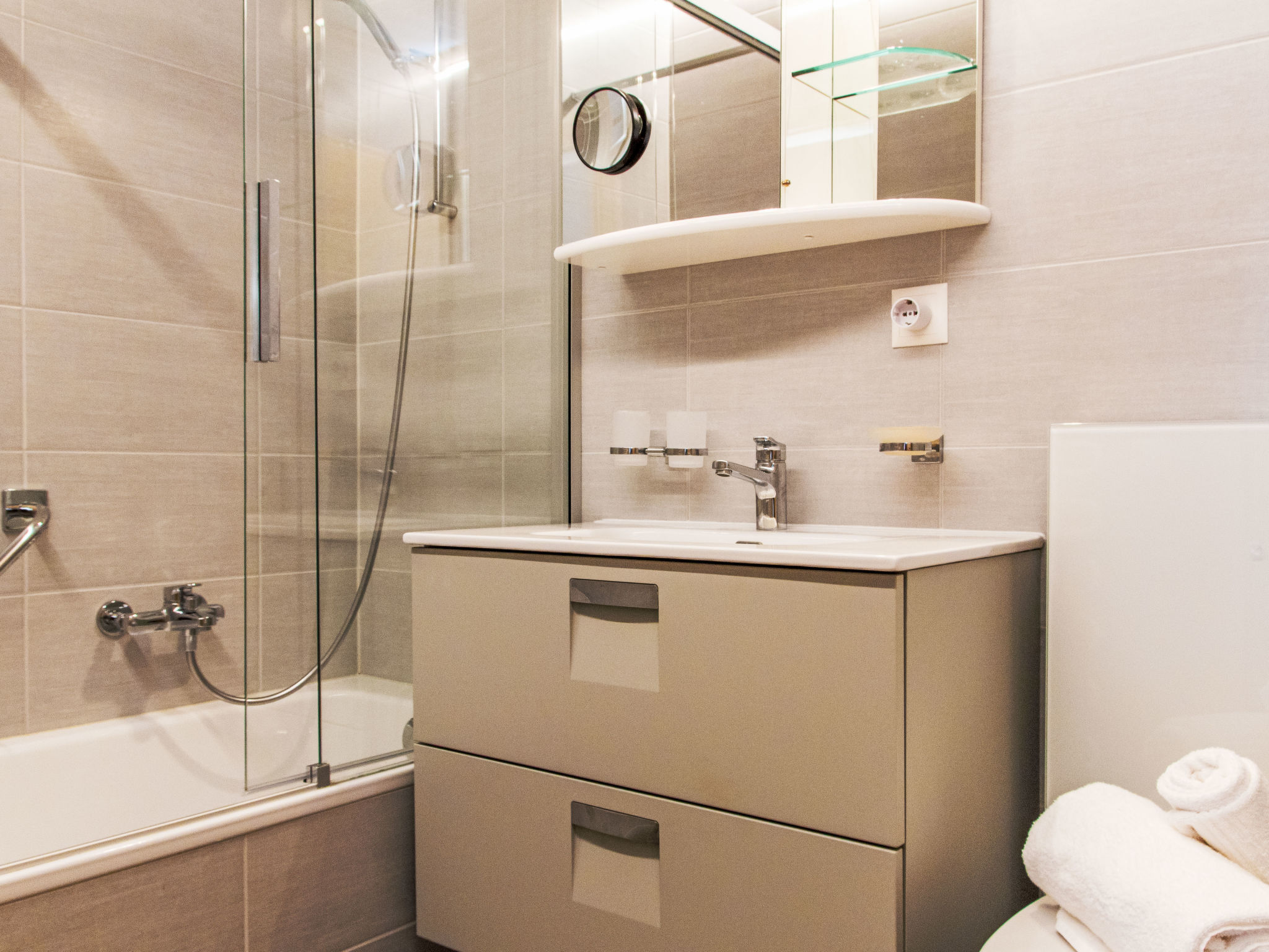 Appartementhaus "Beau Soleil - Gentianes", auf 4 Stockwerken. Zentrale Lage am Hang. Im Hause: Fahrstuhl, Zentralheizung, Waschmaschine (extra), Wäschetrockner (zur Mitbenutzung, extra). Im Winter bitte Schneeketten mitbringen. Öffentliches Parkhaus in 600 m, extra. Einkaufsgeschäft, Restaurant 100 m, Bäckerei 200 m, Bushaltestelle "Veysonnaz Station" 450 m, Bahnstation "Gare de Sion" 14 km, Hallenbad 50 m. Tennis 400 m, Gondelbahn 650 m, Skibushaltestelle 100 m. Bekannte Skigebiete sind gut erreichbar: 4 Vallées 650 m. Bitte beachten: Fahrstuhl nur bis 2. Stock. Der Besitzer akzeptiert keine Jugendgruppen.