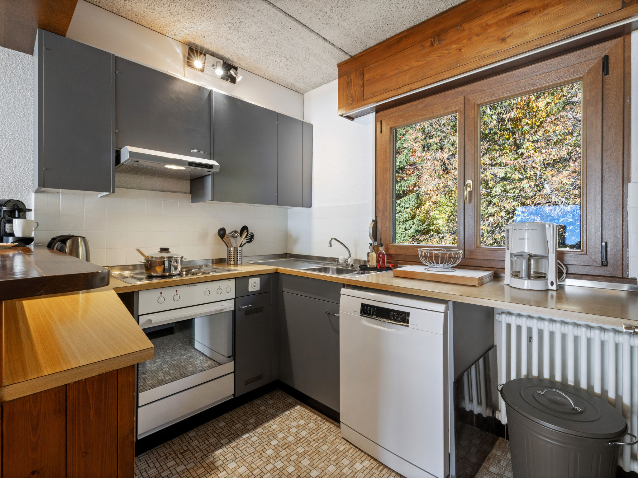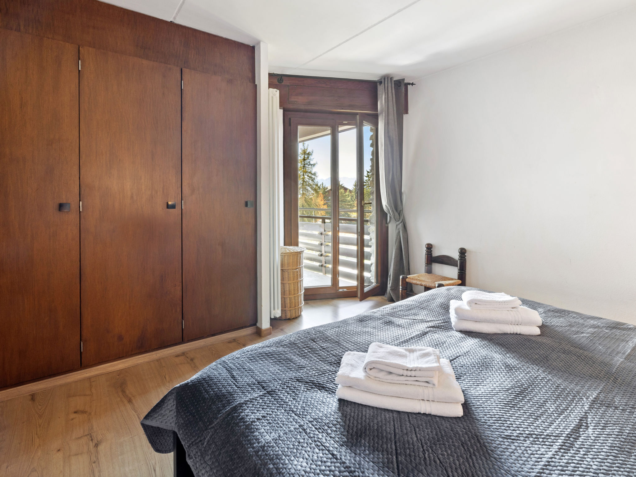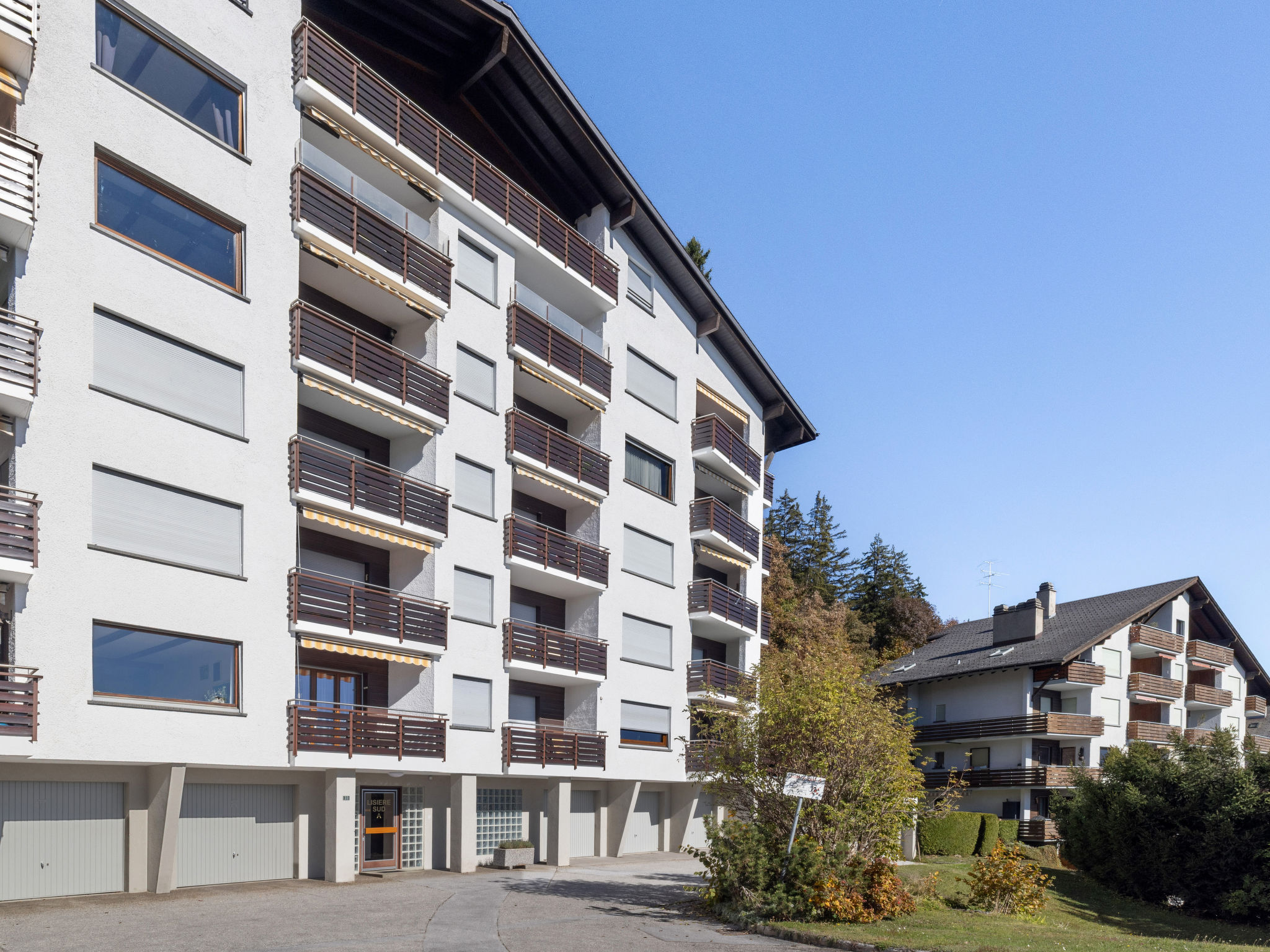 "Lisière-Sud A 17", 3-Zimmer-Wohnung 95 m2 im 5. Stock. Teilweise renoviert im Jahre 2020, schön eingerichtet: Wohn-/Esszimmer mit offenem Kamin und Kabel-TV. Ausgang zum Balkon, Richtung Süden. 1 Zimmer mit 1 franz. Bett (180 cm, Länge 200 cm), Bad/WC. Ausgang zum Balkon, Richtung Südwesten. 1 Zimmer mit 1 franz. Bett (140 cm, Länge 200 cm). Offene Küche (3 Kochplatten, Backofen, Geschirrspüler, Toaster, Wasserkocher, Mikrowelle, elektrische Kaffeemaschine, Kapseln für die Kaffeemaschine (Nespresso) extra, Racletteofen, Fondue Set (Käse)). Dusche/WC. Balkonmöbel. Sehr schöne Sicht auf die Berge. Zur Verfügung: Bügeleisen, Haartrockner. Internet (Wireless LAN, gratis). Garage Nr. 10/box, Höhe 190 cm, Breite 235 cm. Maximal 1 kleines Haustier/Hund erlaubt.