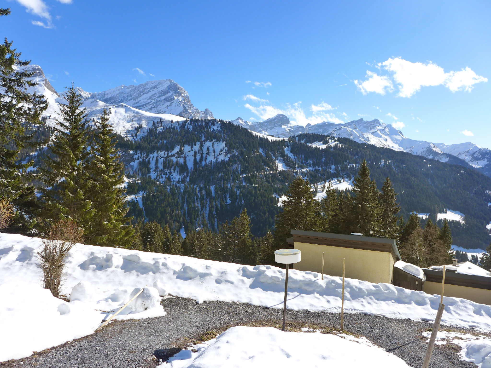 Alpe des Chaux 8 km von Villars: Feriensiedlung "Alpe des Chaux". Ruhige, sonnige, erhöhte Lage, Richtung Süden. Im Hause: Zentralheizung. Zufahrt bis 200 m zum Haus. Im Winter bitte Schneeketten mitbringen, im Winter 4x4 empfohlen. Parkplatz (beschränkte Anzahl). Restaurant 800 m, Bushaltestelle "Barboleuse" 5.4 km, Bahnstation "Barboleuse" 5.4 km. Sporthafen 28 km, Golfplatz (18 Loch) 15.5 km, Tennis 5.7 km, Tennishalle 8.7 km, Minigolf 5.1 km, Sportzentrum 8.7 km, Bergeisenbahn 8.1 km, Skilift 700 m, Gondelbahn 4.1 km, Skisportanlagen 800 m, Skipisten 600 m, Skibushaltestelle 400 m, Kinderskischule 5.1 km, Eisfeld 7.6 km, Kinderspielplatz 250 m. Bitte beachten: Fahrzeug empfohlen. Der gratis Skibus fährt zum Skigebiet Alpe des Chaux.