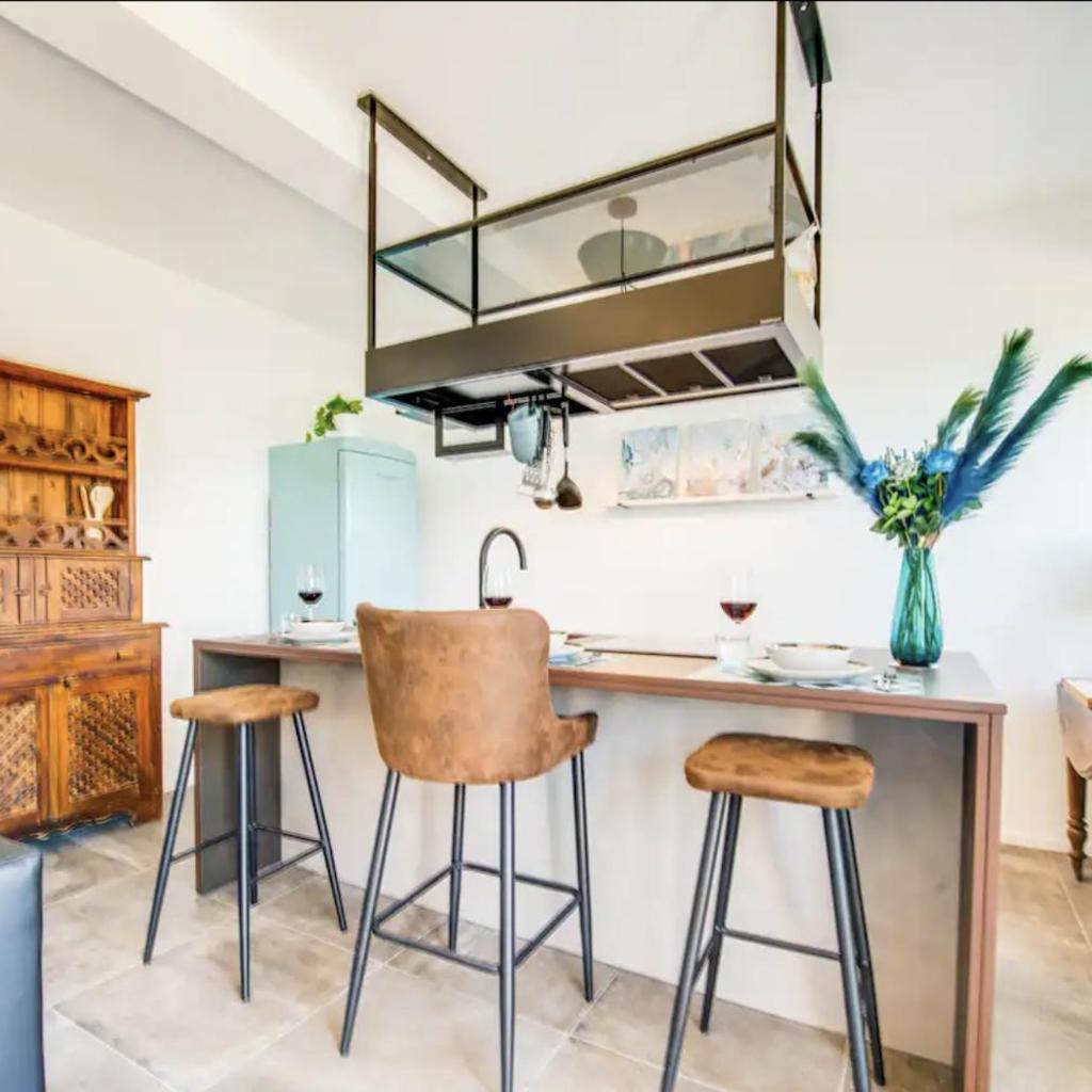Diese Ferienwohnung besteht aus 1 Schlafzimmer, einem Wohnzimmer, einer voll ausgestatteten Küchenzeile mit einem Kühlschrank und einem Wasserkocher sowie 1 Badezimmer mit einer Dusche und kostenlosen Pflegeprodukten. In dieser Ferienwohnung werden Handtücher und Bettwäsche angeboten.