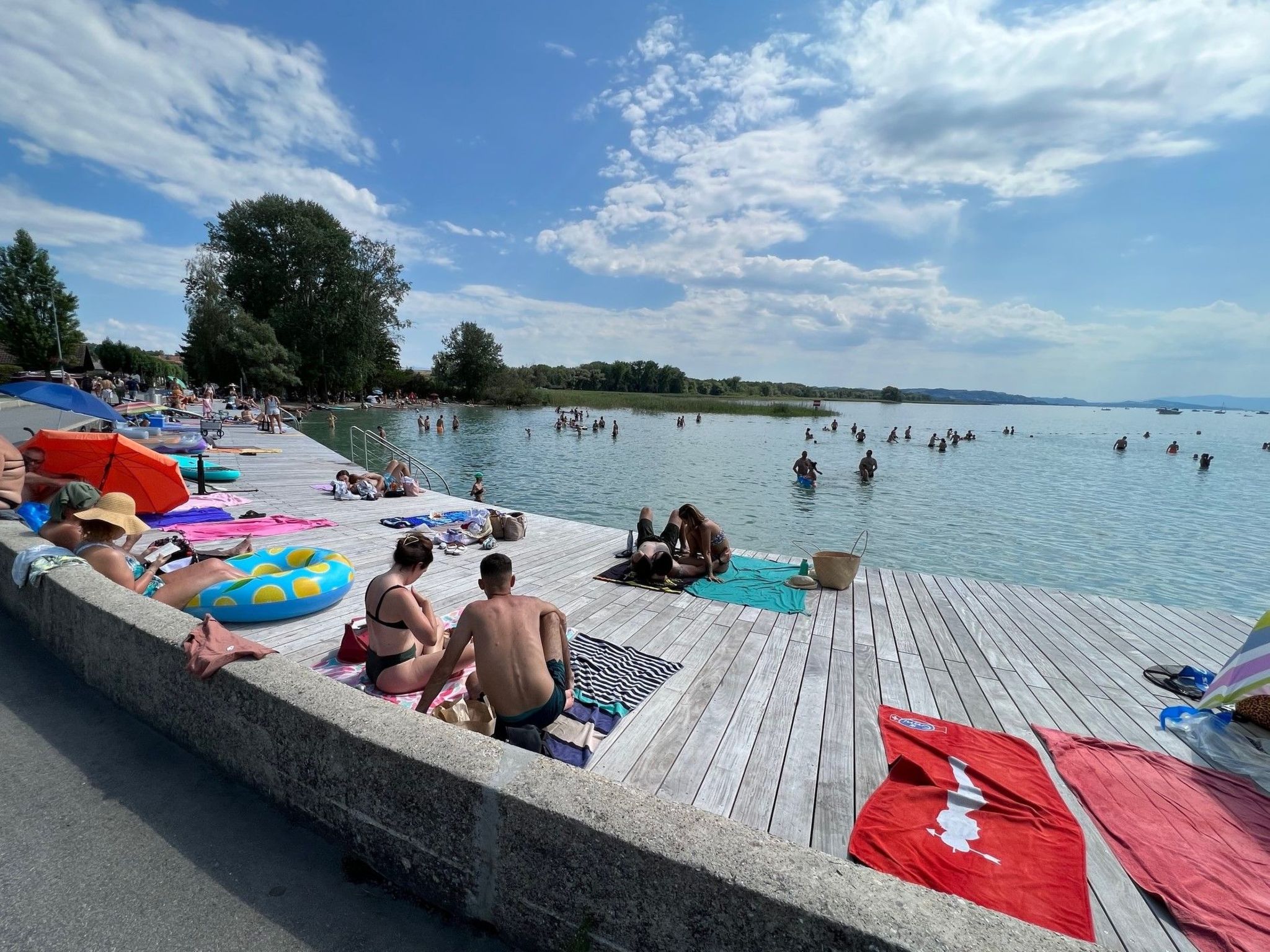 Umgeben von der natürlichen Schönheit des Schweizer Seenlandes genießt das Chalet eine beneidenswerte Lage, nur 200 Meter vom Strand und vom See entfernt, was einen leichten Zugang zu Badetagen oder Spaziergängen am Wasser ermöglicht. In 3 km Entfernung finden Sie ein Lebensmittelgeschäft für Ihren Bedarf, und die örtlichen Restaurants laden dazu ein, die regionalen Köstlichkeiten zu entdecken. Diese Lage macht es Ihnen leicht, die kulturellen und natürlichen Reichtümer der Region zu erkunden, und sorgt so für einen bereichernden Urlaub voller Entdeckungen.