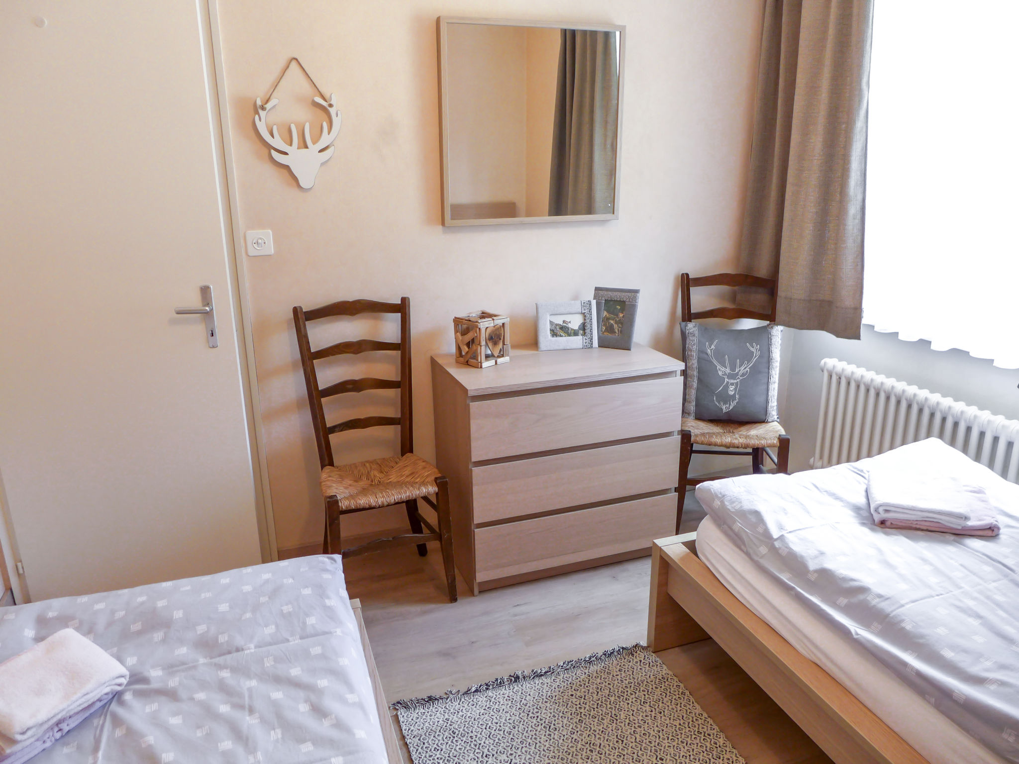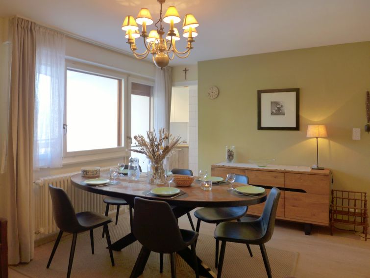 "Barzettes-Vacances 558 / Entrée N° 18", 4-Zimmer-Wohnung 90 m2 im 3. Stock. Renoviert im Jahre 2020: Wohn-/Esszimmer mit Kabel-TV, Flachbildschirm und DVD. 1 Zimmer mit 2 Betten (90 cm, Länge 200 cm). 1 Zimmer mit 1 franz. Bett (160 cm, Länge 200 cm). 1 Zimmer mit 1 x 2 Etagenbetten (90 cm, Länge 200 cm). Küche (Backofen, Geschirrspüler, 4 Glaskeramikplatten, Toaster, Wasserkocher, Mikrowelle, elektrische Kaffeemaschine, Kapseln für die Kaffeemaschine (NESPRESSO) extra, Racletteofen, Fondue Set (Chinoise)). Dusche/WC. Kleiner Balkon, Ostlage. Seitliche Sicht auf die Berge und den Wald. Zur Verfügung: Haartrockner. Internet (Wireless LAN, gratis). Bitte beachten: Nichtraucher-Unterkunft.