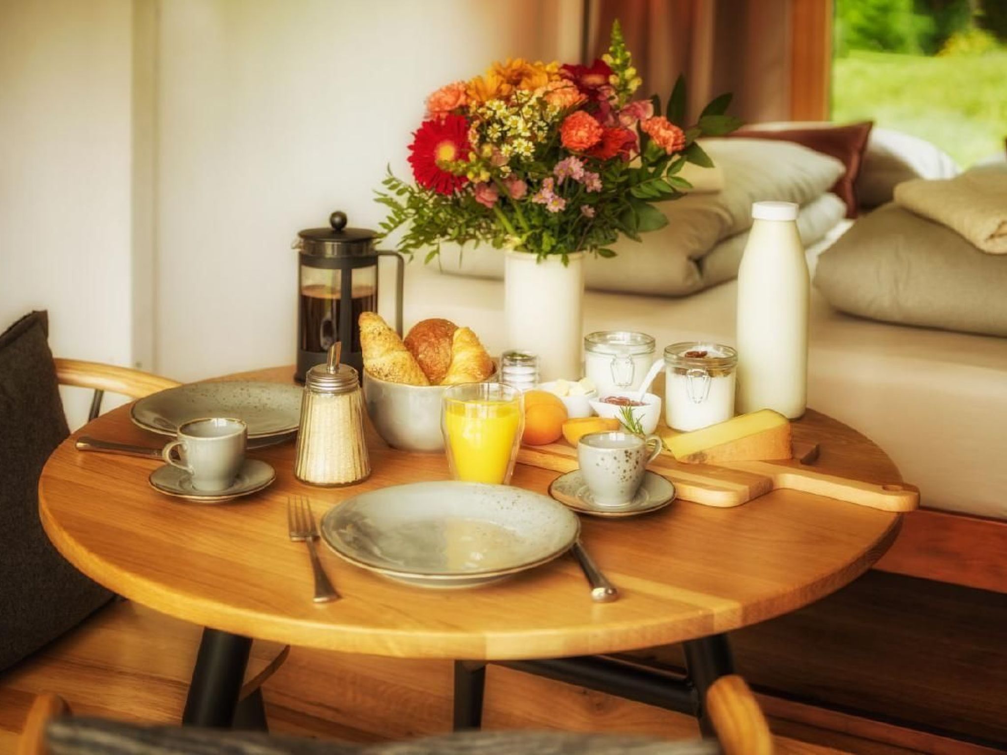Die frische Luft, der Duft von saftigen Wiesen, die Farben der Landschaft geprägt von den vier Jahreszeiten. Lausche dem Rauschen der Bäume im Wind und dem Plätschern des angrenzenden Wildbachs. Beobachte das Kreisen der Bussarde und höre die Kuhglocken friedvoll in der Ferne läuten. Hektik und Alltag sind in kürzester Zeit wie weggeblasen. Erlebe eine unvergessliche, natürliche Zeit.