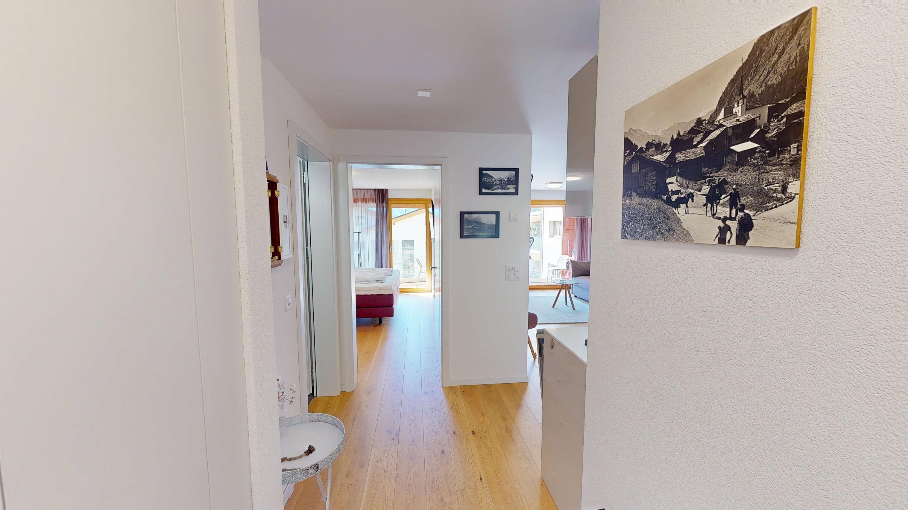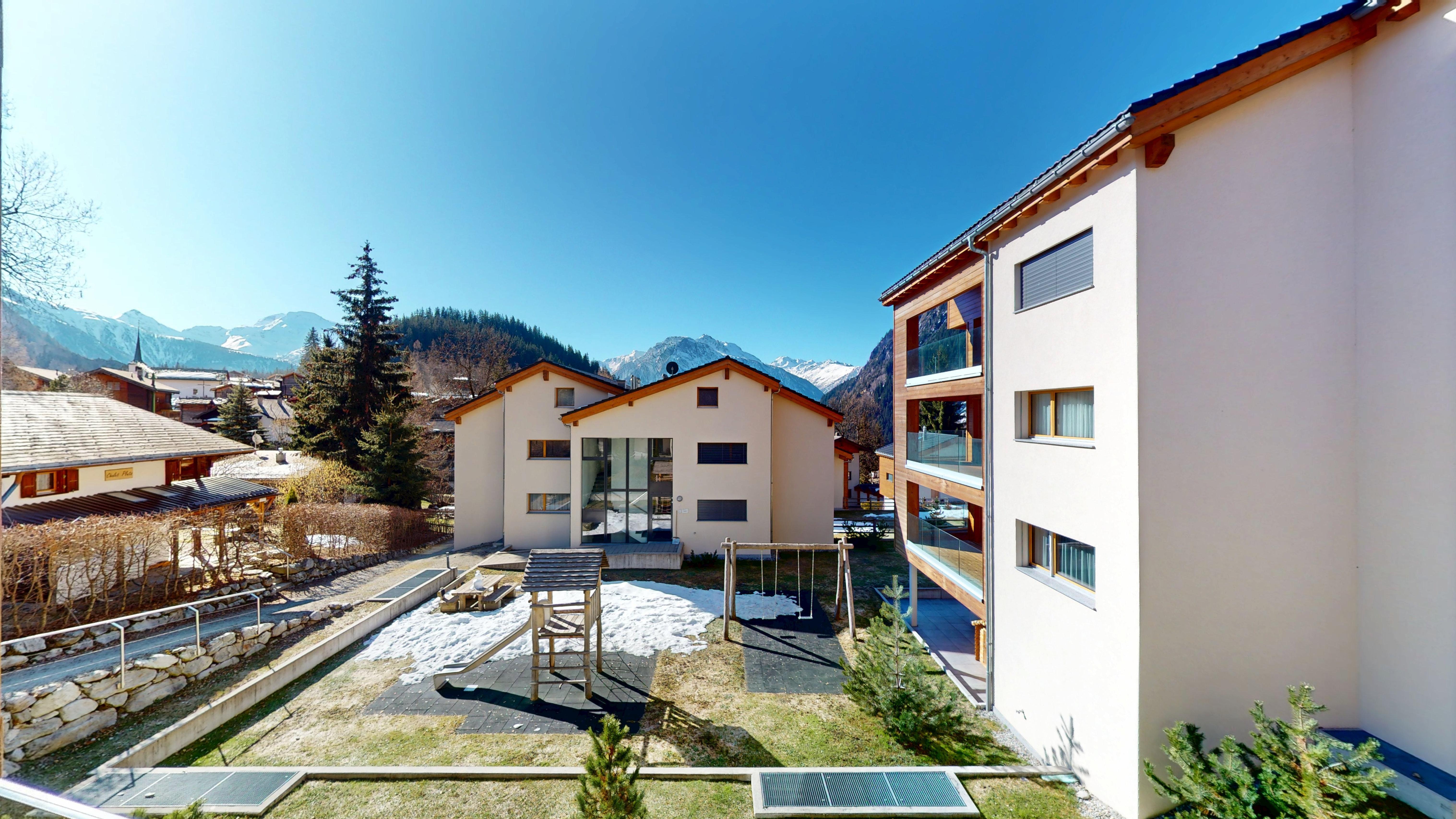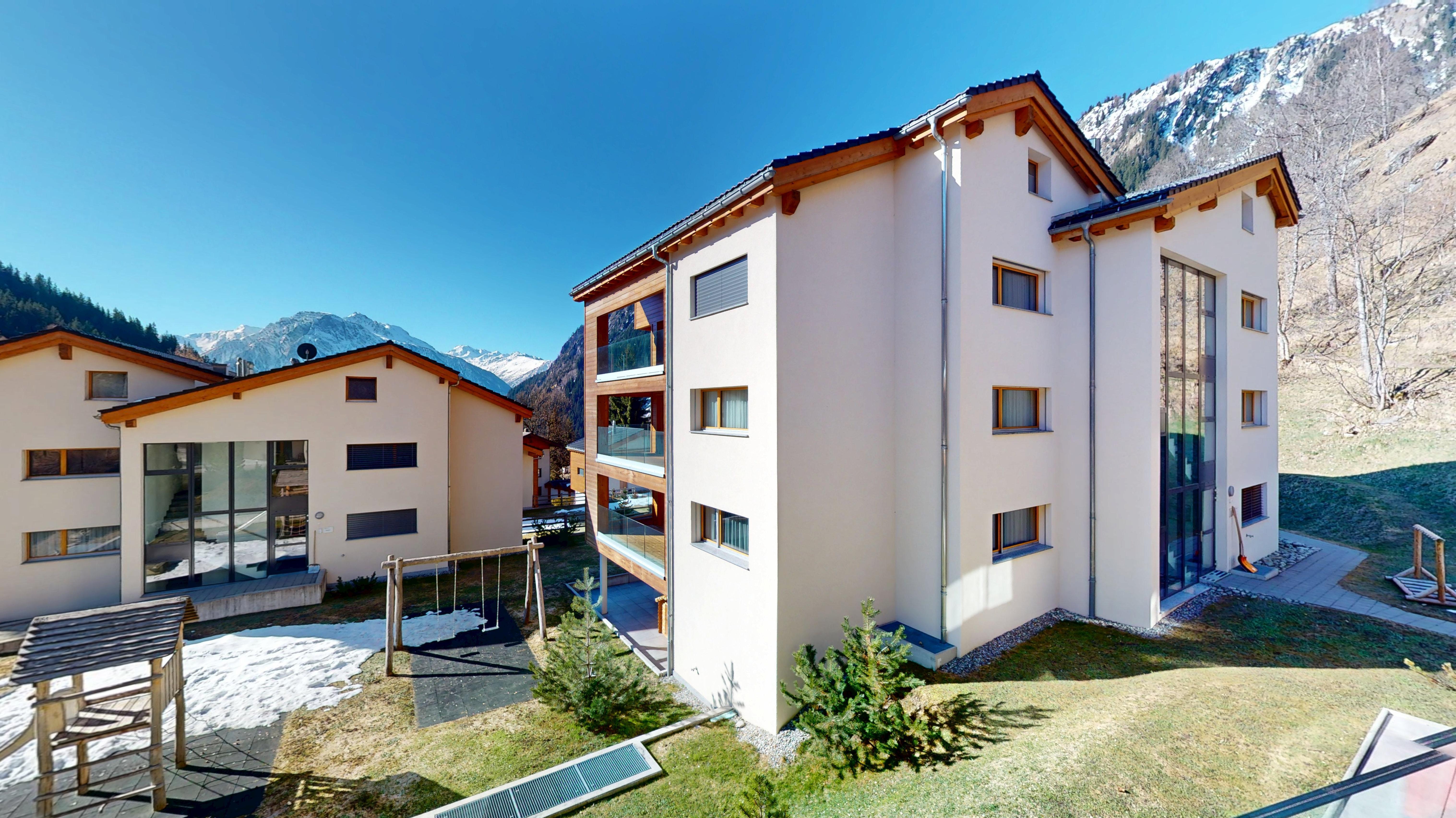 von Blatten ist atemberaubend. Die Wohnung besitzt einen Balkon sowie Zugang zur Einstellhalle und zu Waschküche und Skiraum. Rund zwei Gehminuten von der Talstation Blatten-Belalp und der Postautohaltestelle an exklusiver Lage. 7 km bis Naters.