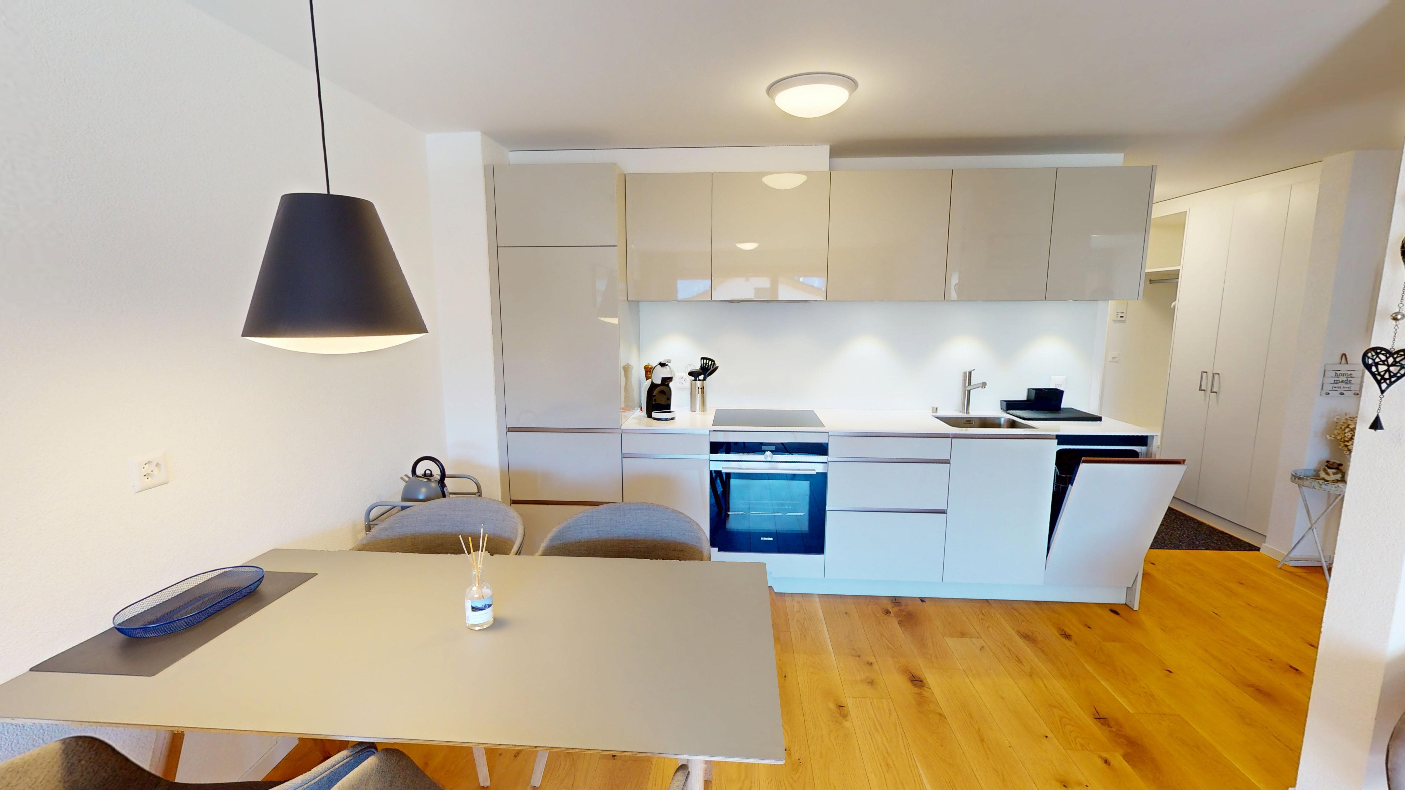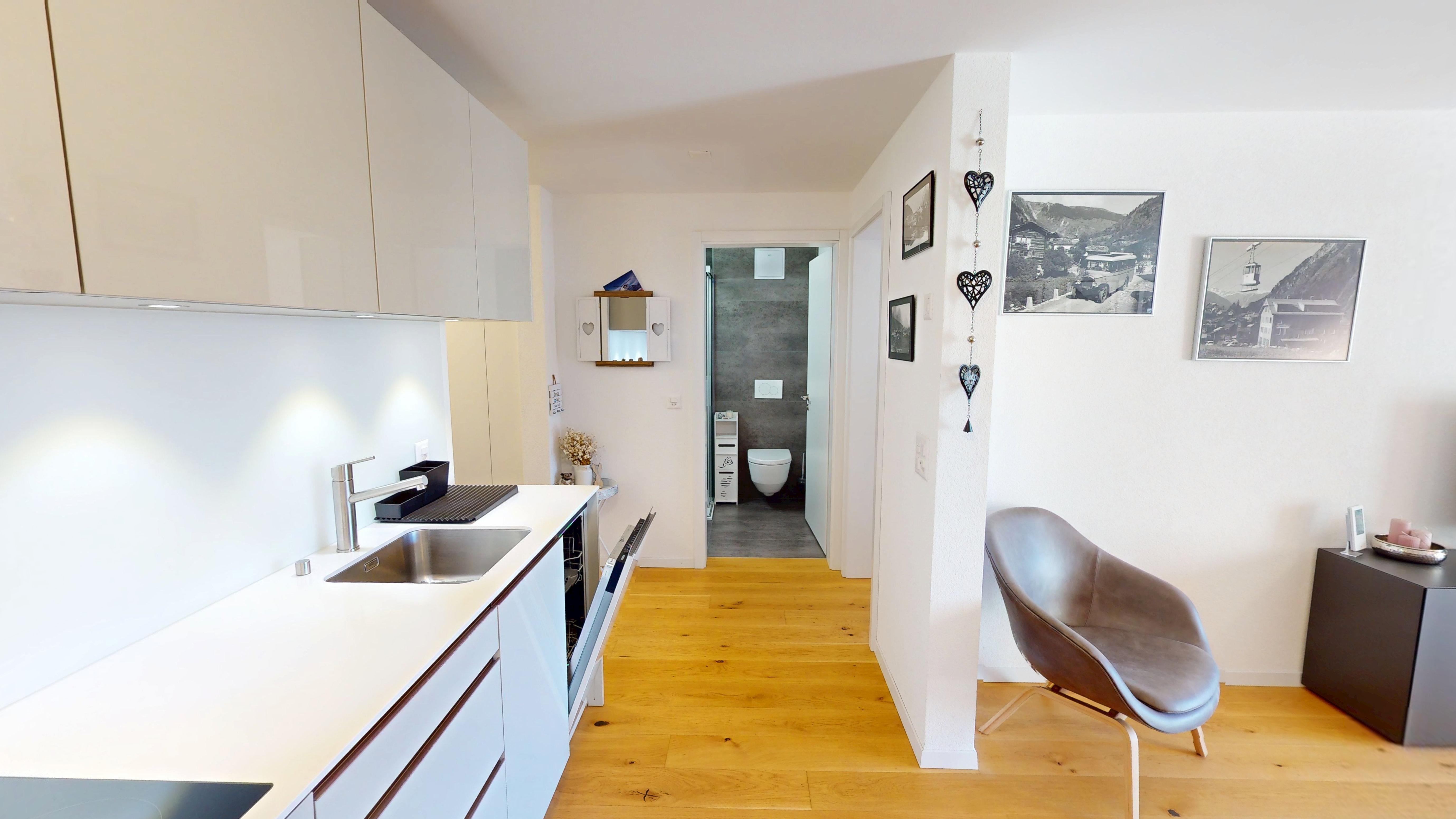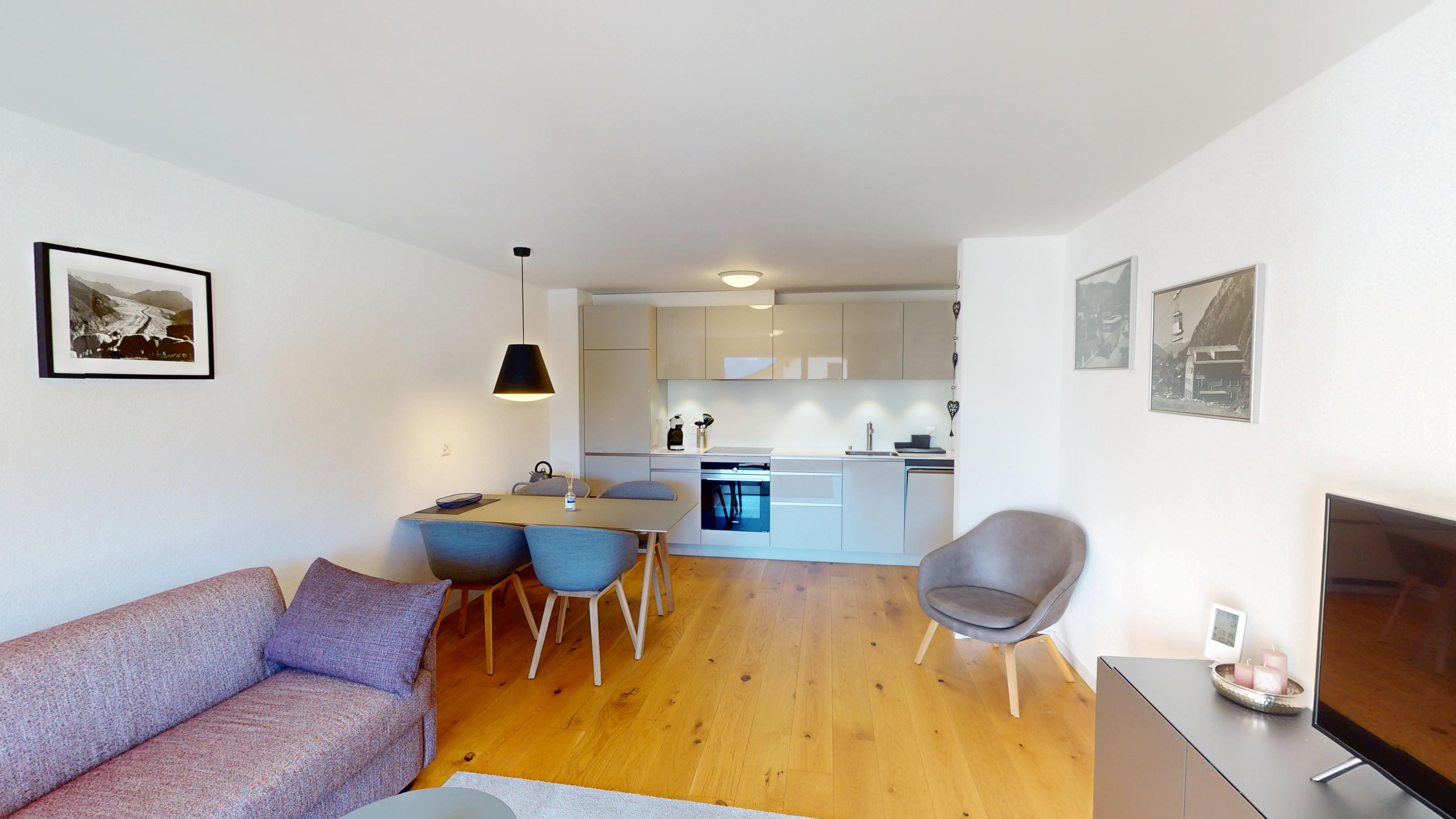 von Blatten ist atemberaubend. Die Wohnung besitzt einen Balkon sowie Zugang zur Einstellhalle und zu Waschküche und Skiraum. Rund zwei Gehminuten von der Talstation Blatten-Belalp und der Postautohaltestelle an exklusiver Lage. 7 km bis Naters.