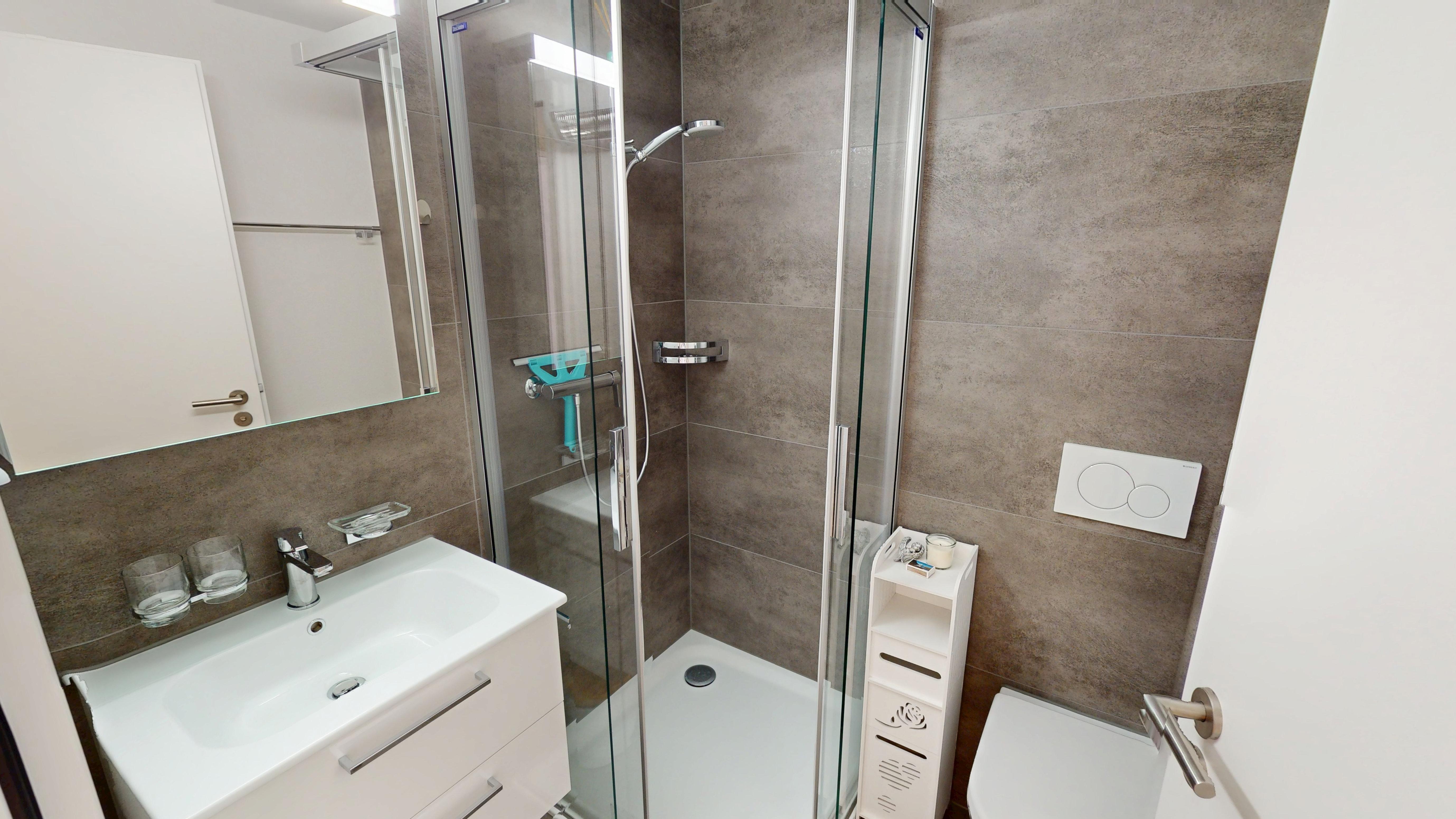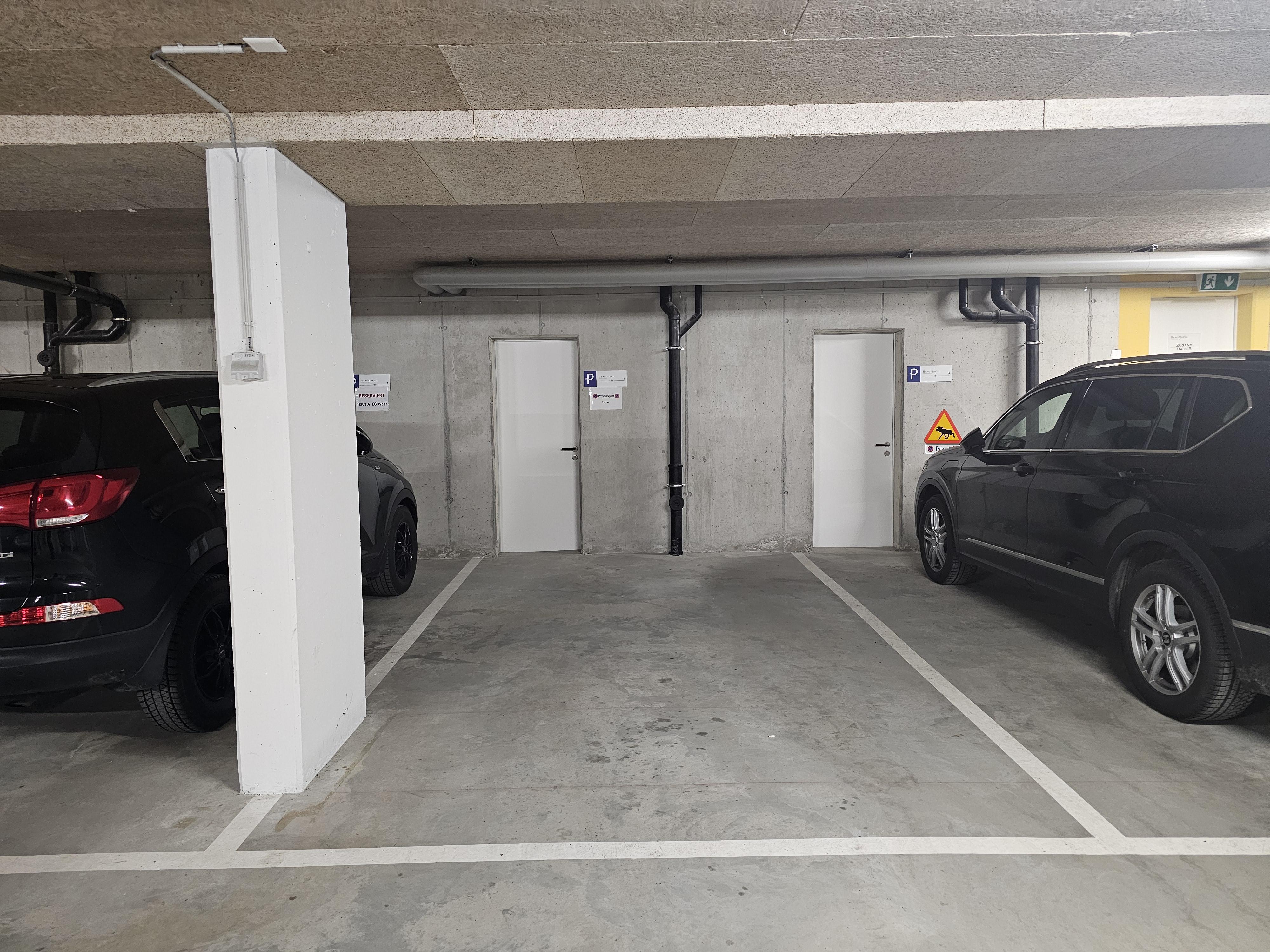 Das Haus A ist nicht direkt mit der Einstellhalle verbunden, Zugang über Haus B.