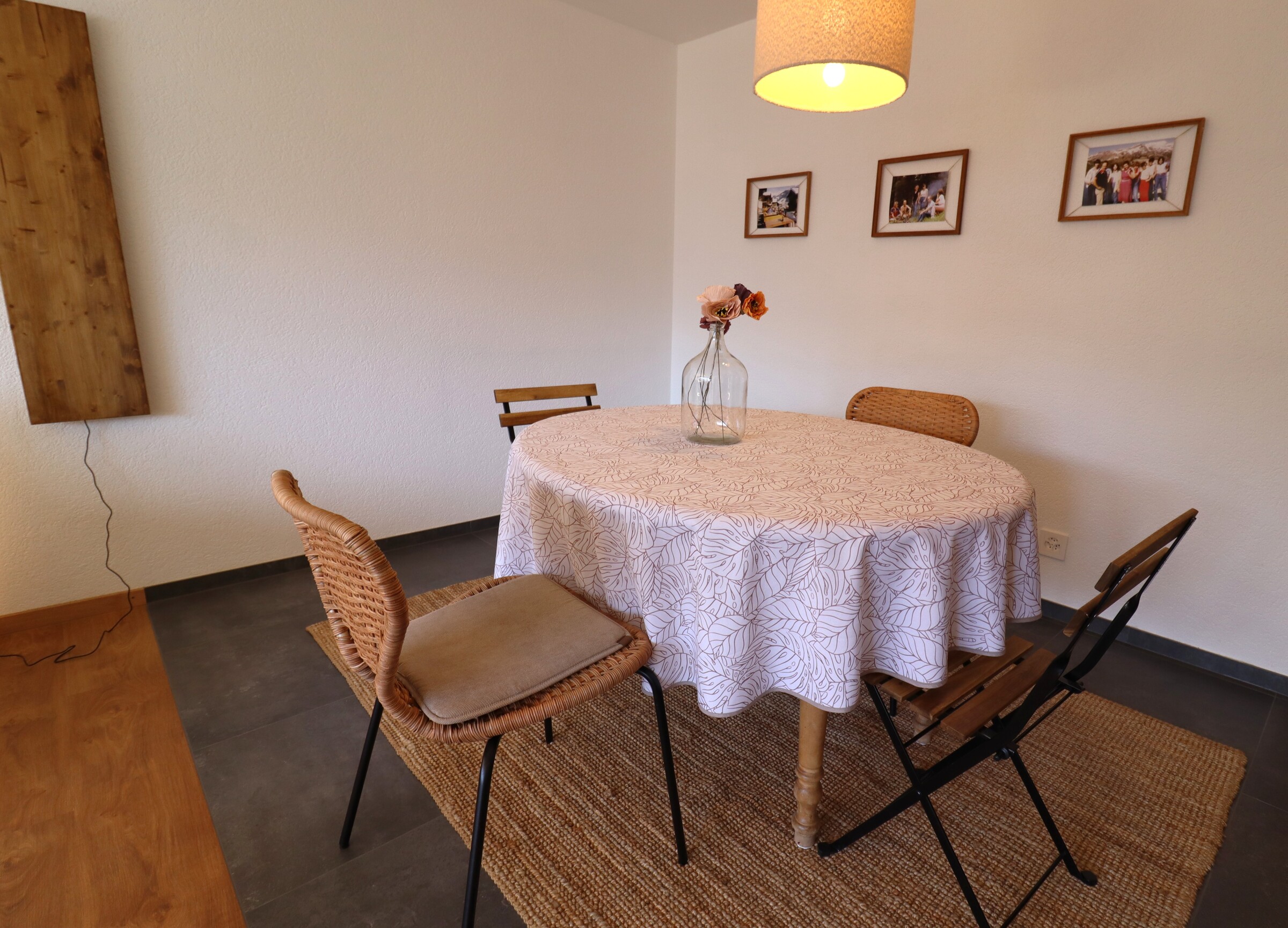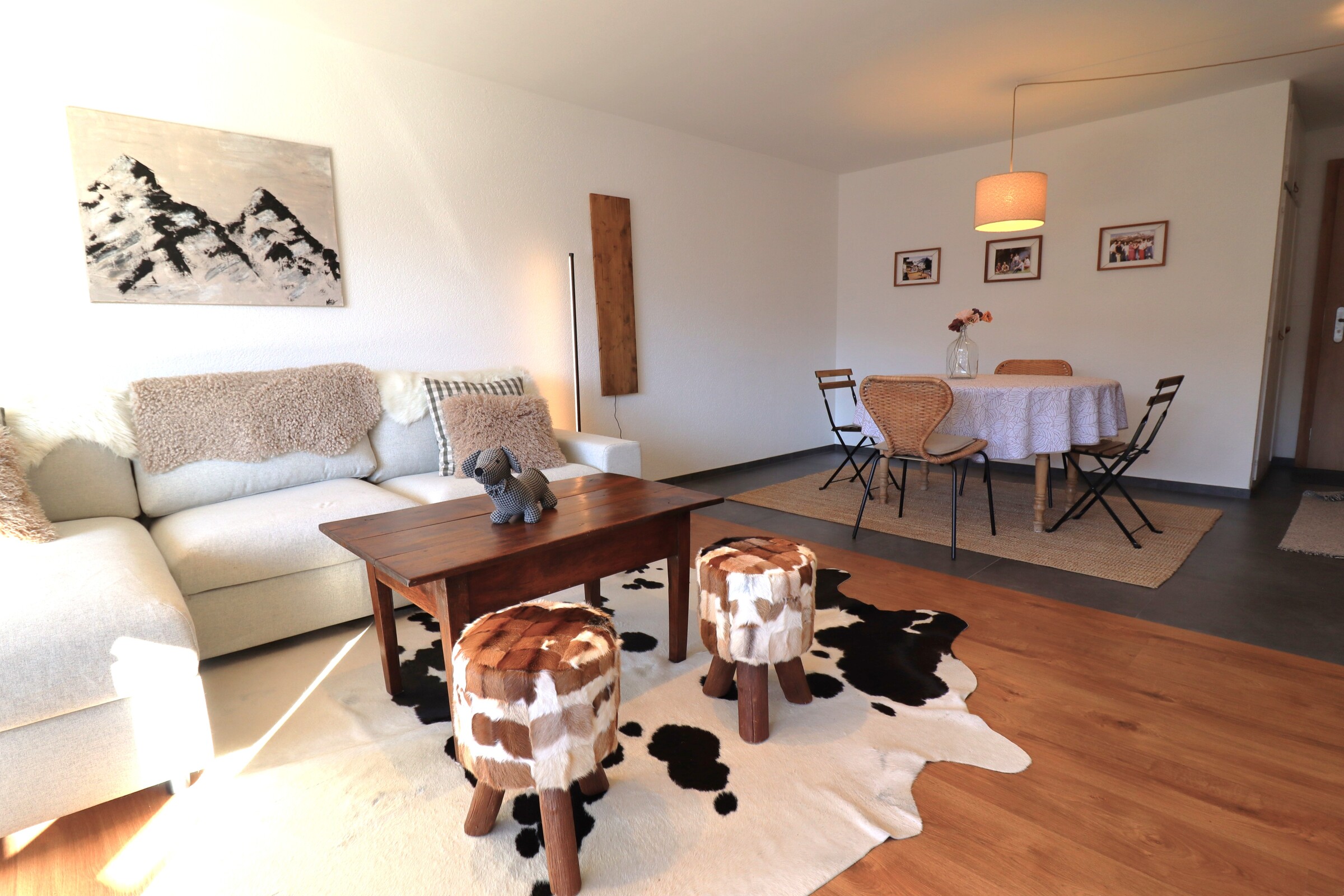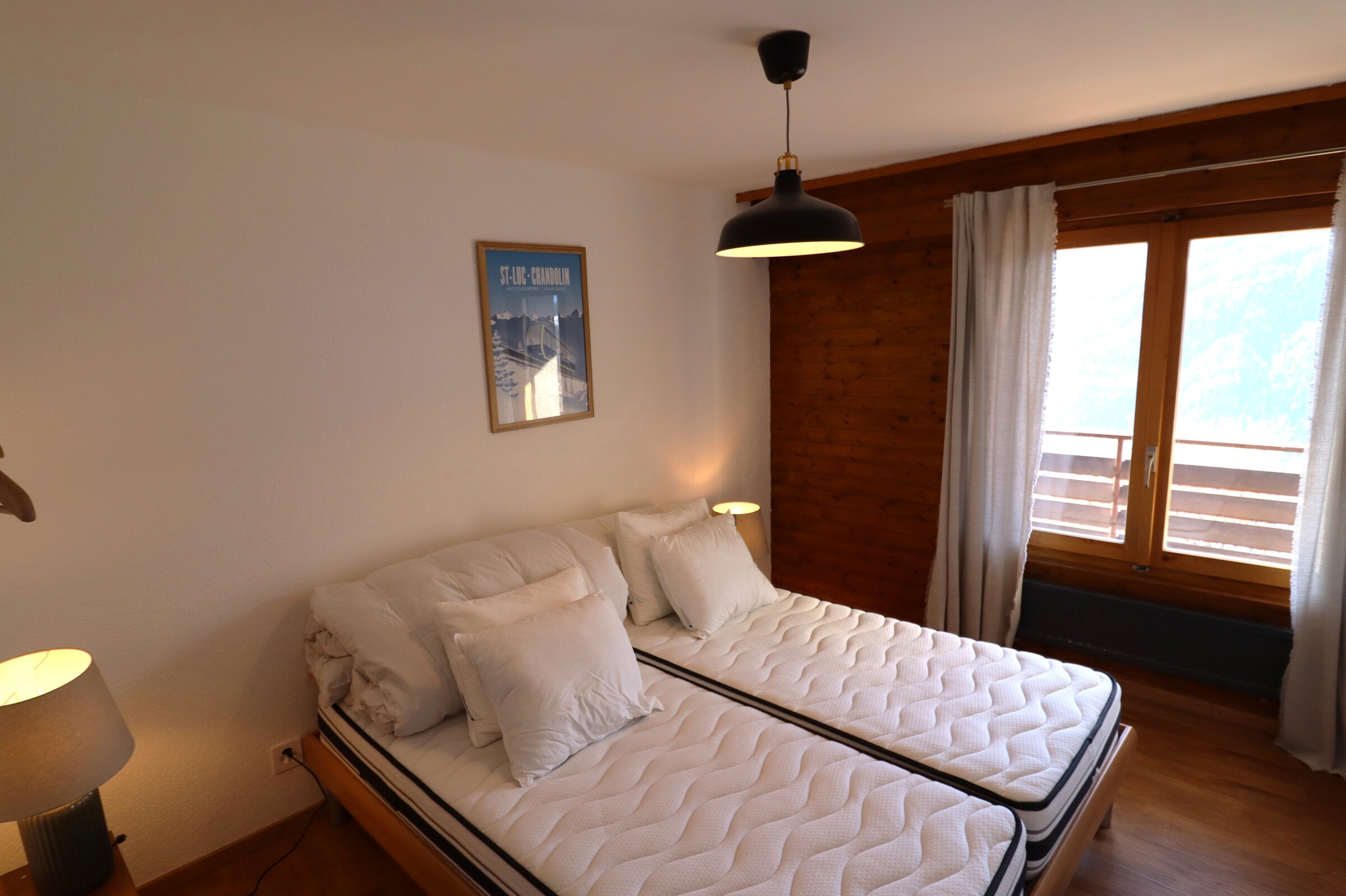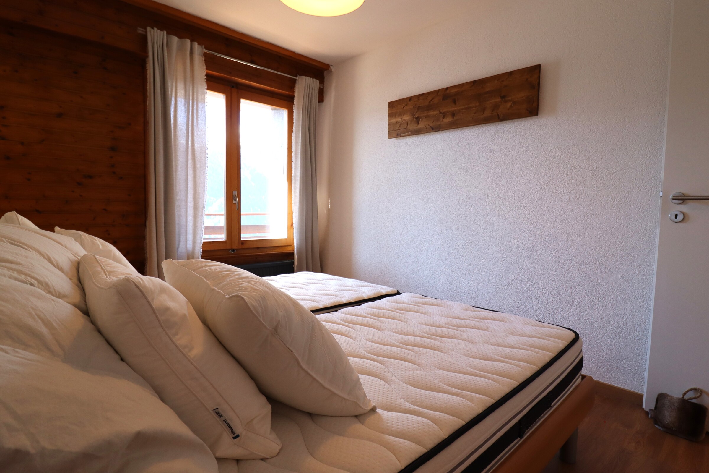 Barmaz B 12 – Renovierte Wohnung, die Komfort und modernen Bergcharme verbindetAußenseite:Wohnung befindet sich im Barmaz B-Gebäude, großer nach Süden ausgerichteter Balkon, wunderschöner offener Ausblick, ideal für 2 bis 4 Personen.Innenraum:Renovierte Wohnung, komfortabel und hell, großes Wohnzimmer mit Essbereich, Doppelsofa, moderne und warme Bergdekoration.Schläft:1 Doppelbett mit 2 Einzelmatratzen1 Schlafsofa im Wohnzimmer.Sanitäre Einrichtungen:1 Badezimmer mit begehbarer Dusche, Waschbecken und WC. < / >Küche:Renovierte und voll ausgestattete Küche: Kühlschrank, Ofen, Keramikherd, Geschirrspüler, Dunstabzug, Nespresso-Kaffeemaschine, Wasserkocher, Raclette-Set, Fondue-Set.Ausrüstung:TV, WLAN-Verbindung.Verschiedenes:Gemeinsamer Waschraum im Gebäude mit Waschmaschine und Trockner, Haustiere erlaubt (Aufpreis für die Reinigung), Skiraum, Nichtraucherwohnung.