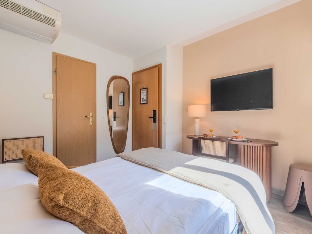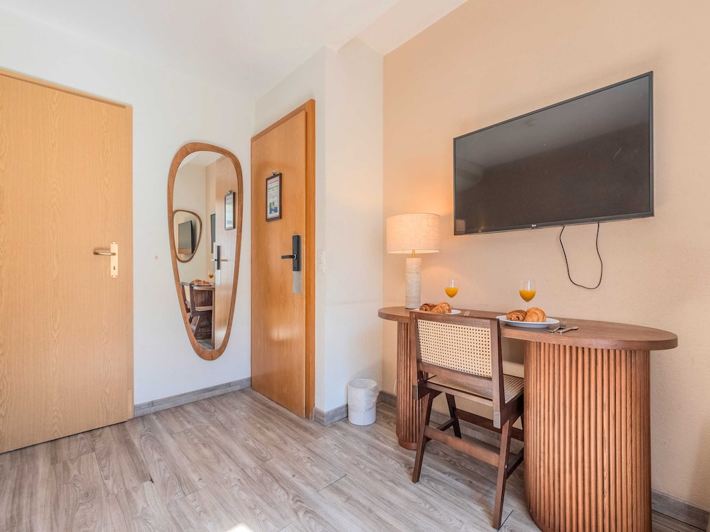 In der 5. Etage: (Wohnzimmer(Schlafcouch 1 Pers., TV(Flatscreen)), Küche(Esstisch, Kochplatte, Wasserkocher, Kaffeemaschine, Kaffeemaschine, Mikrowelle, Kühlschrank, elektrische Kochplatten, , , Wine glasses), Schlafzimmer(Einzelbett, Einzelbett, TV), Badezimmer(Dusche, Toilette, Föhn, , , ))