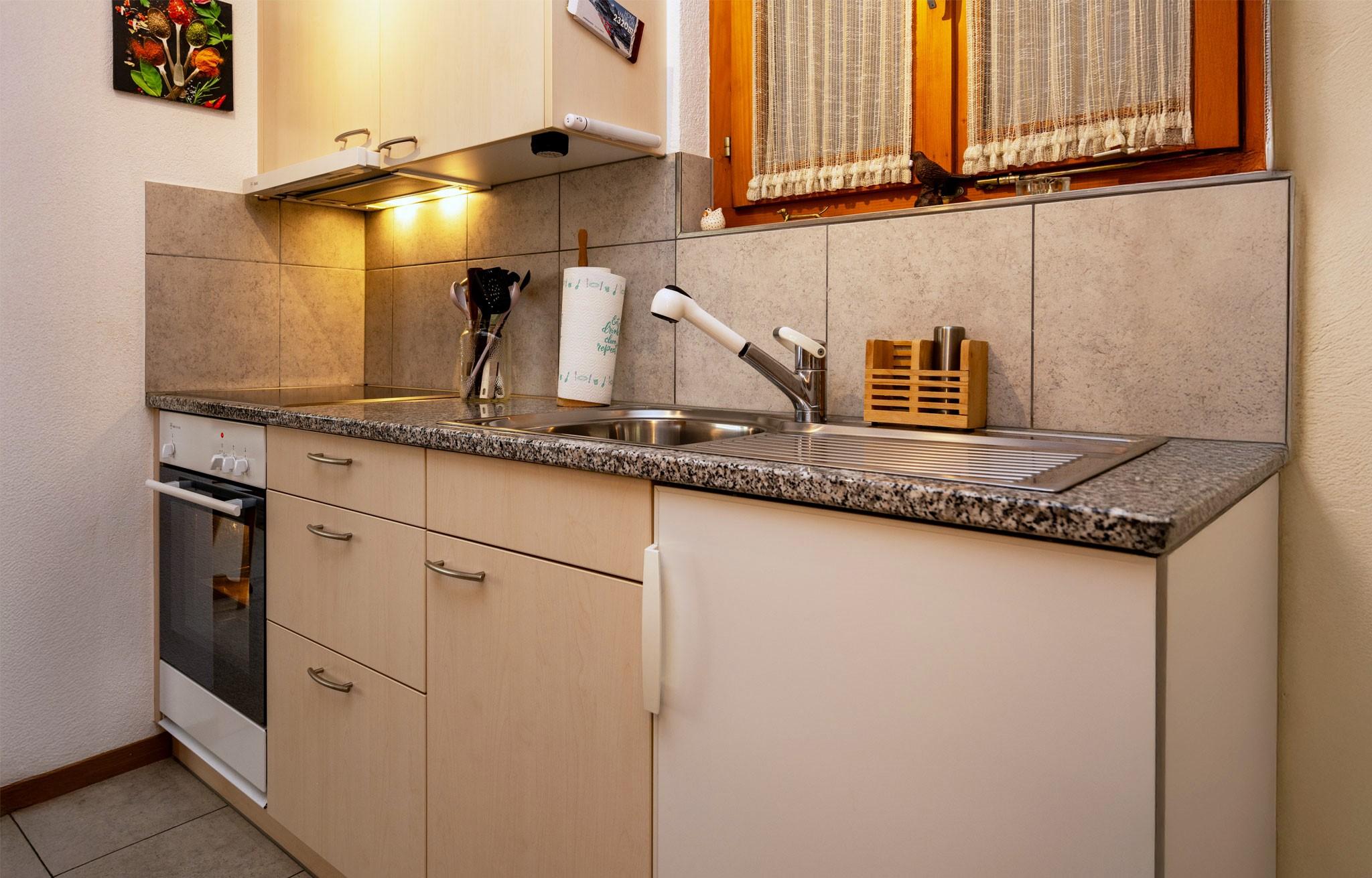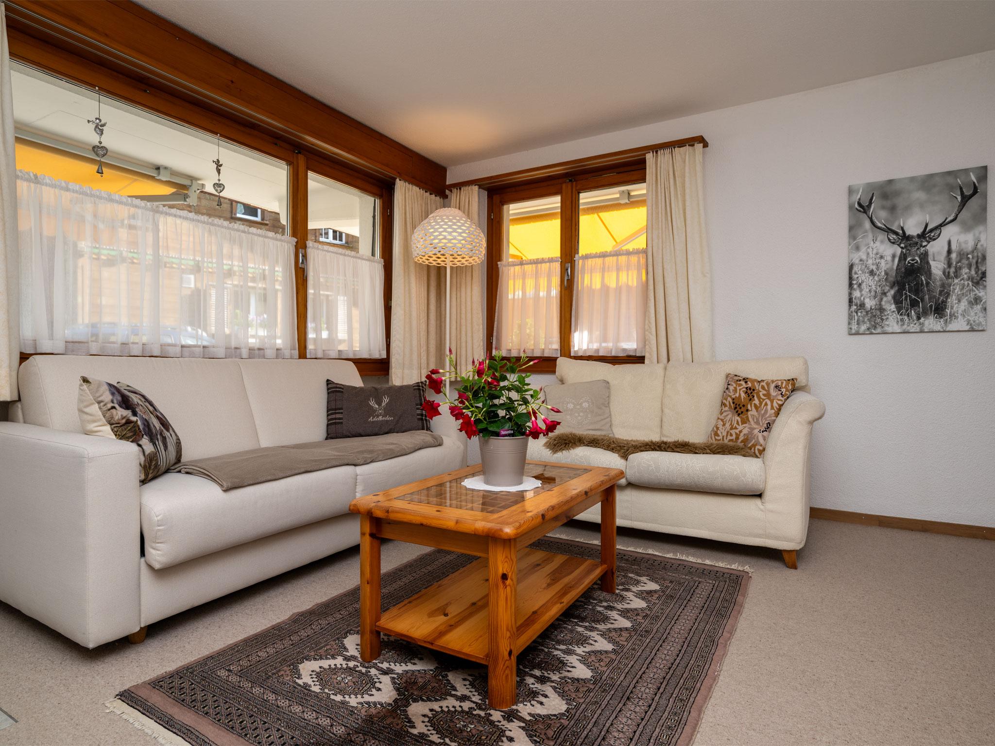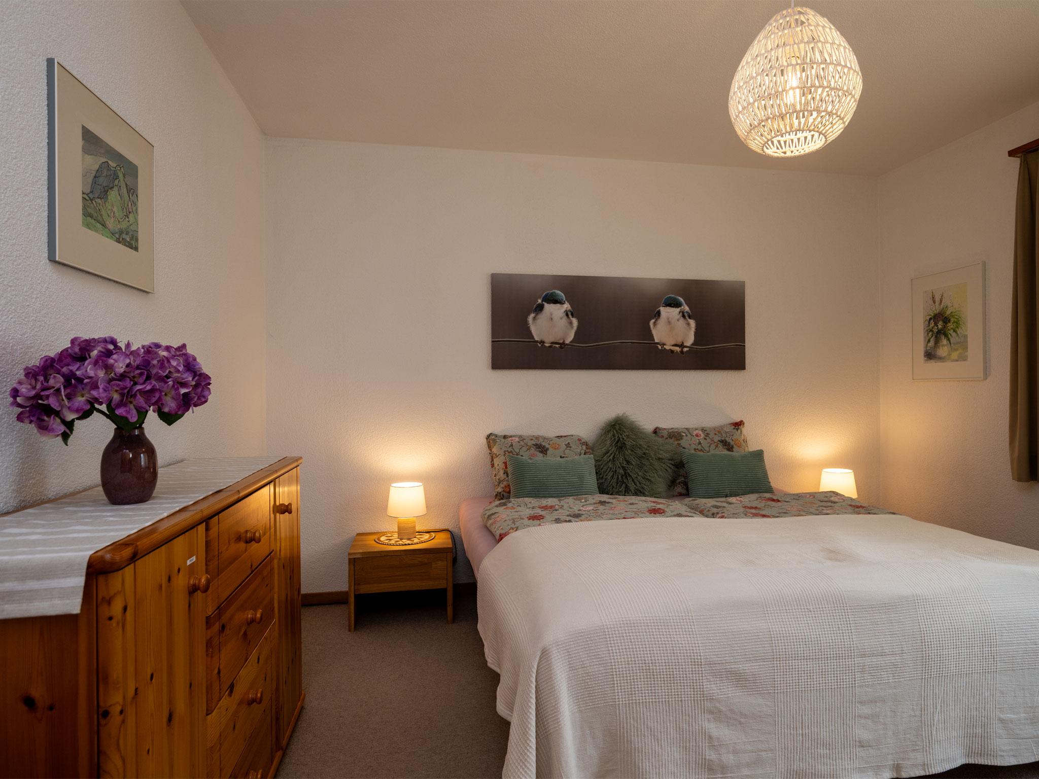 Schöne, gemütliche 2-Zimmerwohnung im Erdgeschoss des Chalet Delphin an zentraler, ruhiger Lage. Die Wohnung ist geeignet für 2-3 Personen. Der gepflegte Wohnraum mit einer Sitzgruppe, einem Bettsofa und einem Esstisch für vier Personen lädt zu gemütlichen Stunden mit Freunden und Familie ein. Die Küche ist zweckmässig eingerichtet mit Keramikherd, Backofen, Kühlschrank, Kaffeemaschine und Toaster. Das Bad ist neu umgebaut und verfügt über eine Regenwalddusche und modernste Badarmaturen.