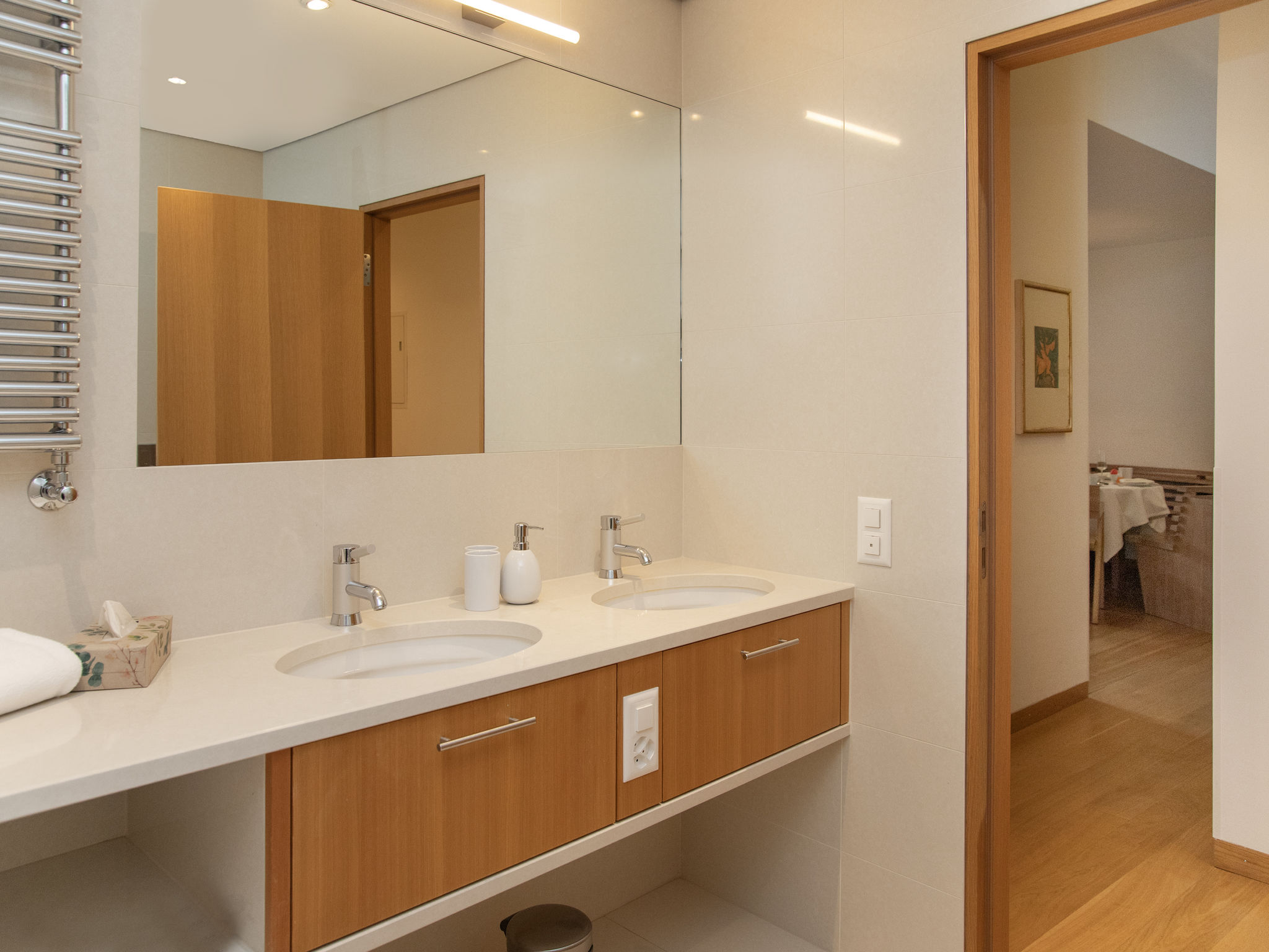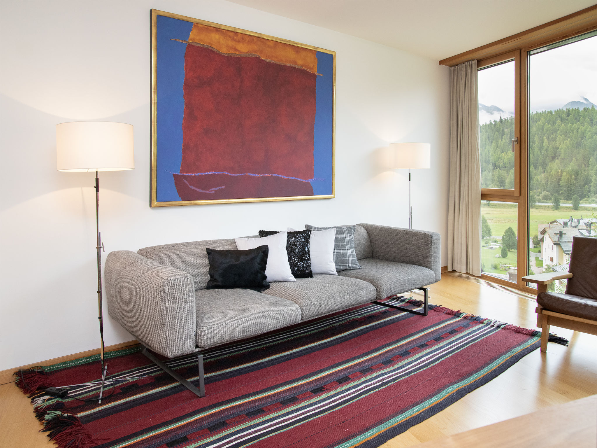 Celerina, 4 km von St. Moritz: Sehr luxuriöse Residenz "Residenz Cresta Kulm", auf 3 Stockwerken. Am Ortsrand, ruhige, sonnige Lage am Hang, 1 km vom Skigebiet, Richtung Südwesten. Im Hause: Fahrstuhl, Einstellraum für Fahrräder, Skiraum, Zentralheizung, Waschmaschine, Wäschetrockner. Wohnungsreinigung 1 mal wöchentlich (extra). Gemeinschaftsgarage Nr. 26. Einkaufsgeschäft 500 m, Supermarkt 800 m, Restaurant 200 m, Bäckerei 800 m, Café, Fahrradverleih 550 m, Bushaltestelle "Celerina, Cresta Kulm" 20 m, Bahnstation "Celerina" 1 km, Hallenbad 5.2 km, See St. Moritzer See 3.2 km. Golfplatz (18 Loch) 3.8 km, Surfschule 9 km, Tennis 800 m, Tennishalle 5.5 km, Minigolf 5 km, Reitstall 5.7 km, Wanderwege ab Haus 300 m, Radweg 1 km, Luftseilbahn 1 km, Skilift 1 km, Skipisten 1 km, Skiverleih 500 m, Skibushaltestelle 20 m, Skischule 1 km, Kinderskischule 1 km, Schlittelbahn 2.9 km, Langlaufloipe 1.8 km, Eisfeld 750 m, Kinderspielplatz 900 m. Nahe gelegene Sehenswürdigkeiten: Olympia Bob Run mit Bobmuseum 1.7 km, Kirche San Gian 1.8 km, Segantini Museum in St. Moritz 3.1 km, Museum Alpin in Pontresina 6.2 km, Bernina Express UNESCO Welterbe. Bekannte Skigebiete sind gut erreichbar: Corviglia Piz Nair 1 km, Corvatsch - Furtschellas 11 km, Diavolezza - Lagalb 17 km. Bekannte Seen in der Umgebung sind gut erreichbar: St. Moritzer See 3.2 km, Silvaplaner See 8.7 km, Silser See 12.5 km. Wandergebiete: Stazerwald & Stazersee, Corviglia Piz Nair, Muottas Muragl. Bitte beachten: Gratis Skibus. Der gratis Skibus fährt zum Skigebiet Parkplatz Talstation Marguns (Corviglia). Die Schlüsselübergabe findet bei der Agentur Interhome in St. Moritz statt, 4 km.