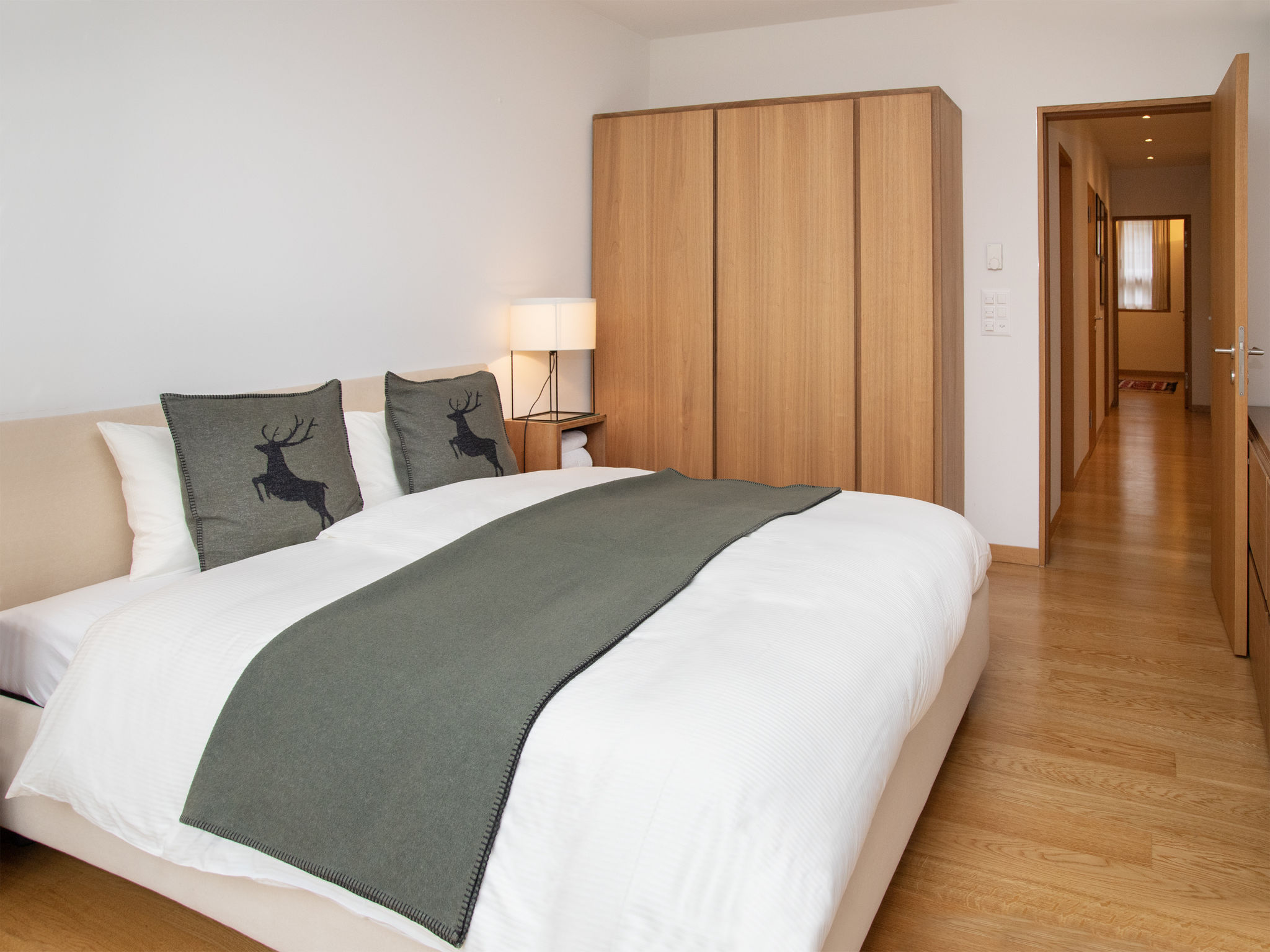 "Residenz Cresta Kulm B26", 7-Zimmer-Wohnung 240 m2 auf 2 Stockwerken. Hell, luxuriös und geschmackvoll eingerichtet: grosser Eingang. Grosses Wohn-/Esszimmer mit offenem Kamin, Bibliothek und elektrischem Rollladen. Ausgang zum Balkon. Kleines Wohnzimmer mit Dusche/WC und TV (Flachbildschirm), DVD und elektrischem Rollladen. 1 Doppelzimmer mit 1 Doppelbett, Bad/Bidet/WC und elektrischem Rollladen. Ausgang zum Balkon, Richtung Süden. 1 Doppelzimmer mit Bad/Bidet/WC und elektrischem Rollladen. Grosse, offene Küche (Backofen, Geschirrspüler, 4 Glaskeramikplatten, Toaster, Wasserkocher, Mikrowelle, Tiefkühler, elektrische Kaffeemaschine, Kapseln für die Kaffeemaschine (Nespresso) extra, Racletteofen, Fondue Set (Chinoise, Käse)) mit Esstisch. Bodenheizung. Obergeschoss: Galerie mit elektrischem Rollladen. Ausgang zum Balkon, Richtung Süden. 1 Zimmer mit 1 Bett, 1 Ausziehbett, Dusche/WC und elektrischem Rollladen. 1 Zimmer mit 2 Betten, Bad/Bidet/WC und elektrischem Rollladen. Bodenheizung. 2 grosse Balkone. Balkonmöbel. Sehr schöne Sicht auf die Berge, den Garten und die Ortschaft. Zur Verfügung: Waschmaschine, Wäschetrockner, Bügeleisen, Haartrockner. Internet (Wireless LAN, gratis). Garage Nr. 26, Höhe 210 cm, Breite 200 cm. Bitte beachten: Nichtraucher-Unterkunft.