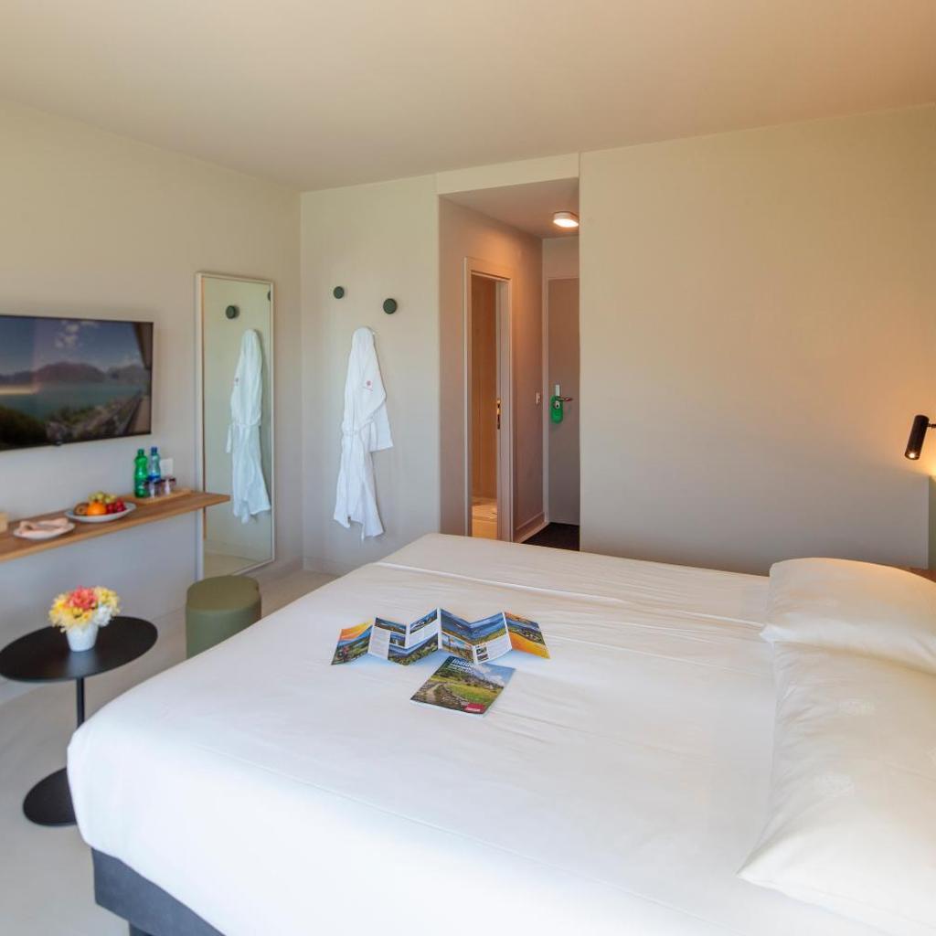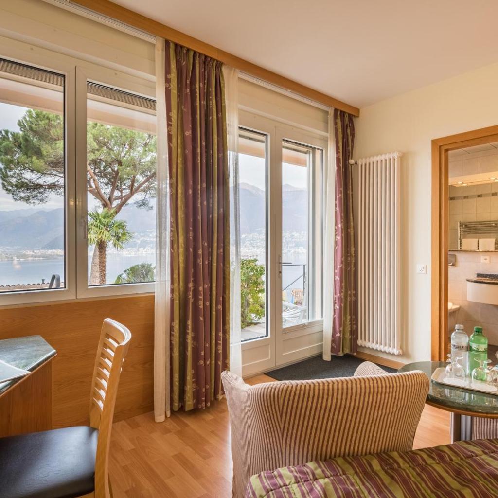 Alle Gästezimmer in der Unterkunft Bellavista Swiss Quality Hotel sind eingerichtet mit einem Sitzbereich, einem Flachbild-TV mit Satellitenkanälen, einem Safe und einem eigenen Badezimmer mit einer Dusche, einem Haartrockner und Bademänteln. Die Unterkunft Bellavista Swiss Quality Hotel bietet einige Zimmer mit Bergblick und alle Zimmer sind ausgestattet mit einem Balkon. Alle Wohneinheiten haben einen Schreibtisch.