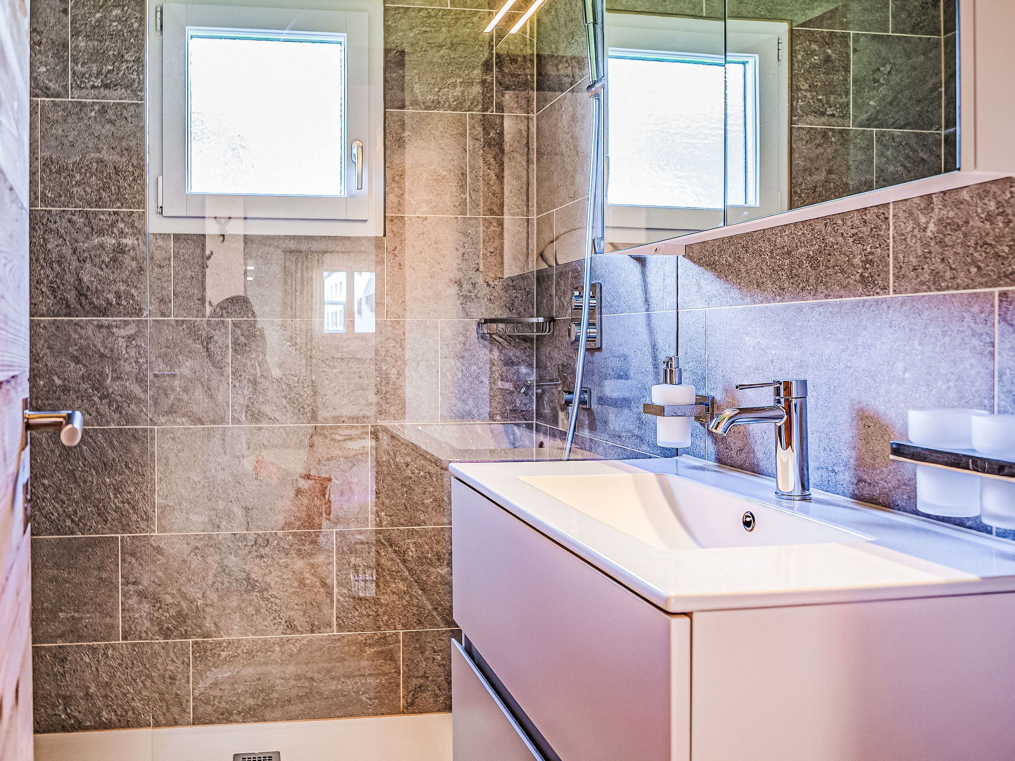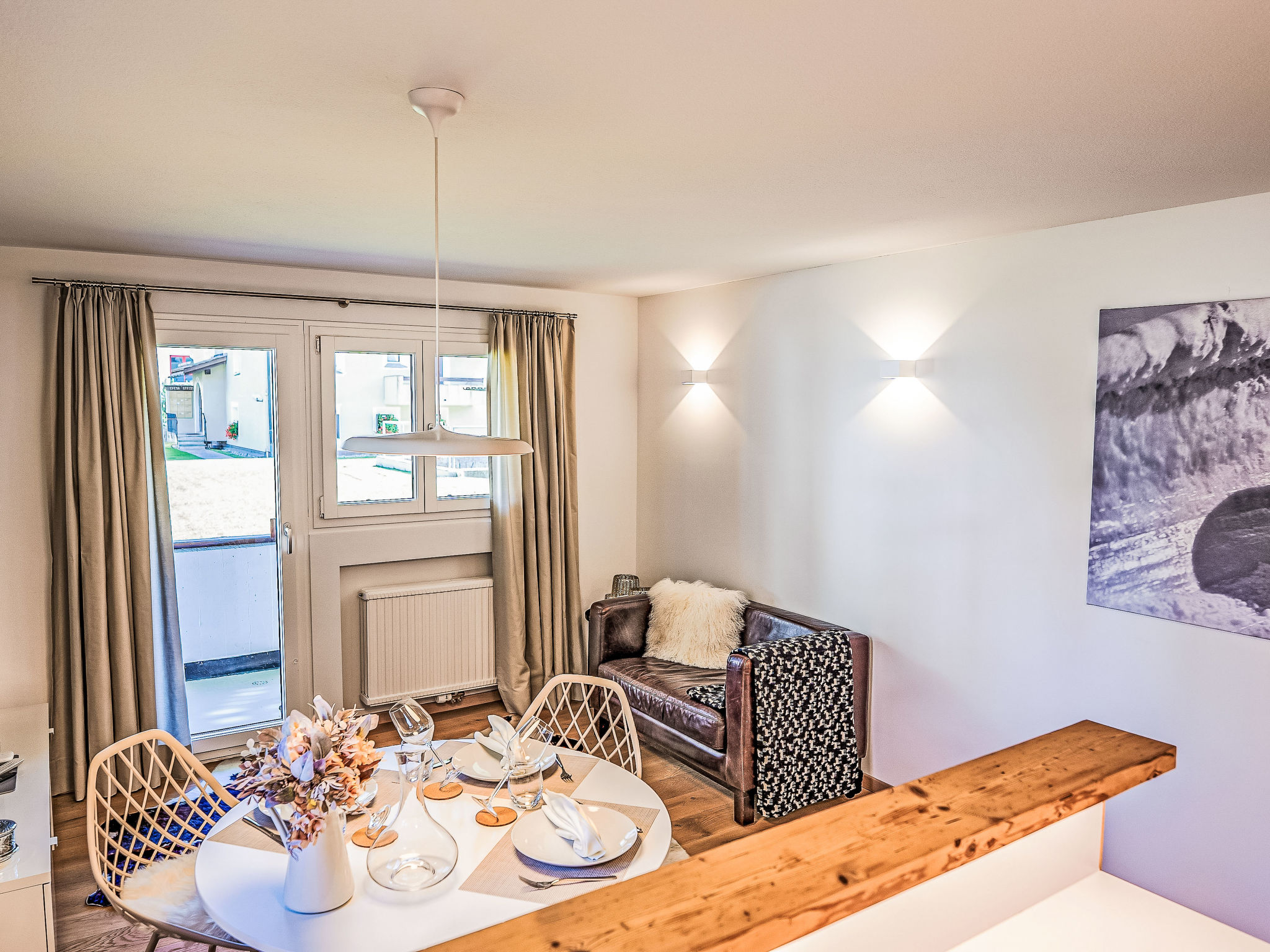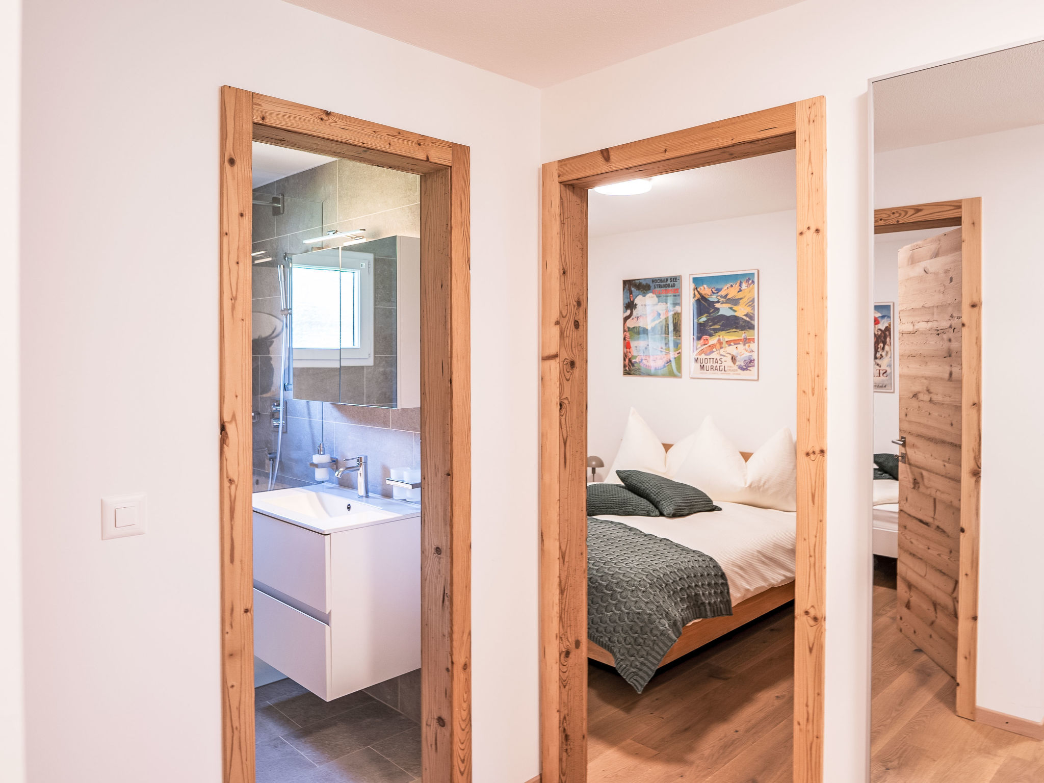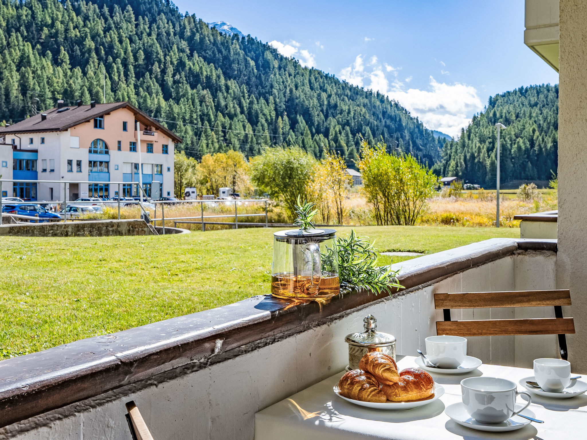 "Chesa Palüdin 1 - Celerina", 3-Zimmer-Wohnung 55 m2, im Erdgeschoss. Vollständig renoviert im Jahre 2023, schön und modern eingerichtet: offenes Wohn-/Esszimmer mit Esstisch und TV (Flachbildschirm). Ausgang zum Balkon. 1 kleines Zimmer mit 1 Bett (120 cm, Länge 200 cm). 1 Doppelzimmer mit 1 Doppelbett (1 x 160 cm, Länge 200 cm). Offene Küche (Backofen, Geschirrspüler, 4 Induktionskochplatten, Toaster, Wasserkocher, Mikrowelle, elektrische Kaffeemaschine, Kapseln für die Kaffeemaschine (Nespresso) extra, Dampfgarer, Racletteofen, Fondue Set (Chinoise, Käse)). Dusche/WC. Heizung. Parkettboden. Kleiner Balkon. Balkonmöbel. Sehr schöne Sicht auf die Berge und die Landschaft. Zur Verfügung: Waschmaschine, Wäschetrockner, Bügeleisen, Haartrockner. Internet (WLAN, gratis). Garage Nr. 1 auf dem Grundstück (1 Auto), Höhe 195 cm, Breite 225 cm. Bitte beachten: Nichtraucher-Unterkunft, Nichtraucher-Haus. Maximal 1 Haustier/Hund erlaubt. Kein Fahrstuhl.