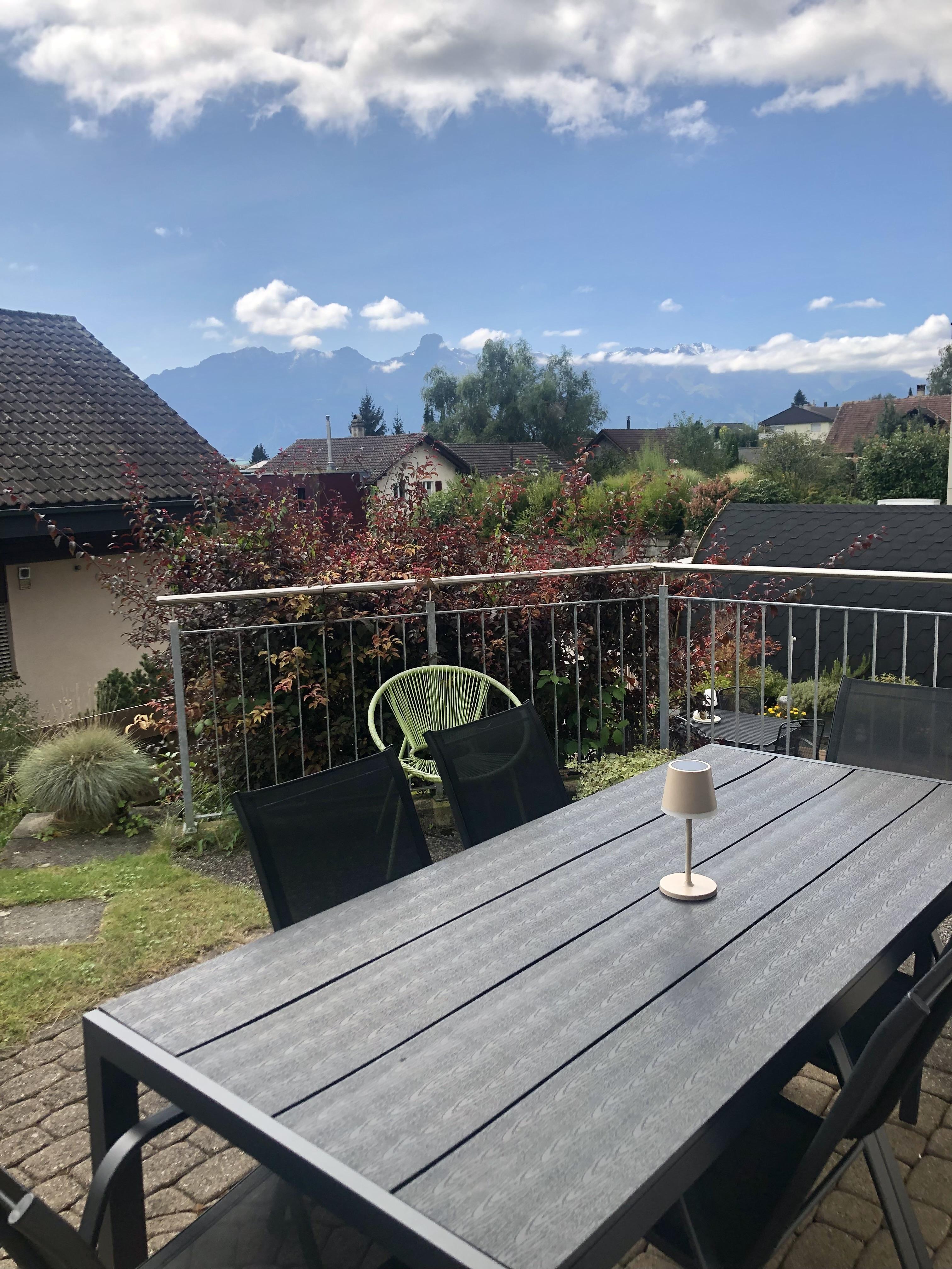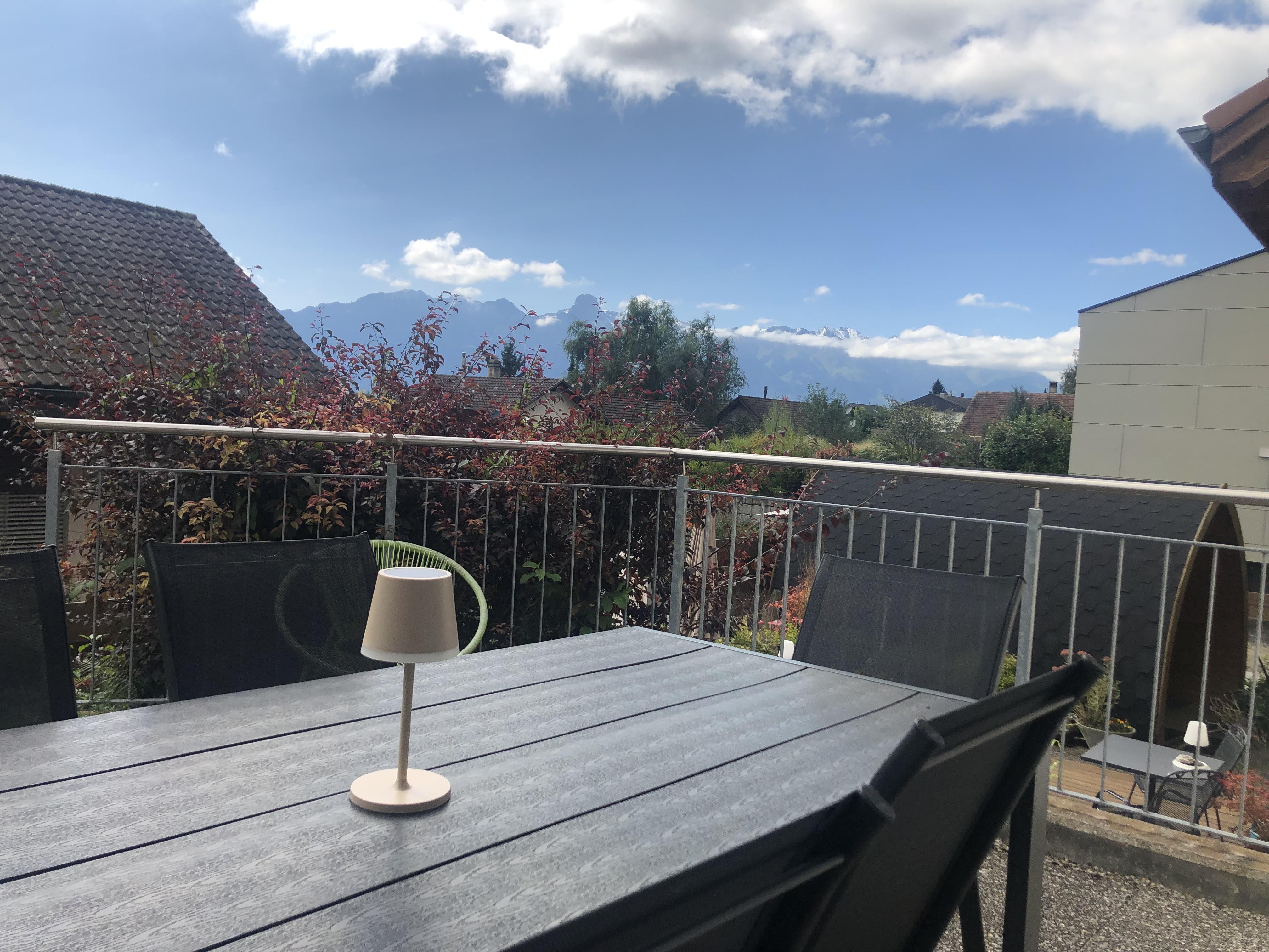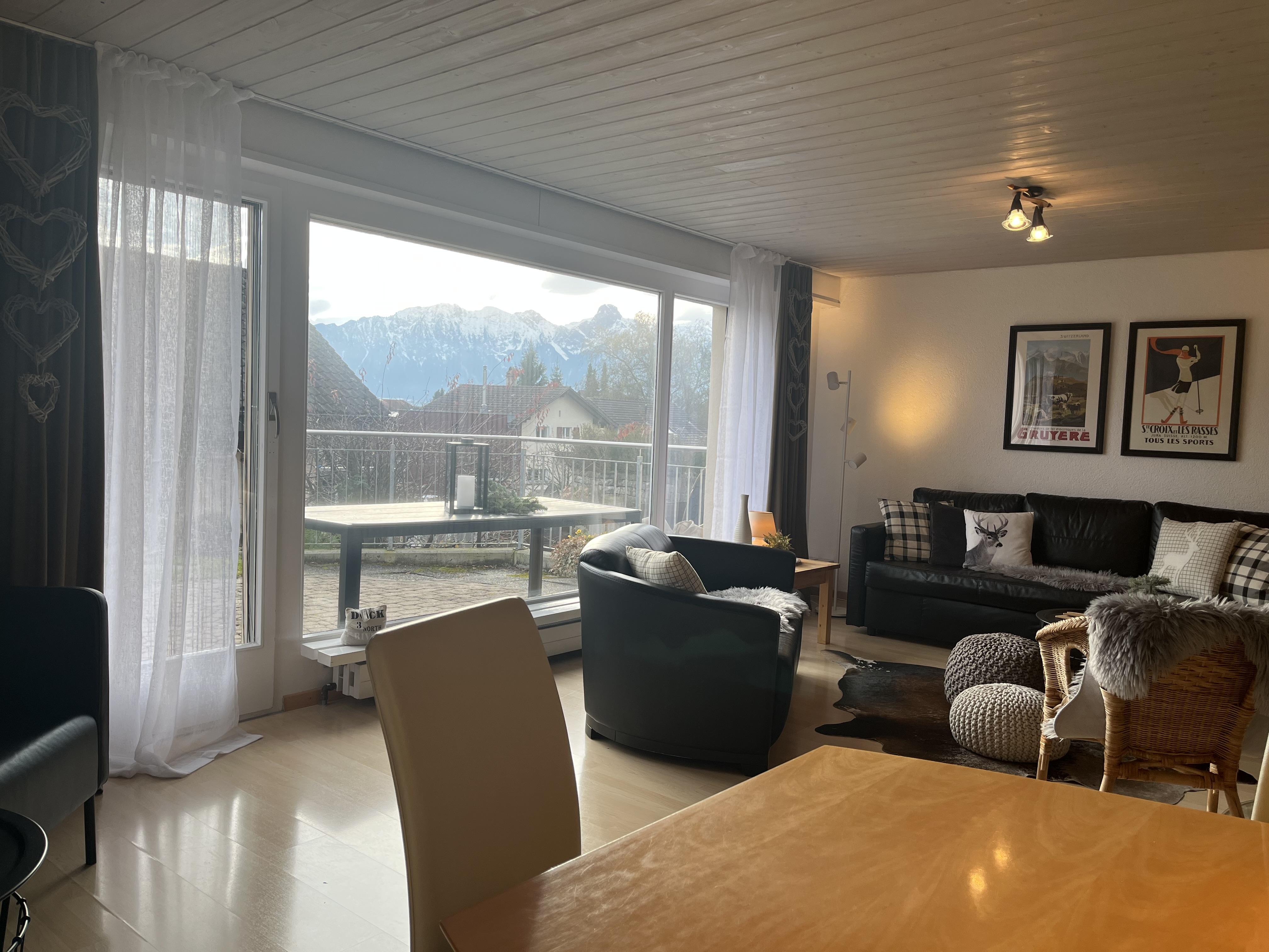 Unsere Ferienwohnung besticht durch ihre ruhige, sonnige Lage mit einem herrlichen Blick auf die Voralpen. Sie bietet großzügigen Raum, eine voll ausgestattete Küche, einen offenen Wohn- und Essbereich, direkten Zugang zur Terrasse und einen kleinen, privaten Garten. Die Wohnung zeichnet sich durch ihre lichtdurchfluteten Räume und Gemütlichkeit aus. Mit moderner Einrichtung, einschließlich zweier Bäder und einer Waschmaschine, sowie der Nähe zu attraktiven Ausflugszielen und erstklassigen Skigebieten, ist sie die ideale Wahl für Entspannungssuchende und Abenteurer.