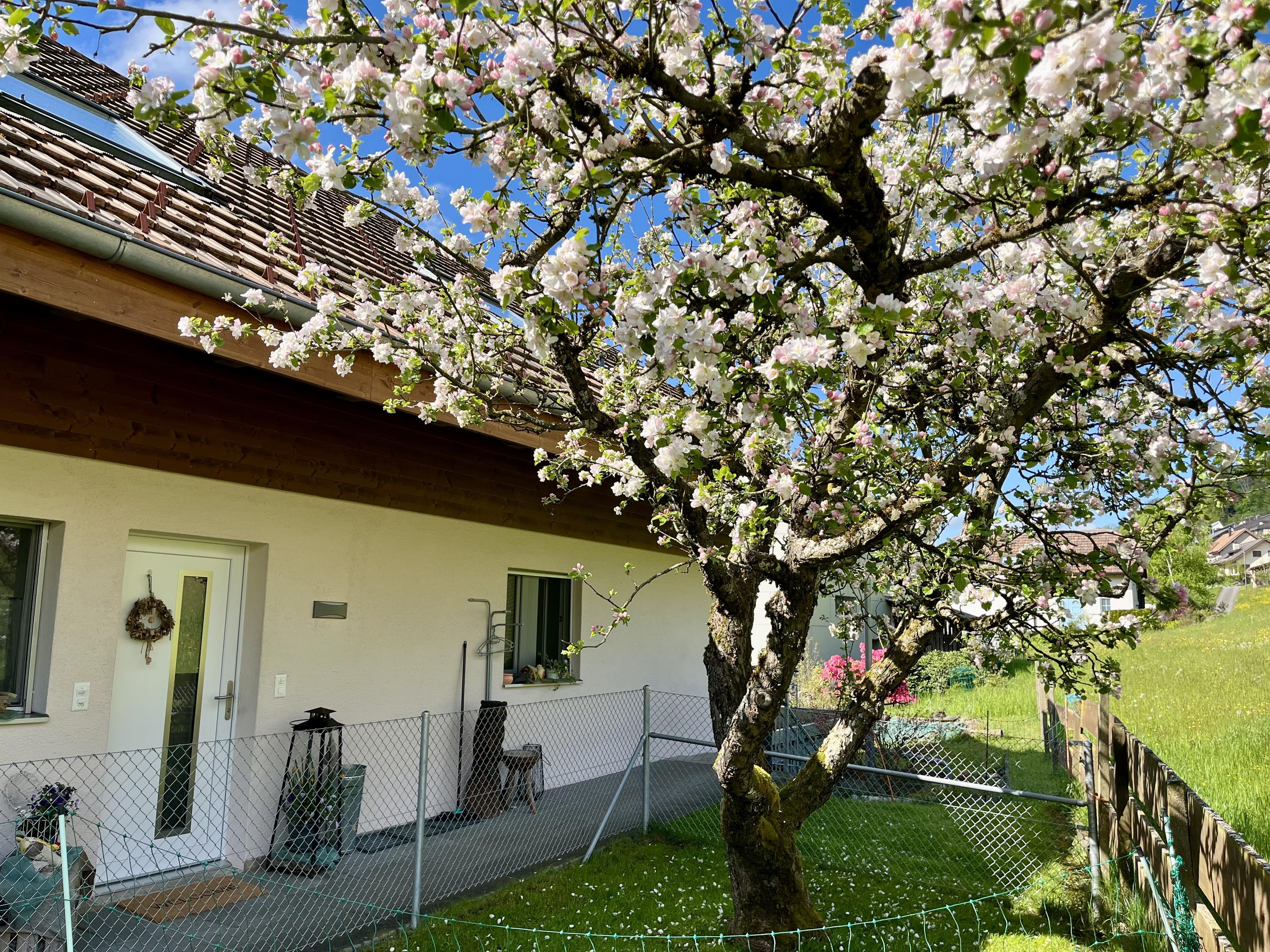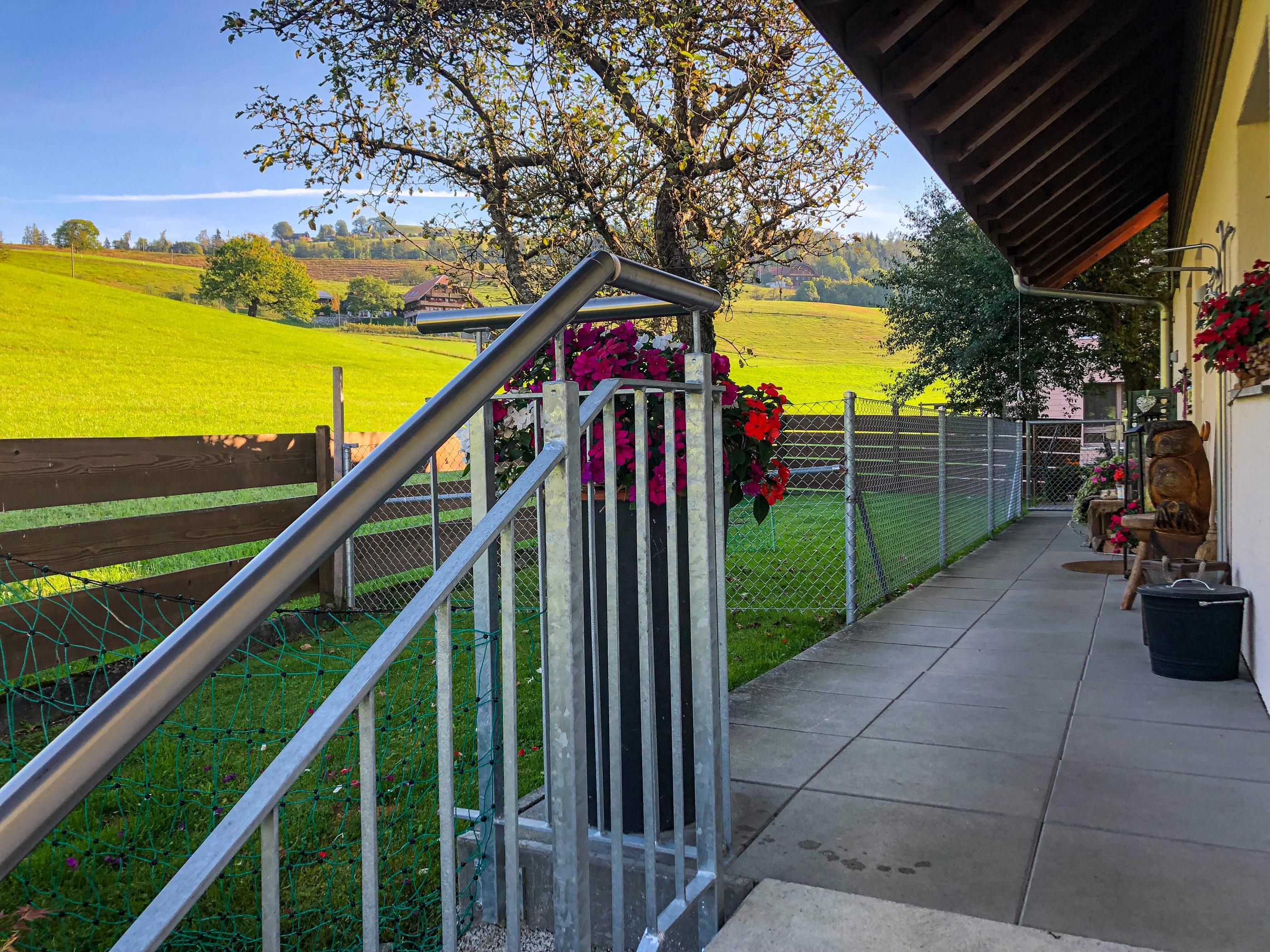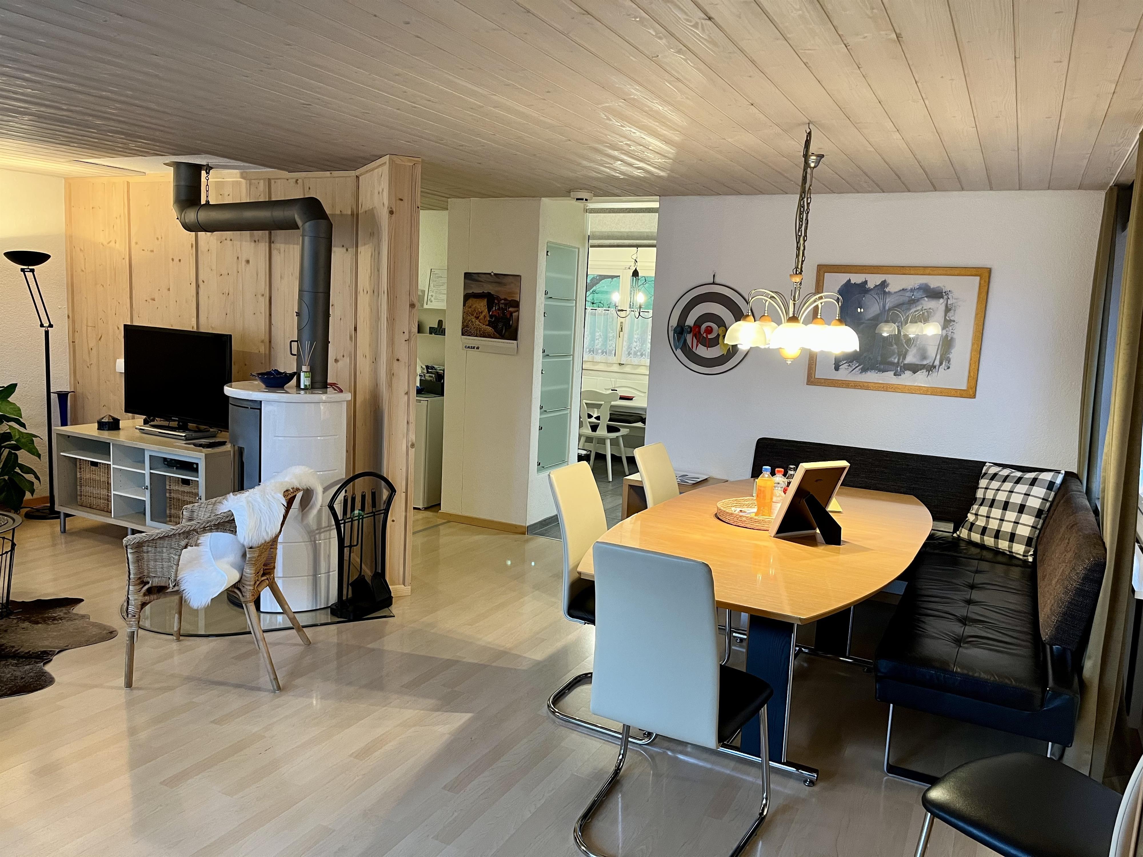 Unsere Ferienwohnung besticht durch ihre ruhige, sonnige Lage mit einem herrlichen Blick auf die Voralpen. Sie bietet großzügigen Raum, eine voll ausgestattete Küche, einen offenen Wohn- und Essbereich, direkten Zugang zur Terrasse und einen kleinen, privaten Garten. Die Wohnung zeichnet sich durch ihre lichtdurchfluteten Räume und Gemütlichkeit aus. Mit moderner Einrichtung, einschließlich zweier Bäder und einer Waschmaschine, sowie der Nähe zu attraktiven Ausflugszielen und erstklassigen Skigebieten, ist sie die ideale Wahl für Entspannungssuchende und Abenteurer.