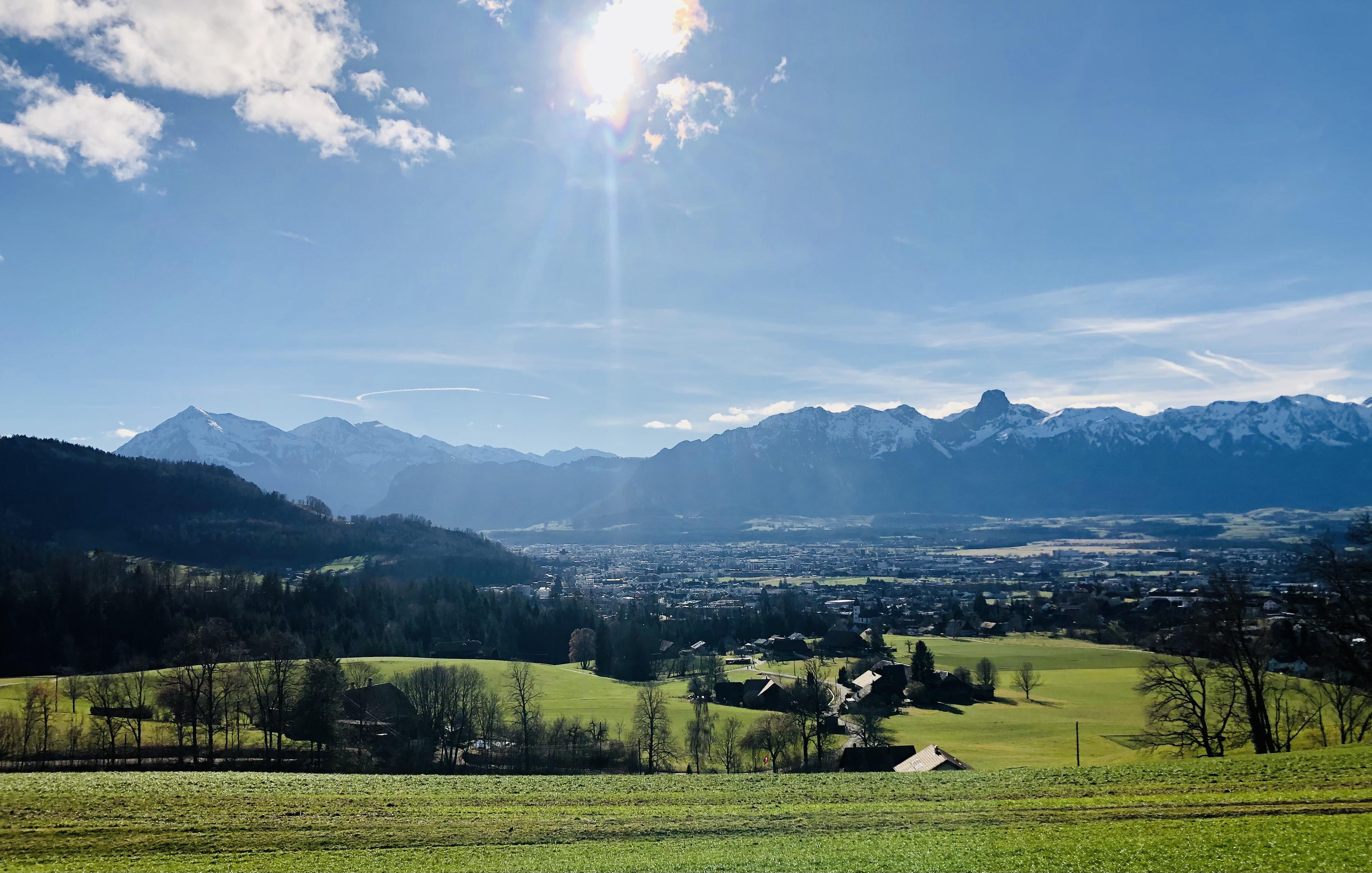 Erleben Sie einen stilvollen Rückzugsort, nur wenige Gehminuten von der nächsten Bushaltestelle entfernt. Der Bus verkehrt alle 10 Minuten in Richtung Thun (Fahrzeit: 16 Minuten) und ist ideal für Wanderer, Geschäftsreisende oder Familien. Ein perfekter Startpunkt für Erkundungen im Berner Oberland, Simmental und Emmental, für Wintersport oder Sightseeing.