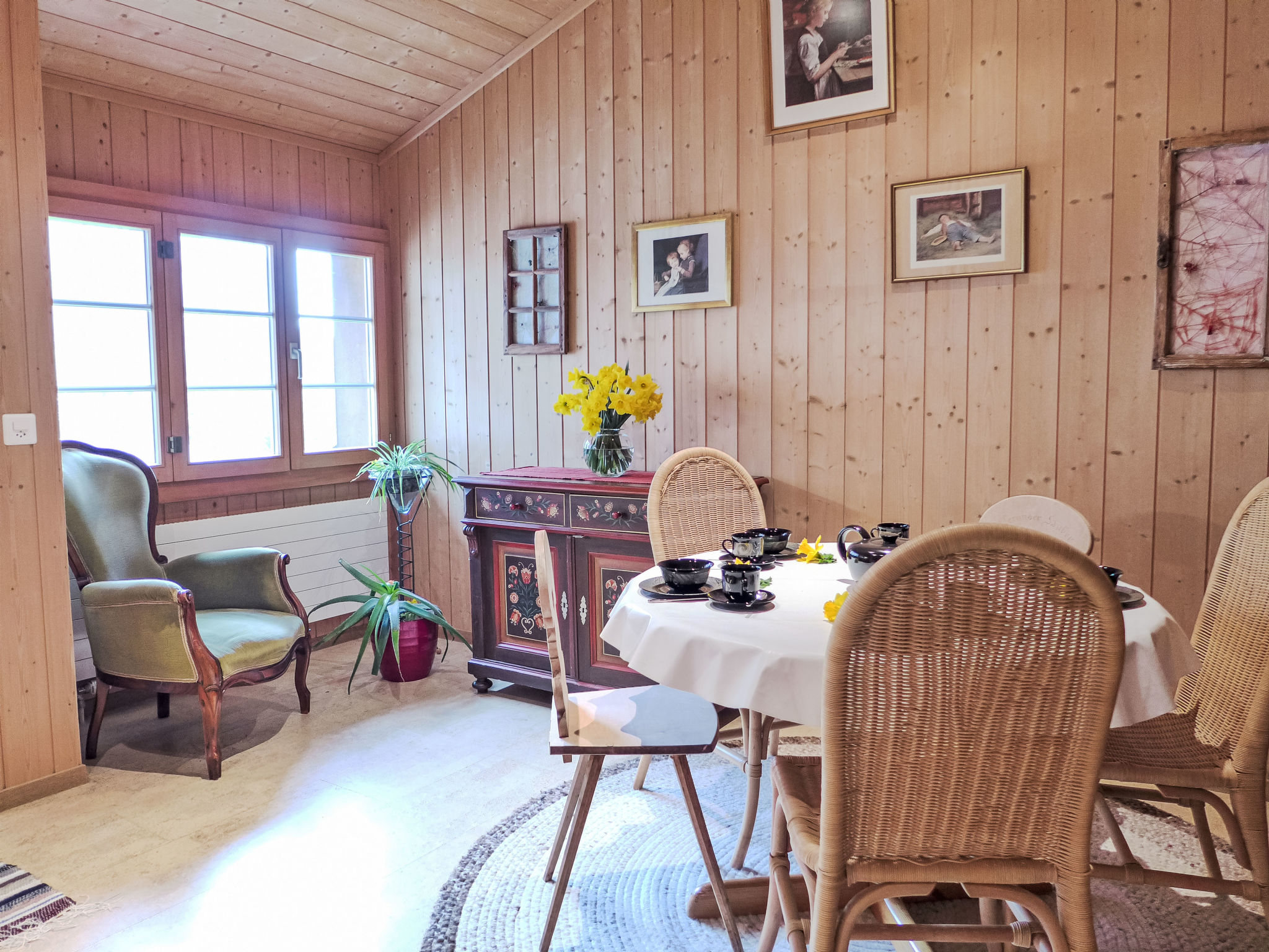 Innertkirchen 6 km von Meiringen: Gemütliches, rustikales Holzhaus "Chalet Heidi", auf 2 Stockwerken, umgeben von Wiesen. Oberhalb von Innertkirchen, im Weiler Unterstock, ruhige, sonnige Lage am Hang. Zur Alleinbenutzung: naturbelassenes Grundstück, Naturgarten. Im Hause: Zentralheizung. Steile, schmale Zufahrt (Bergstrasse). Im Winter bitte Schneeketten mitbringen. Parkplatz beim Haus. Einkaufsgeschäft 4.5 km, Lebensmittelgeschäft 4.5 km, Supermarkt 9.5 km, Bushaltestelle "Innertkirchen, Grimseltor" 3.7 km, Bahnstation "Innertkirchen" 3.8 km. Nahe gelegene Sehenswürdigkeiten: Aareschlucht, Grimselwelt, Freilichtmuseum Ballenberg. Bekannte Skigebiete sind gut erreichbar: Meiringen Hasliberg. Bekannte Seen in der Umgebung sind gut erreichbar: Brienzersee. Wandergebiete: Urbachtal, Hasliberg, Rosenlaui. Bitte beachten: Fahrzeug empfohlen.