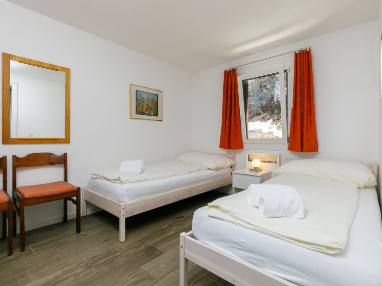 "Residenza Chesa Margun 710-1", 3-Zimmer-Wohnung 84 m2. Geräumig, komfortabel und modern eingerichtet: Wohn-/Esszimmer mit 1 Diwanbett, Kabel-TV und Digital-TV (Flachbildschirm), Radio. Ausgang zum Balkon. 1 Zimmer mit 2 Betten (90 cm, Länge 200 cm). 1 Zimmer mit 1 Doppelbett (2 x 90 cm, Länge 200 cm). Offene Küche (Backofen, Geschirrspüler) mit Esstisch. Dusche/WC. Balkon, Südlage. Sehr schöne Sicht auf die Berge und die Ortschaft. Zur Verfügung: Internet (Wireless LAN, gratis). Bitte beachten: geeignet für Familien. Nichtraucher-Unterkunft.