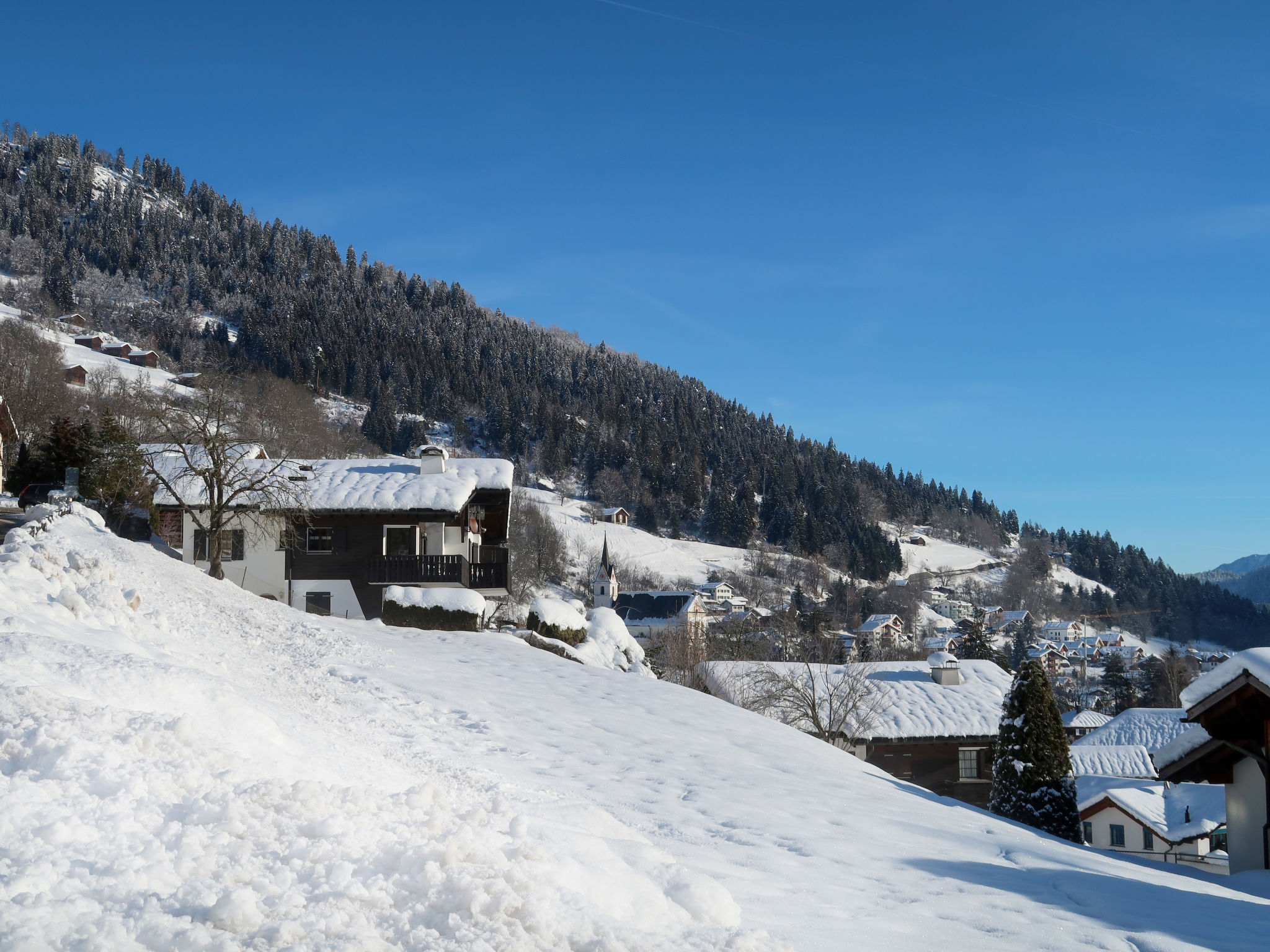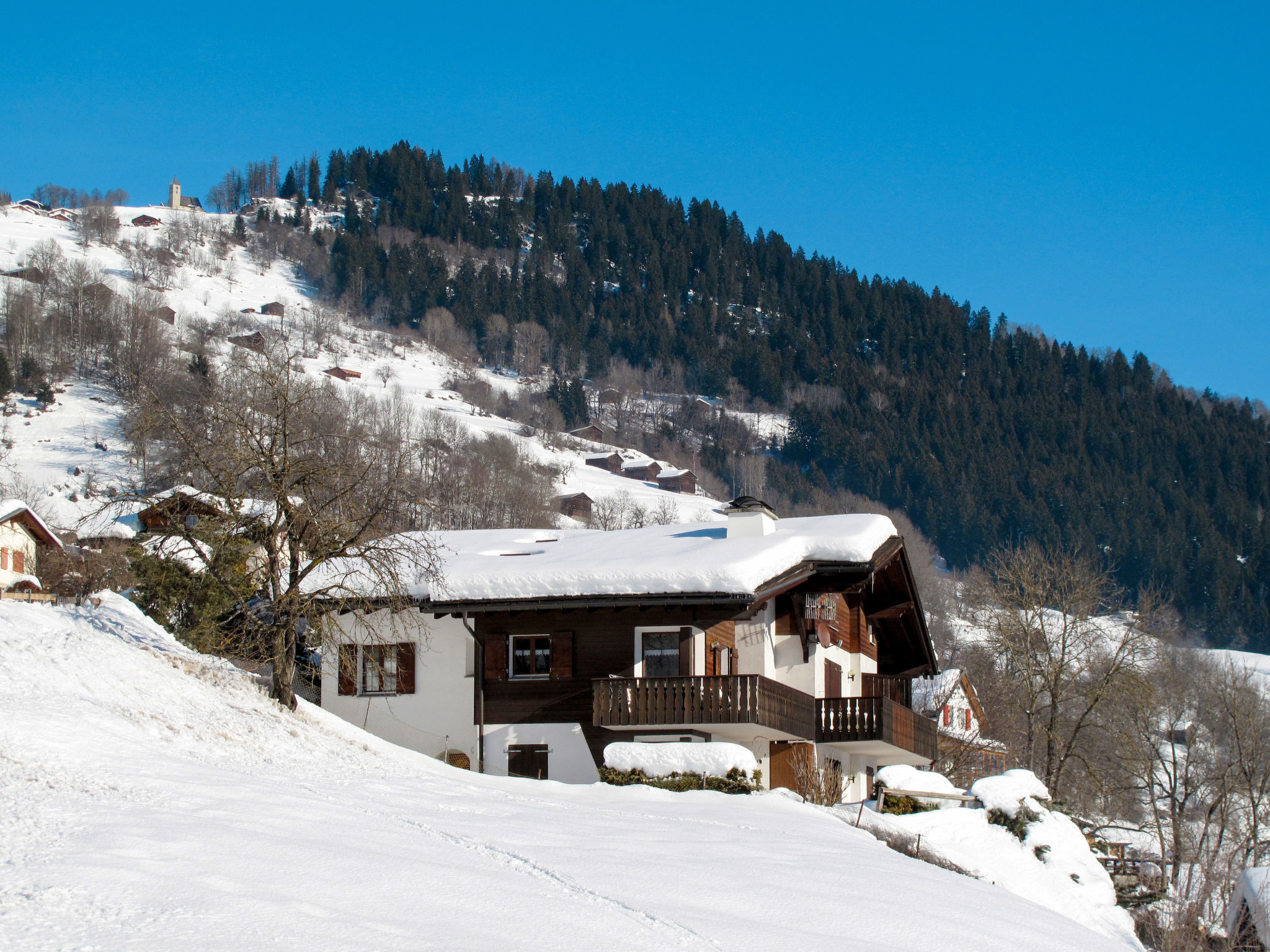 Schluein 4 km von Laax: Gemütliches Mehrfamilienhaus "Muotta Sulegl", 770 m.ü.M., auf 3 Stockwerken. Im Ort, 400 m vom Zentrum von Schluein, ruhige, sonnige Lage am Hang, 6 km vom Skigebiet. Zur Mitbenutzung: Grundstück. Im Hause: Sauna (extra). Skiraum, Zentralheizung. Zufahrt bis zum Haus. Treppenweg bis zum Haus. Parkplatz beim Haus. Einkaufsgeschäft 2 km, Supermarkt 2 km, Restaurant 400 m, Bushaltestelle 400 m, Bahnstation "Ilanz" 4 km. Golfplatz (18 Loch) 5 km, Luftseilbahn 6 km, Skilift 6 km, Sessellift 6 km, Skisportanlagen 6 km, Skibushaltestelle 400 m, Skischule 6 km, Schlittelbahn 6 km, Langlaufloipe 5 km, Kinderspielplatz 4 km. Nahe gelegene Sehenswürdigkeiten: Rheinschlucht 5 km. Bekannte Skigebiete sind gut erreichbar: Weisse Arena Flims/Laax 6 km. Bekannte Seen in der Umgebung sind gut erreichbar: Caumasee 10 km, Laaxersee 9 km, Crestasee 12 km.