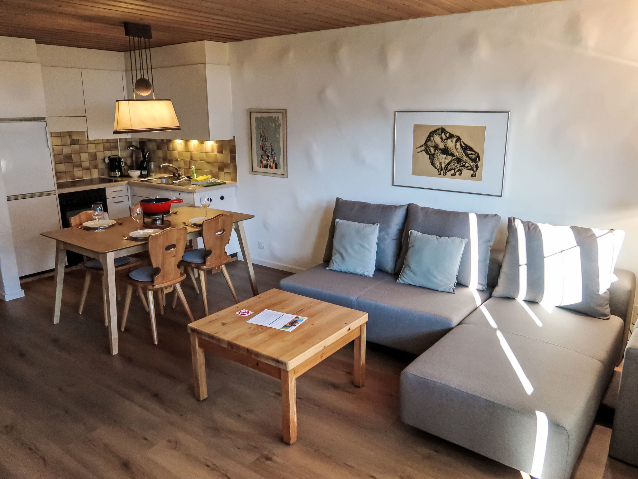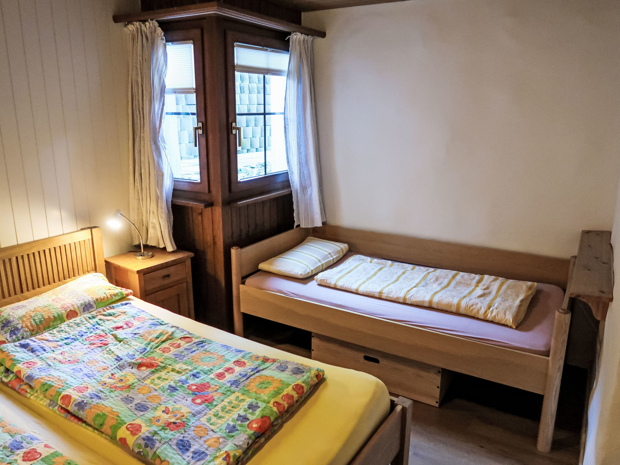 "Wohnung Nr.2", 2-Zimmer-Wohnung 62 m2, im Erdgeschoss. Renoviert im Jahre 2024, komfortabel und gemütlich eingerichtet: Wohn-/Esszimmer mit 1 Doppeldiwanbett und Sat-TV (Flachbildschirm). Ausgang zum Gartensitzplatz. 1 Zimmer mit 3 Betten. Offene Küche (Backofen, Geschirrspüler, 4 Glaskeramikplatten, Toaster, Wasserkocher, elektrische Kaffeemaschine, Kapseln für die Kaffeemaschine (Nespresso) extra, Racletteofen, Fondue Set (Käse)). Dusche/WC. Gartensitzplatz. Terrassenmöbel, Abstellkammer. Schöne Sicht auf die Berge, das Tal und die Landschaft. Zur Verfügung: Waschmaschine, Kinderhochstuhl, Babybett, Haartrockner. Internet (WLAN, gratis). Parkplatz beim Haus. Bitte beachten: Nichtraucher-Unterkunft. Maximal 1 Haustier/Hund erlaubt.