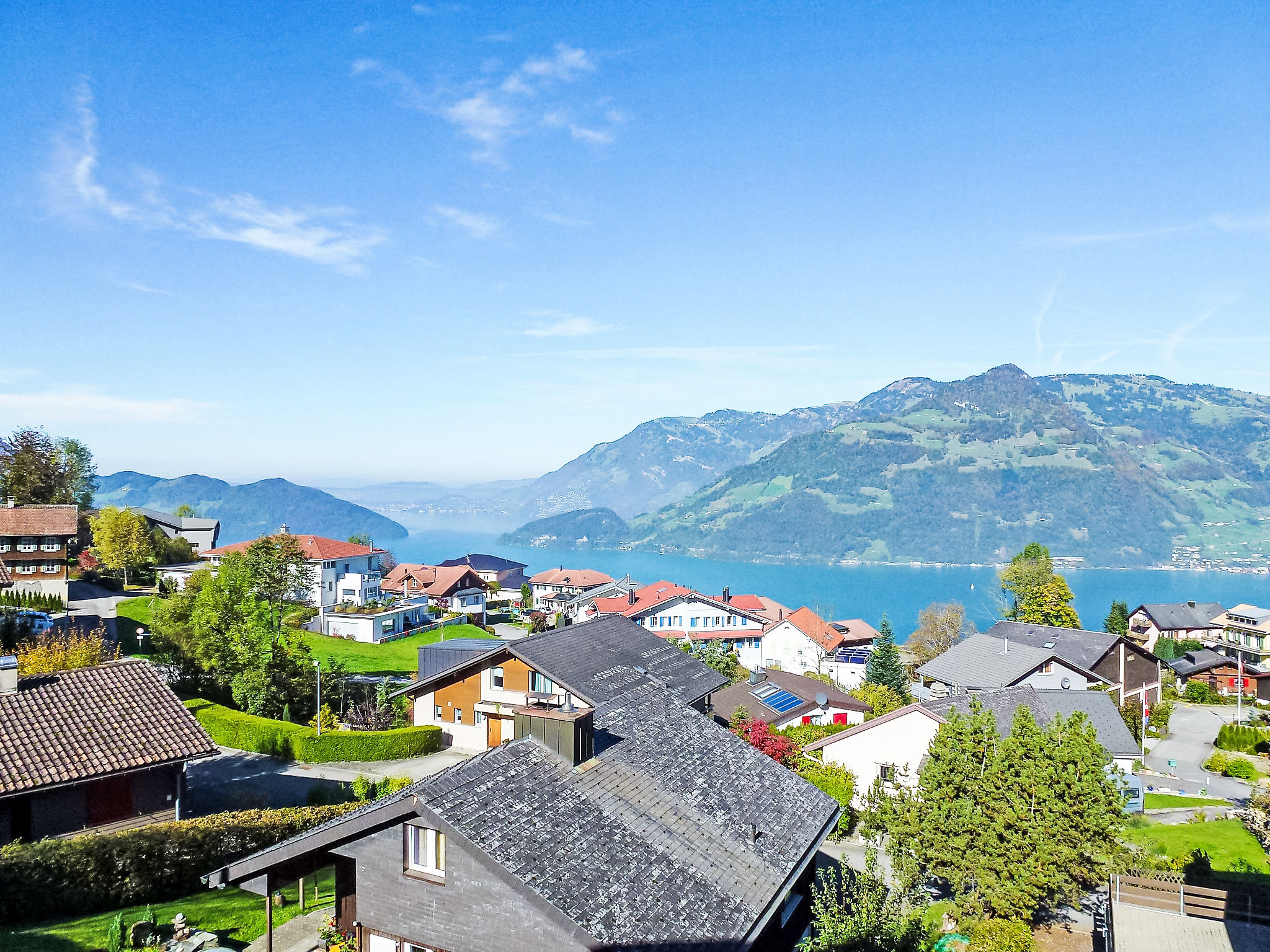 Emmetten 28 km von Luzern: Modernes, schönes, komfortables Mehrfamilienhaus "ELFE Apartments", 780 m.ü.M., auf 3 Stockwerken, umgeben von Bäumen. 3 Häuser in der Residenz. Oberhalb von Beckenried, am Ortsrand, 400 m vom Zentrum von Emmetten, im Bezirk Vierwaldstättersee, ruhige, erhöhte Lage, exzellente Lage: Absolut zentral und dennoch ruhig, 6 km vom See, 300 m vom Skigebiet, im Grünen. Zur Mitbenutzung: Grundstück. Im Hause: Einstellraum für Fahrräder, Skiraum, Zentralheizung, Waschmaschine (zur Mitbenutzung, extra), Trockenraum. Zufahrt bis zum Haus. Im Winter 4x4 empfohlen. Parkplatz (beschränkte Anzahl) beim Haus, im Winter 30 m Gemeinschaftsgarage (extra) beim Haus. Einkaufsgeschäft 500 m, Lebensmittelgeschäft, Restaurant 300 m, Bäckerei 500 m, Bushaltestelle 500 m, Bahnstation "Stans SBB" 12 km, Freibad 6 km, See Vierwaldstätersee 6 km. Minigolf 6 km, Wanderwege ab Haus 1 m, Bergeisenbahn 300 m. Nahe gelegene Sehenswürdigkeiten: Rigi, Pilatus, Stanserhorn (Cabriobahn), Bürgerstock, Niederbauen, Glasi, Hergiswil, Bike-Arena, Emmetten, Tritt - Hütte 1600 m.ü.M. Bekannte Skigebiete sind gut erreichbar: Stockhütte 7 km, Klewenalp 19 km, Seelisberg 8 km. Bekannte Seen in der Umgebung sind gut erreichbar: Vierwaldstättersee 4 km, Urnersee, Seelisbergsee. Wandergebiete: Route 1 Klewenalp-Stockhütte ca. 2h, Route 2 Panoramarundwanderweg ca. 1,5h, Route 6 Klewenalp-Gitschenen ca. 3,5h. Bitte beachten: Fahrzeug empfohlen. Geeignet für Familien, geeignet für Senioren. Bei guter Schneelage Zufahrt mit den Skiern bis zum Haus. Autobahn 5 km vom Haus. Das Foto ist nur ein Hausbeispiel. Weitere Unterkünfte sind buchbar. Ferienwohnung Ref. CH6376.400 befindet sich auf dem gleichen Grundstück.