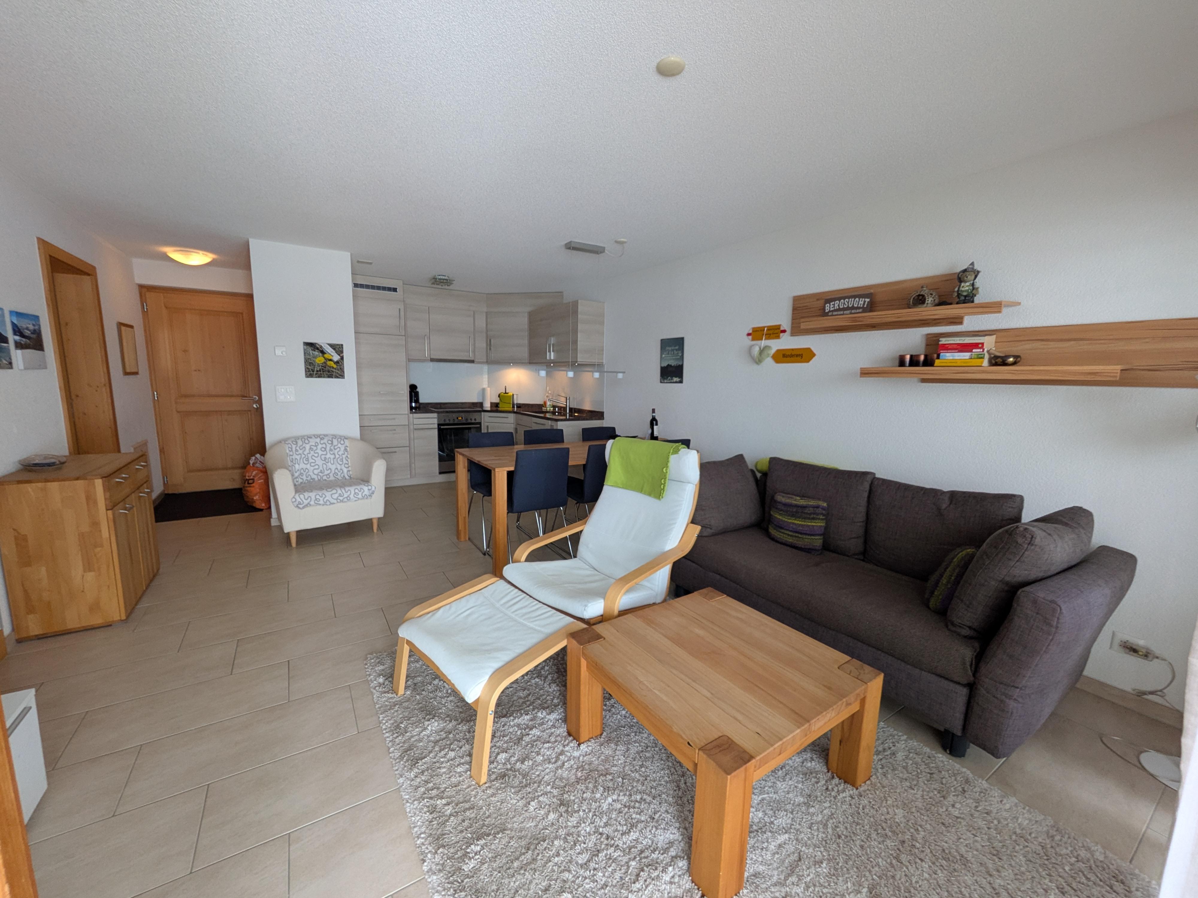 Die 2,5-Zimmerwohnung ist ideal für Naturliebhaber, die nicht auf Komfort verzichten möchten. In der Nähe befinden sich Wanderwegen und Biketrails, die zu aufregenden Abenteuern einladen. Ski-Enthusiasten können die Nähe zur Loipe nutzen, während Golfer den Nähe Golfplatz schätzen werden.