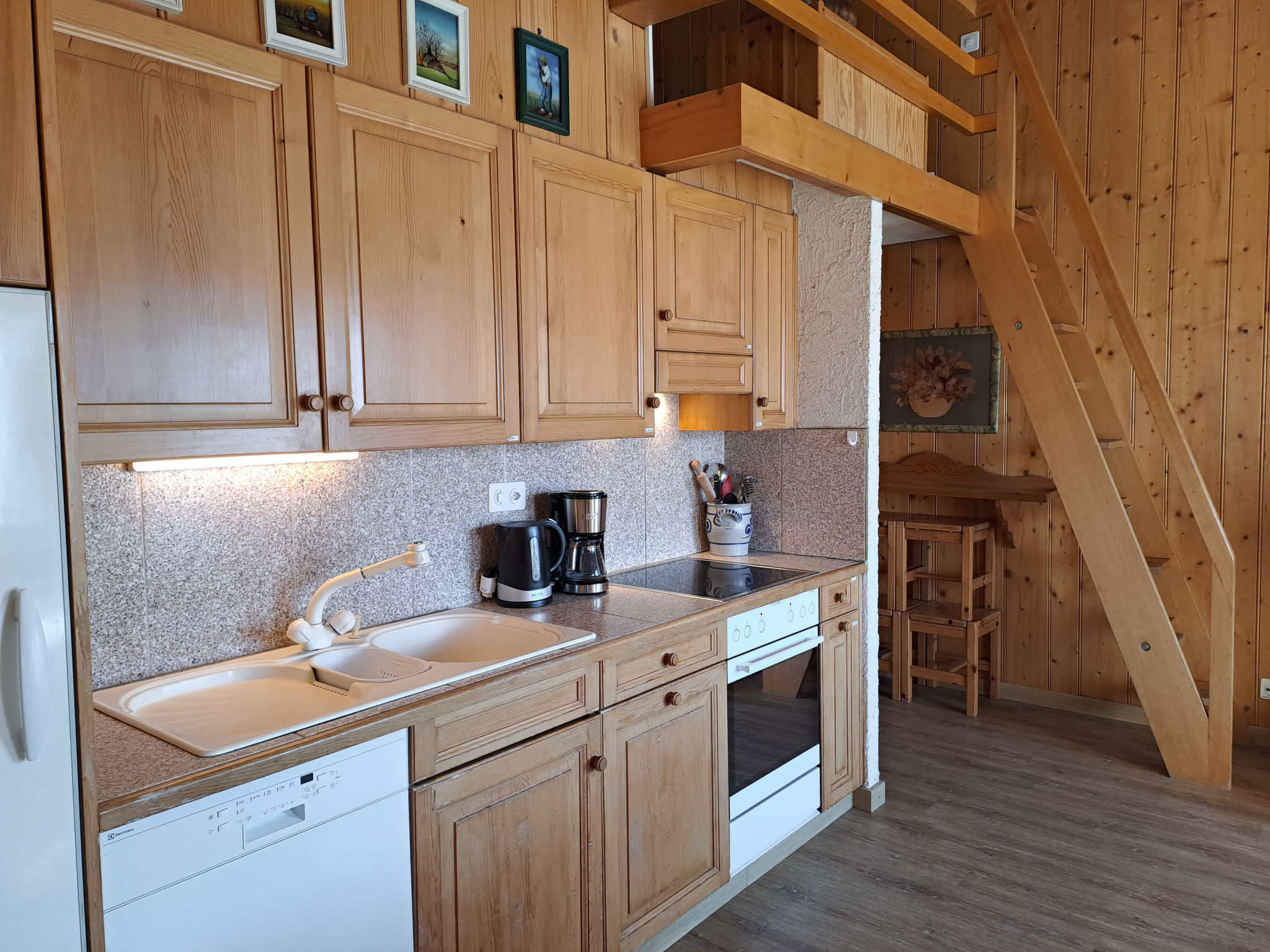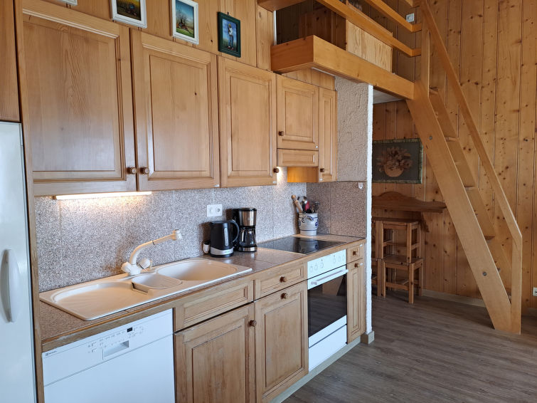 "Pinot Gris combles", 2-Zimmer-Attikawohnung 59 m2 auf 2 Stockwerken, im Dachgeschoss, Südlage. Zweckmässig und schön eingerichtet: abgeschrägtes Wohn-/Esszimmer mit offenem Kamin, Esstisch, Kabel-TV und E-Heizung. Ausgang zum Balkon, Richtung Süden. 1 Zimmer mit 1 Doppelbett (2 x 90 cm, Länge 190 cm). Kochnische (4 Kochplatten, Backofen, Geschirrspüler, Wasserkocher, Fondue Set (Käse)). Bad/WC. E-Heizung. Dachgeschoss: (steile Treppe) abgeschrägte, offene kleine Galerie mit 3 Betten (90 cm, Länge 190 cm). Kleiner Balkon, Südlage. Balkonmöbel. Sehr schöne Panoramasicht auf die Berge, die Skipiste, die Landschaft und die Ortschaft. Zur Verfügung: Haartrockner. Internet (Wireless LAN, gratis). Bitte beachten: Nichtraucher-Unterkunft, kein Parkplatz. Kein Fahrstuhl. Anstelle eines abgeschlossenen Schlafzimmers befinden sich manche Schlafplätze in einem offenen Bereich (Galerie, Nische etc.).