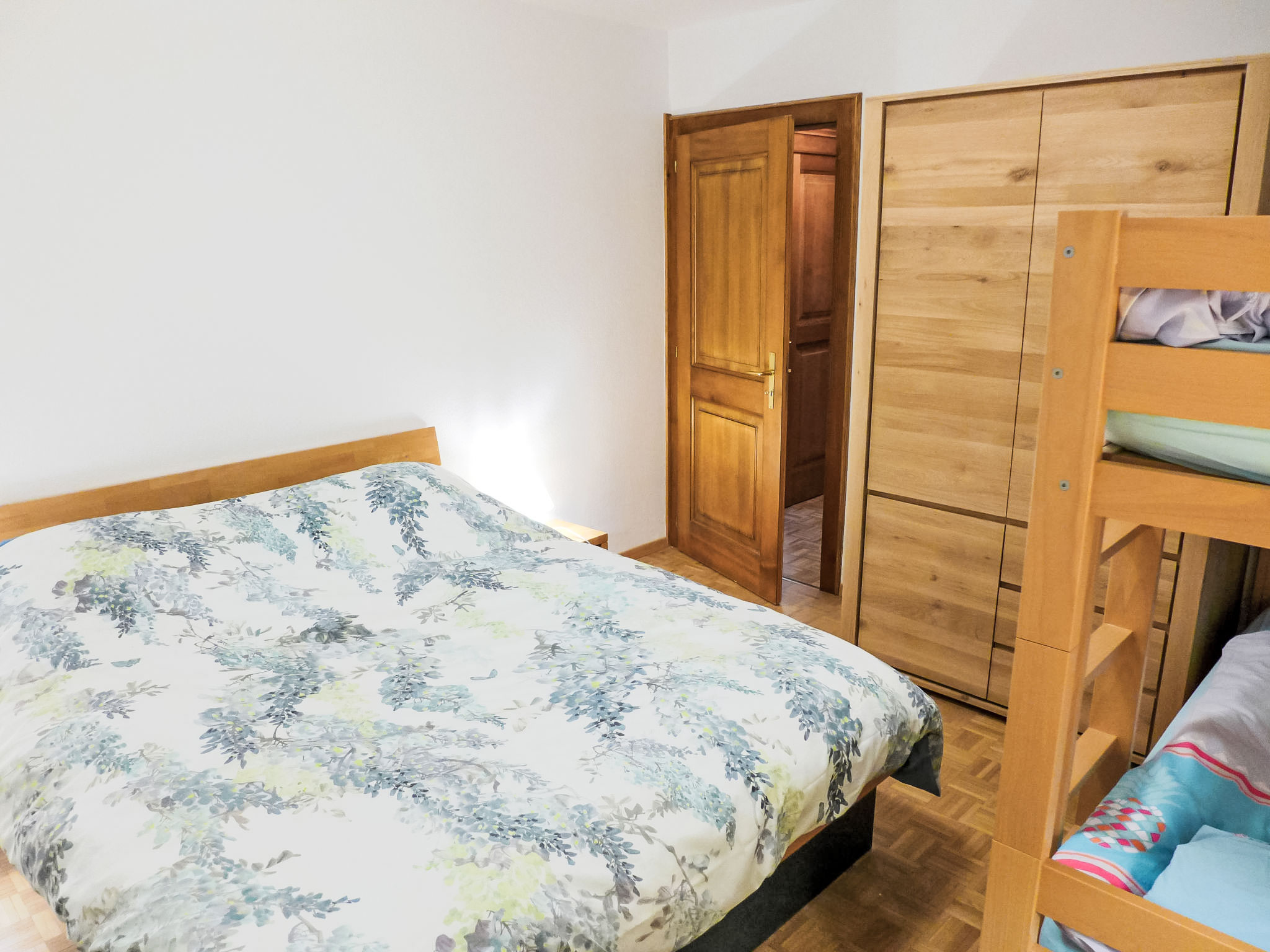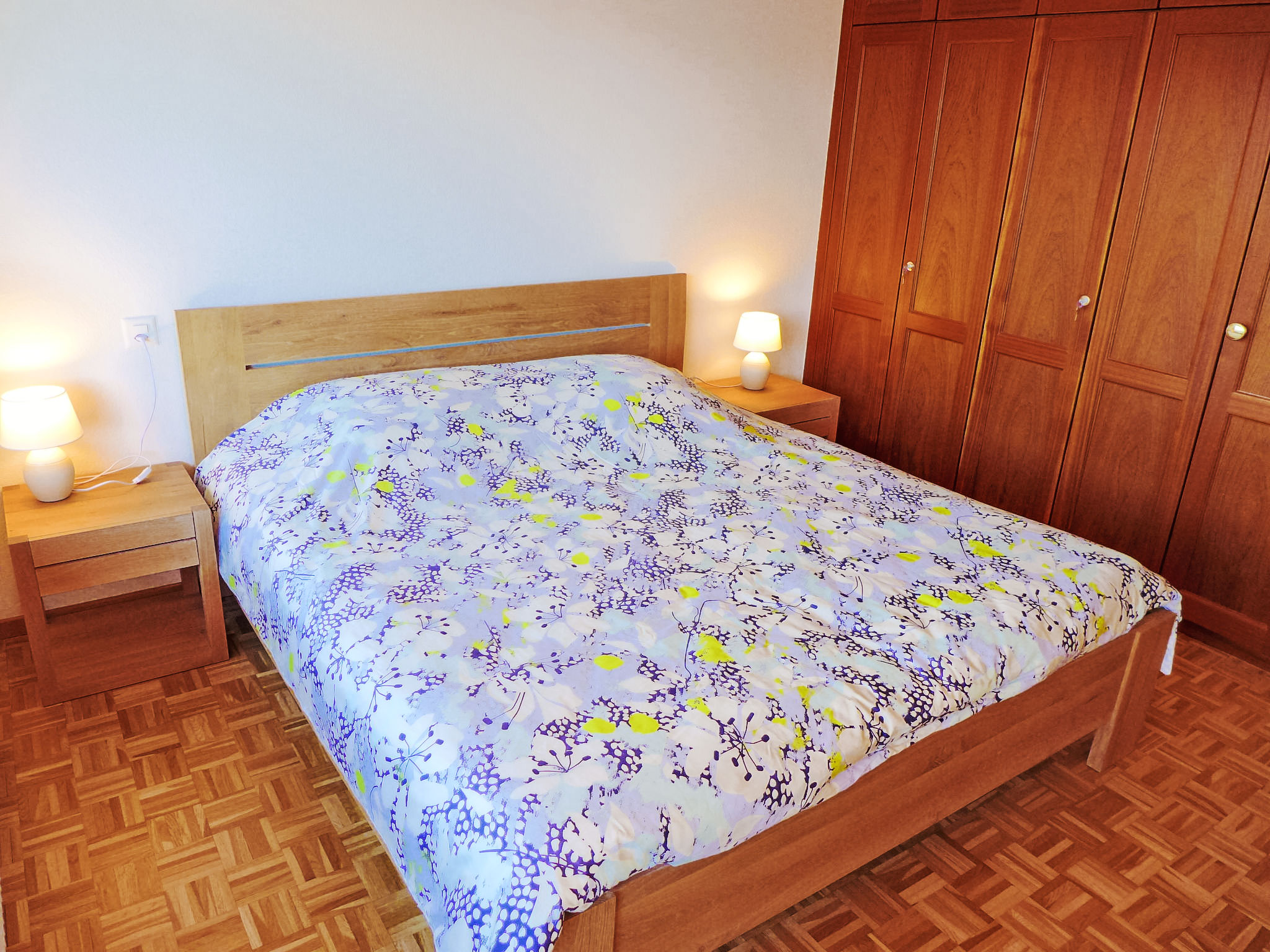 "Grand-Large A 22", 3-Zimmer-Wohnung 74 m2 im 4. Stock. Objekt geeignet für 4 Erwachsene + 2 Kinder. Renoviert im Jahre 2017, schön eingerichtet: Wohn-/Esszimmer mit Kabel-TV. Ausgang zum Balkon. 1 Zimmer, Richtung Süden mit 1 Doppelbett (2 x 90 cm, Länge 200 cm), Dusche/WC. Ausgang zum Balkon. 1 Zimmer, Richtung Norden mit 1 x 2 Etagenbetten (90 cm, Länge 200 cm), 1 Doppelbett (2 x 80 cm, Länge 200 cm). Offene Küche (Backofen, Geschirrspüler, 3 Induktionskochplatten, Toaster, Wasserkocher, Mikrowelle, elektrische Kaffeemaschine, Kapseln für die Kaffeemaschine (NESPRESSO), Racletteofen, Fondue Set (Käse)). Bad/WC. Balkon, Südlage. Balkonmöbel. Sehr schöne Sicht auf die Berge. Zur Verfügung: Bügeleisen, Kinderhochstuhl, Haartrockner. Internet (Wireless LAN, gratis). Garage Nr. 18 in 15 m, Höhe 175 cm, Breite 240 cm. Bitte beachten: Nichtraucher-Unterkunft.