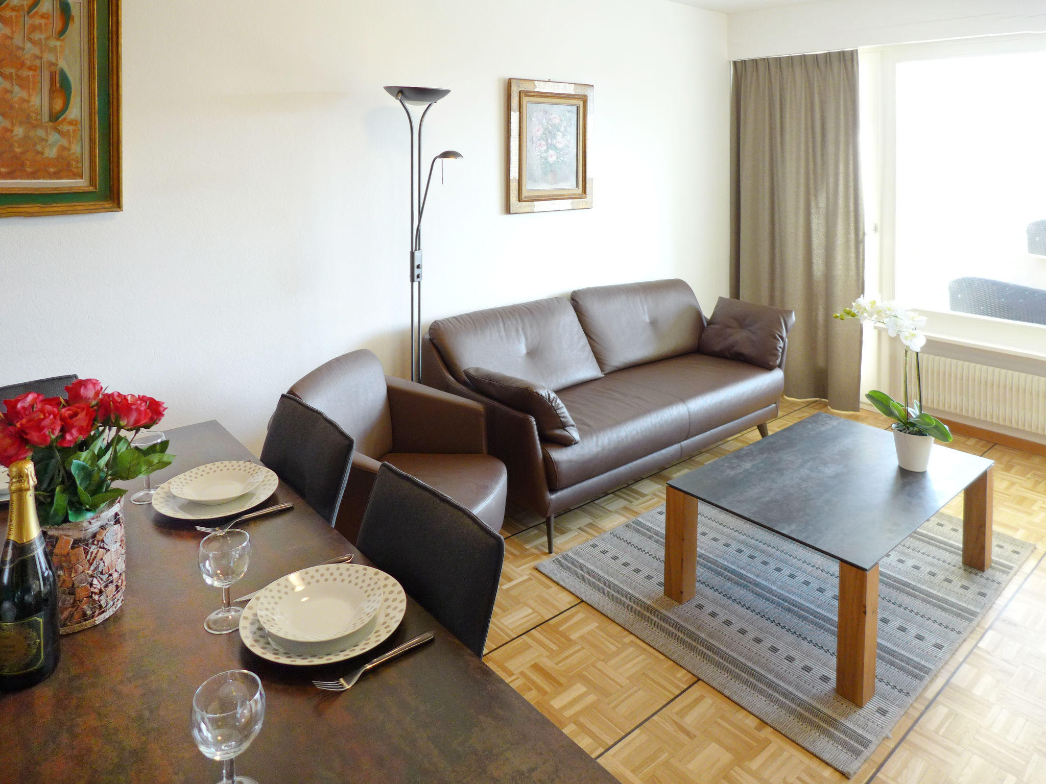 Mehrfamilienhaus "Grand Large A/B". Im Ort, 200 m vom Zentrum von Montana, sonnige Lage, 1.1 km vom See, Richtung Süden. Im Hause: Fahrstuhl, Skiraum, Zentralheizung, Waschmaschine, Wäschetrockner (zur Mitbenutzung, extra), Trockenraum. Parkplatz (beschränkte Anzahl). Einkaufsgeschäft 200 m, Supermarkt 240 m, Restaurant, Bäckerei 300 m, Zentrum zu Fuss in 2 Minuten erreichbar, Bushaltestelle "Montana Poste" 100 m, Bahnstation "Funiculaire Montana Gare" 210 m, Badesee "Moubra" 1.7 km, See Grenon 1.1 km. Golfplatz (18 Loch) 2.2 km, Skisportanlagen 1 km. Bekannte Seen in der Umgebung sind gut erreichbar: Lac de la Moubra 1.7 km, Etang Long 2.2 km. Bitte beachten: Gratis Skibus. Die Stockwerke müssen als Ebenen betrachtet werden (ab Residenzboden gerechnet).