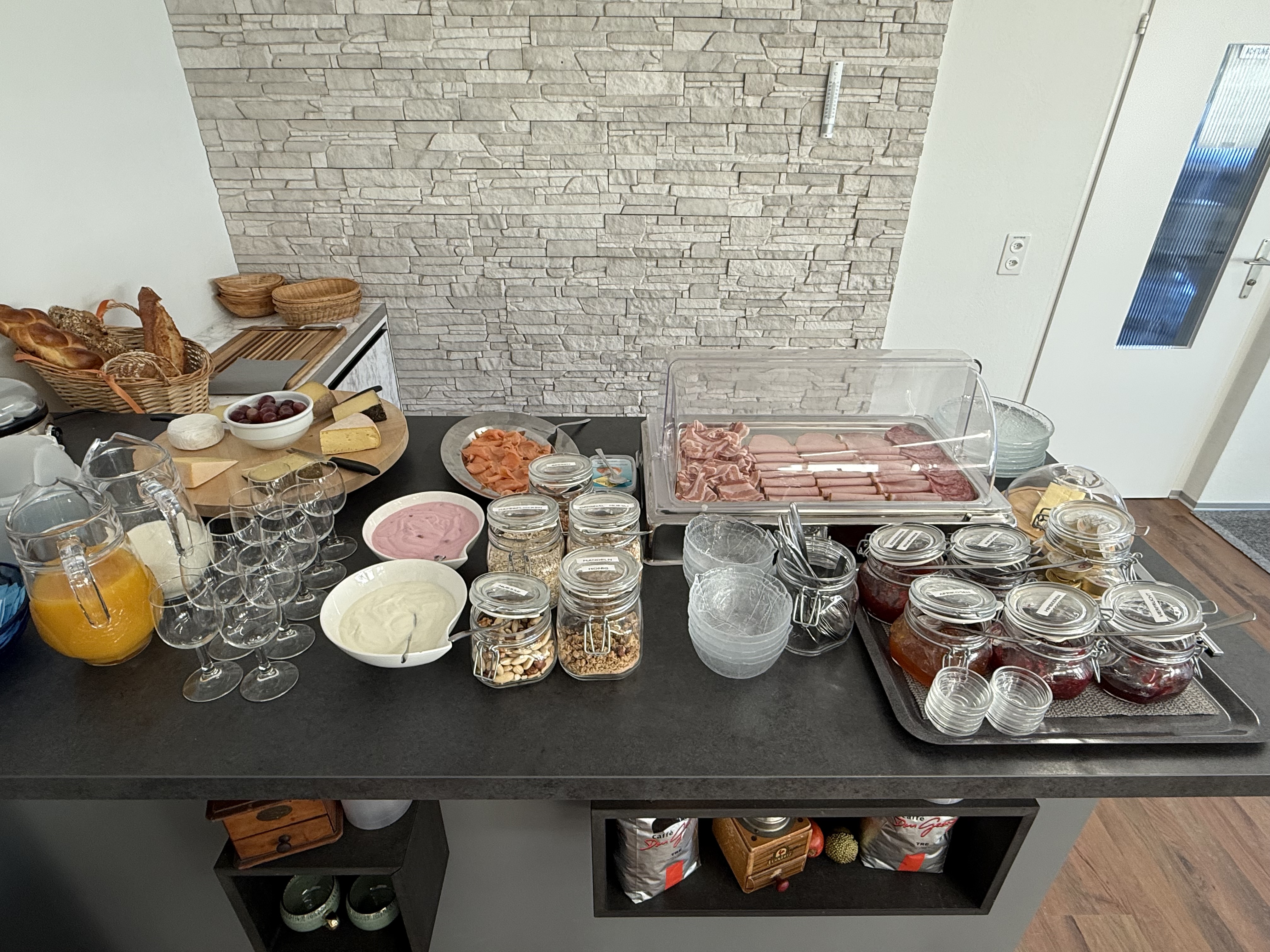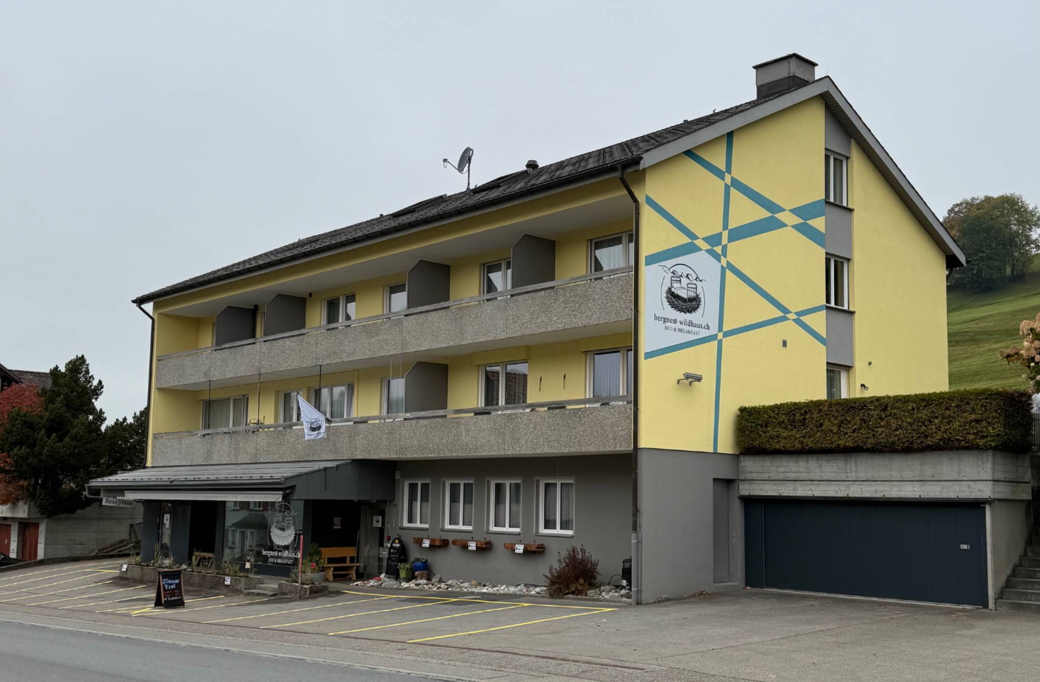 Bed and Breakfast mit 6 Doppelzimmer, 3 Einzelzimmer, Gemeinschaftsküche und Aufenthaltsraum zur gratis Benutzung. Daneben stehen noch eine 3.5 (8Personen) und 5.5 Zimmerwohnung (14 Personen) zur Verfügung. Neuer Frühstücksraum im EG.