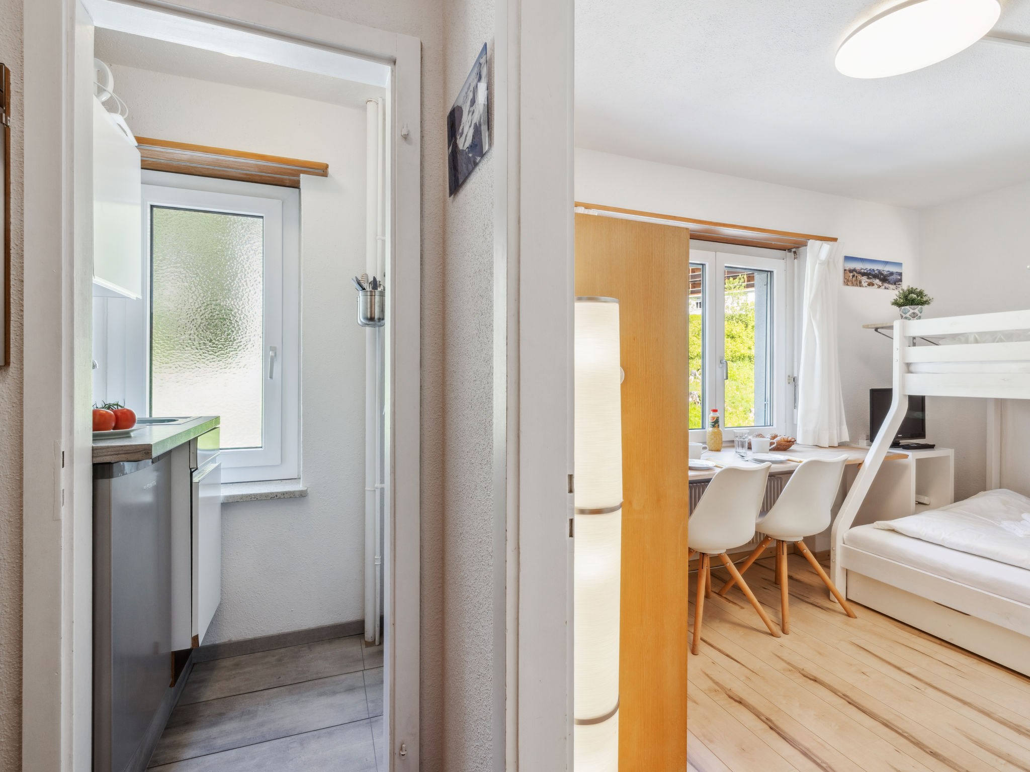 "Promenade Apt 216", 1-Zimmer-Wohnung 16 m2. Renoviert im Jahre 2018, modern und gemütlich eingerichtet: Wohn-/Schlafzimmer mit 1 x 1 Etagenbetten, 1 Doppelbett (140 cm), Sat-TV (Flachbildschirm), Radio. Kochnische (2 Kochplatten). Dusche/WC. Zur Verfügung: Internet (WLAN, gratis). Bitte beachten: Nichtraucher-Unterkunft. Rückwärtige Lage.