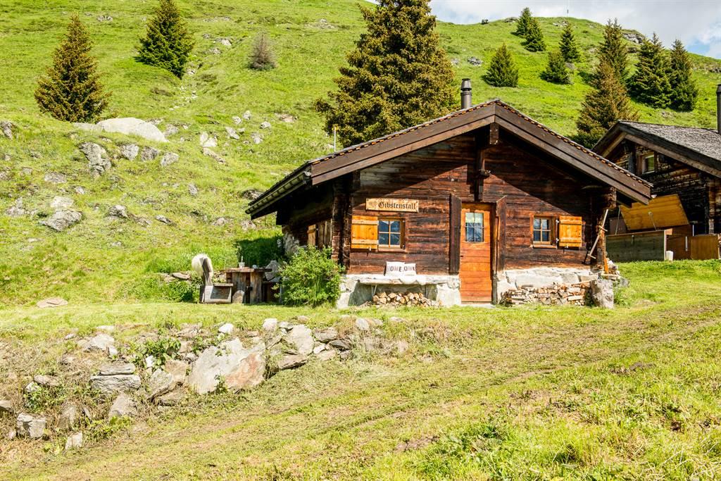 Erreichbarkeit im Sommer: Die neu renovierte rustikale Alphütte von 1842 erreichen Sie ab Bergstation in ca. 30 Minuten Marschzeit oder auf Wunsch mit dem Jeep (Preis pro Fahrt CHF 30.-).