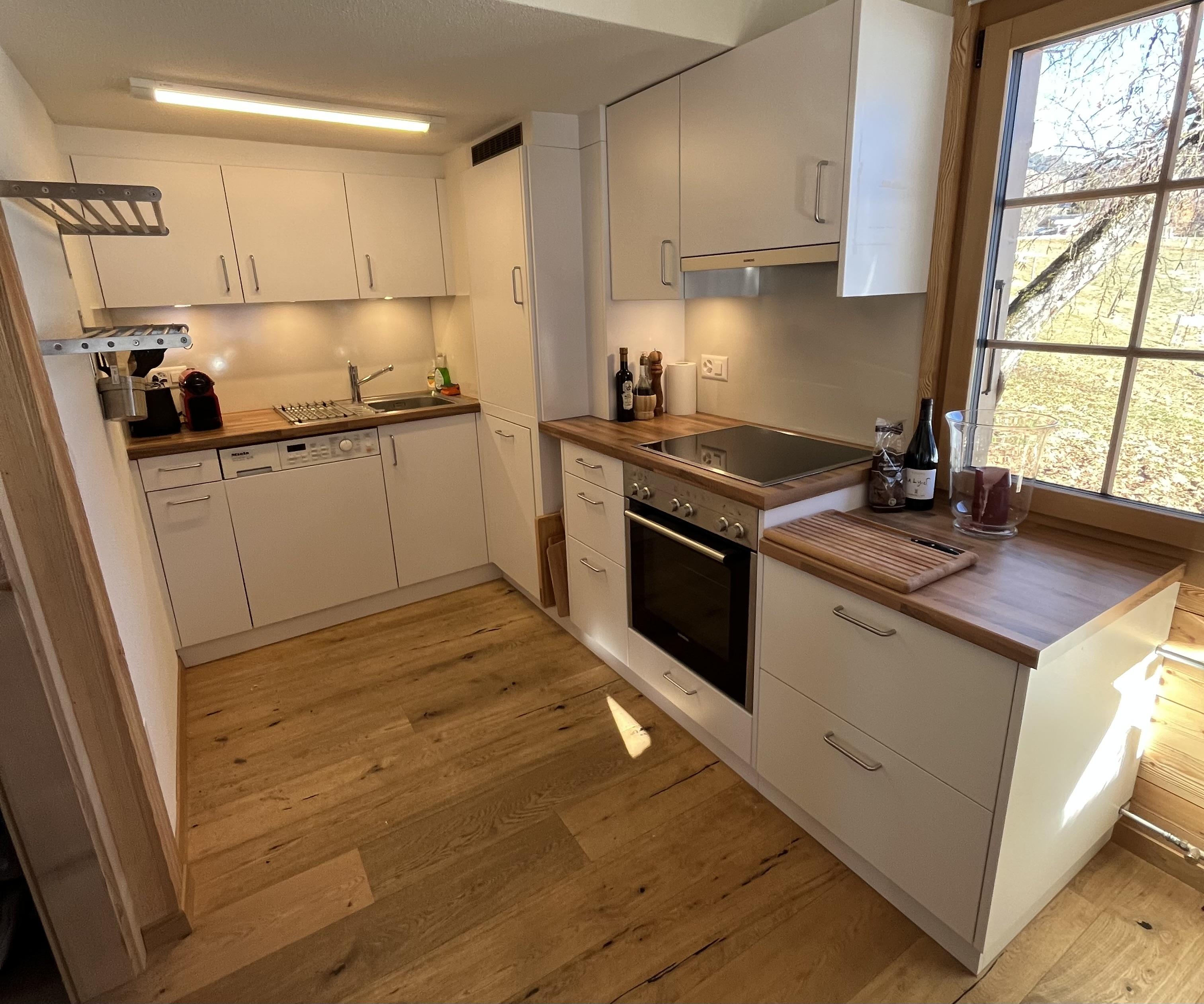 Zwei kleine Balkone und ein Gartenplatz unter Bäumen laden zum Verweilen ein. Der Bahnhof Schönried und diverse Einkaufsmöglichkeiten sind in wenigen Minuten erreichbar. Vom Haus aus erreicht man das Skigebiet Horneggli direkt mit den Ski an den Füssen. Im Sommer starten Wander- und Bikewege gleich vor der Haustür.