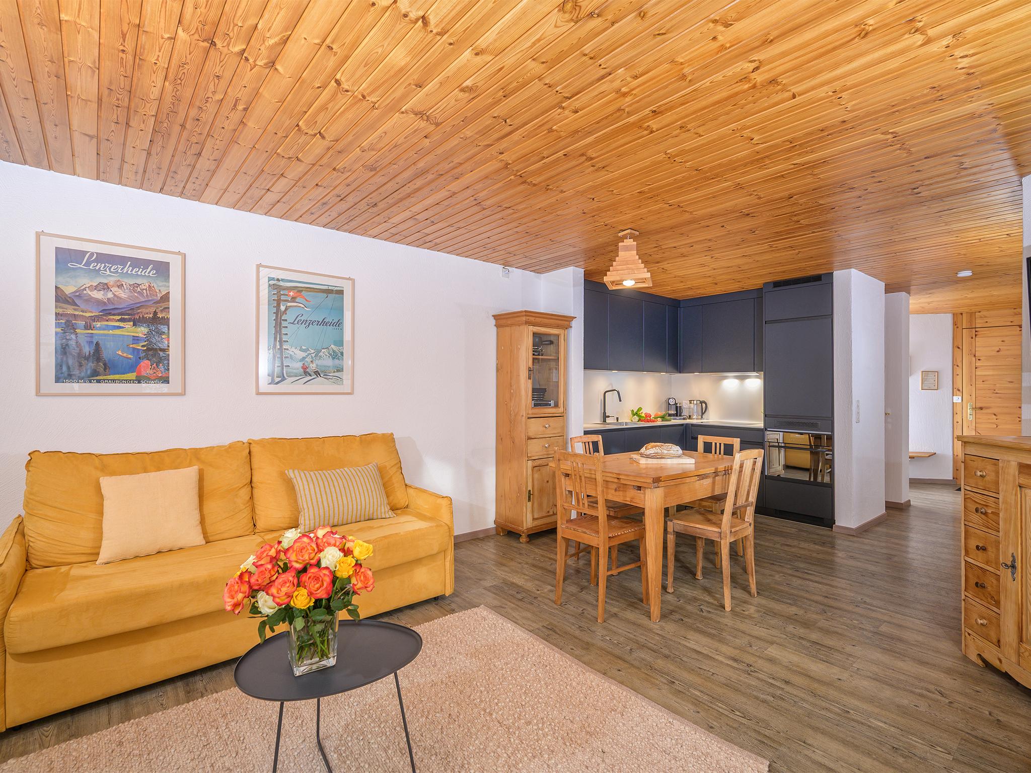 Wohnung im Gebäudekomplex des Hotel Schweizerhof. Ruhige, idyllische Lage, Balkon mit schöner Aussicht. Hotelanlage mit Wellnessbereich, Schwimmbäder und kleine Saunalandschaft sind kostenfrei. Sehr zentral gelegen, optimaler Ausgangspunkt zum Skilaufen bzw. Langlaufen.