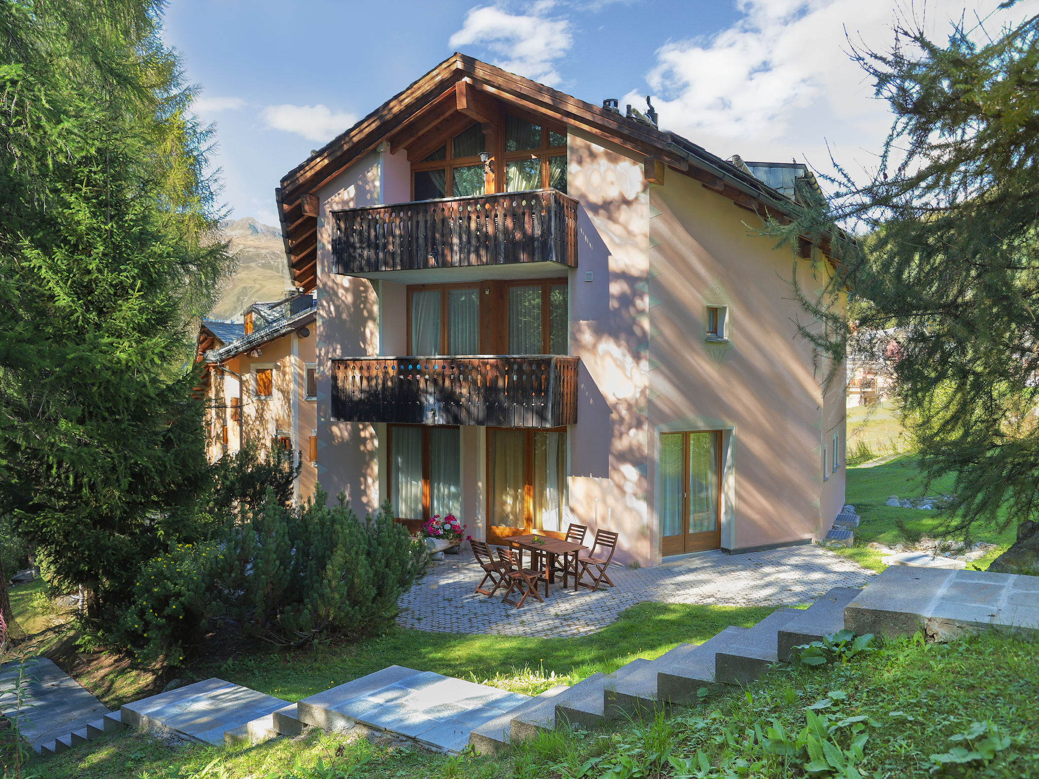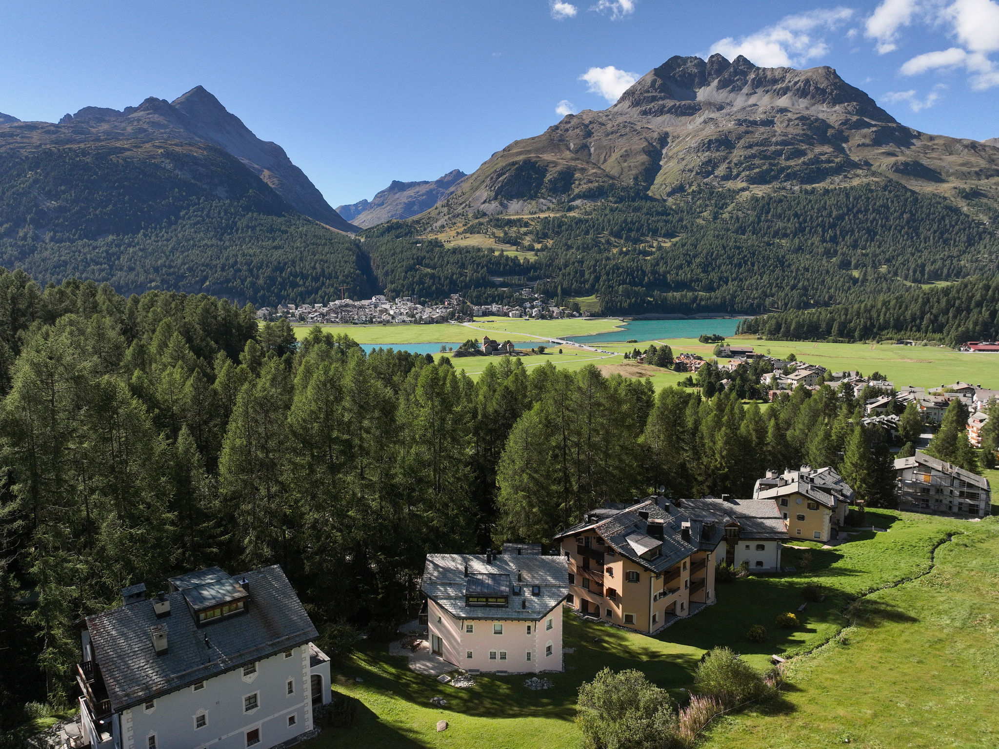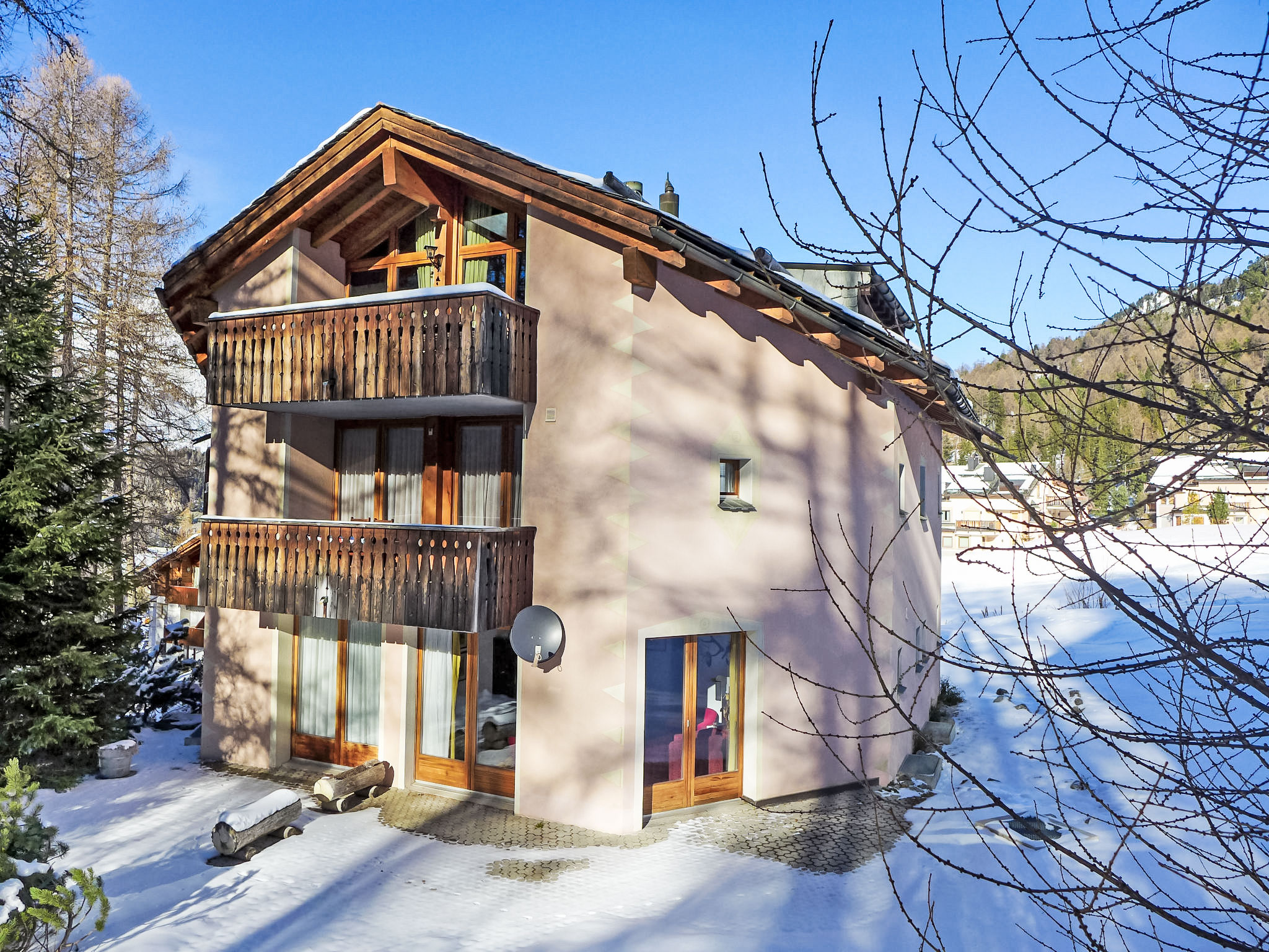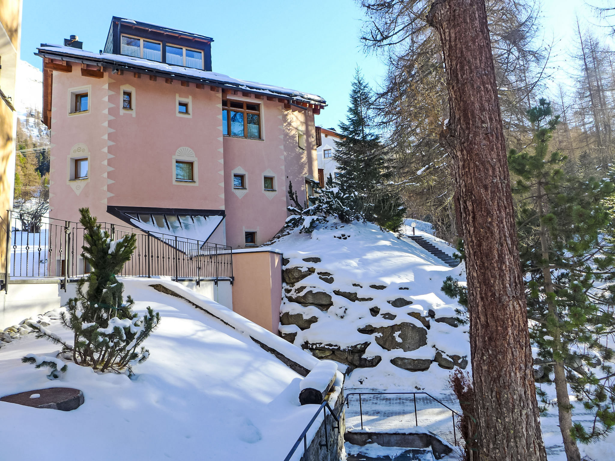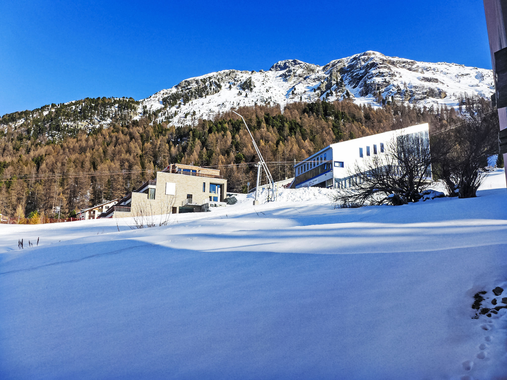 Kleines Mehrfamilienhaus "Chesa Cresta", auf 3 Stockwerken, umgeben von Bäumen und Wiesen. Unterhalb von Corvatsch, sonnige Lage am Hang, in einem Wohnquartier, 200 m vom Waldrand, 100 m vom Skigebiet, in einer Sackgasse, im Grünen. Zur Mitbenutzung: schöner terrassierter Garten (nicht eingezäunt). Im Hause: Sonnenterrasse, Skiraum, Zentralheizung, Waschmaschine, Wäschetrockner (zur Mitbenutzung, extra), Trockenraum. Im Winter bitte Schneeketten mitbringen. Gemeinschaftsgarage. Einkaufsgeschäft 1.6 km, Lebensmittelgeschäft 1.6 km, Restaurant 400 m, Bäckerei 500 m, Café 500 m, Fahrradverleih 800 m, Bushaltestelle "Surlej Parkplatz" 600 m, See Silvaplaner See 1 km. Golfplatz (18 Loch) 13.6 km, Surfschule 2.3 km, Tennis 2.3 km, Tennishalle 6.1 km, Minigolf 6.6 km, Reitstall 3.9 km, Sportzentrum 2.3 km, Wanderwege ab Haus 200 m, Radweg 500 m, Luftseilbahn 1.4 km, Skilift, Skiverleih 800 m, Skibushaltestelle 600 m, Skischule 100 m, Kinderskischule 100 m, Schlittelbahn 11 km, Langlaufloipe 400 m, Eisfeld 2.3 km, Kinderspielplatz 1.6 km. Nahe gelegene Sehenswürdigkeiten: Nietzsche-Haus in Sils-Maria 6.6 km, Segantini-Museum in St. Moritz 6.6 km. Bekannte Skigebiete sind gut erreichbar: Corvatsch - Furtschellas 100 m, Corviglia 6.6 km, Diavolezza - Lagalb 26 km. Bekannte Seen in der Umgebung sind gut erreichbar: Silvaplana See 1 km, Silser See 5.6 km, St. Moritzer See 6.6 km. Wandergebiete: Corvatsch - Furtschllas 1.4 km, Via Engiadina 1.8 km, Seengebiet St. Moritz - Maloja. Bitte beachten: kein Fahrstuhl vorhanden. Bei guter Schneelage Zufahrt mit den Skiern bis zum Haus.
