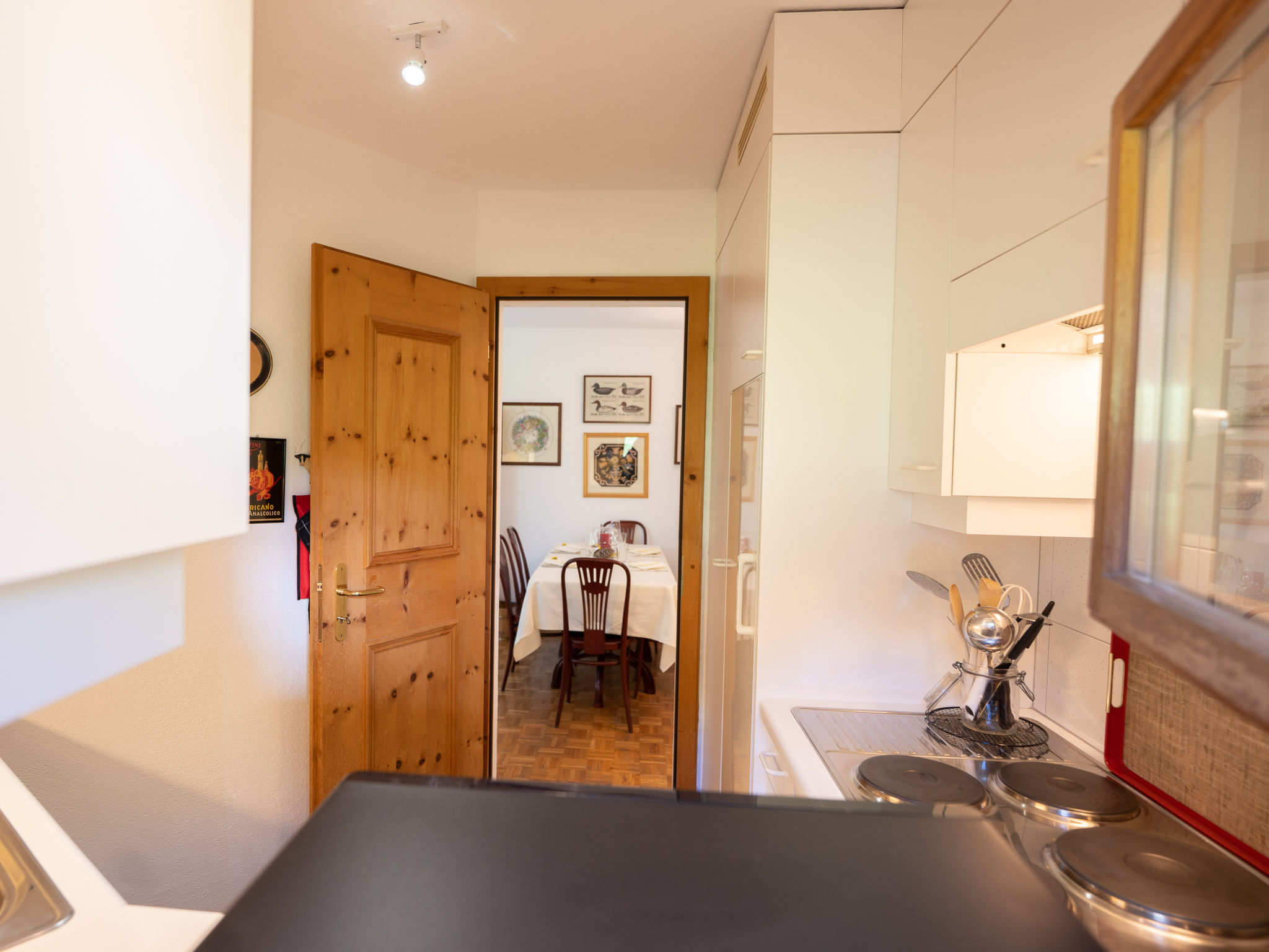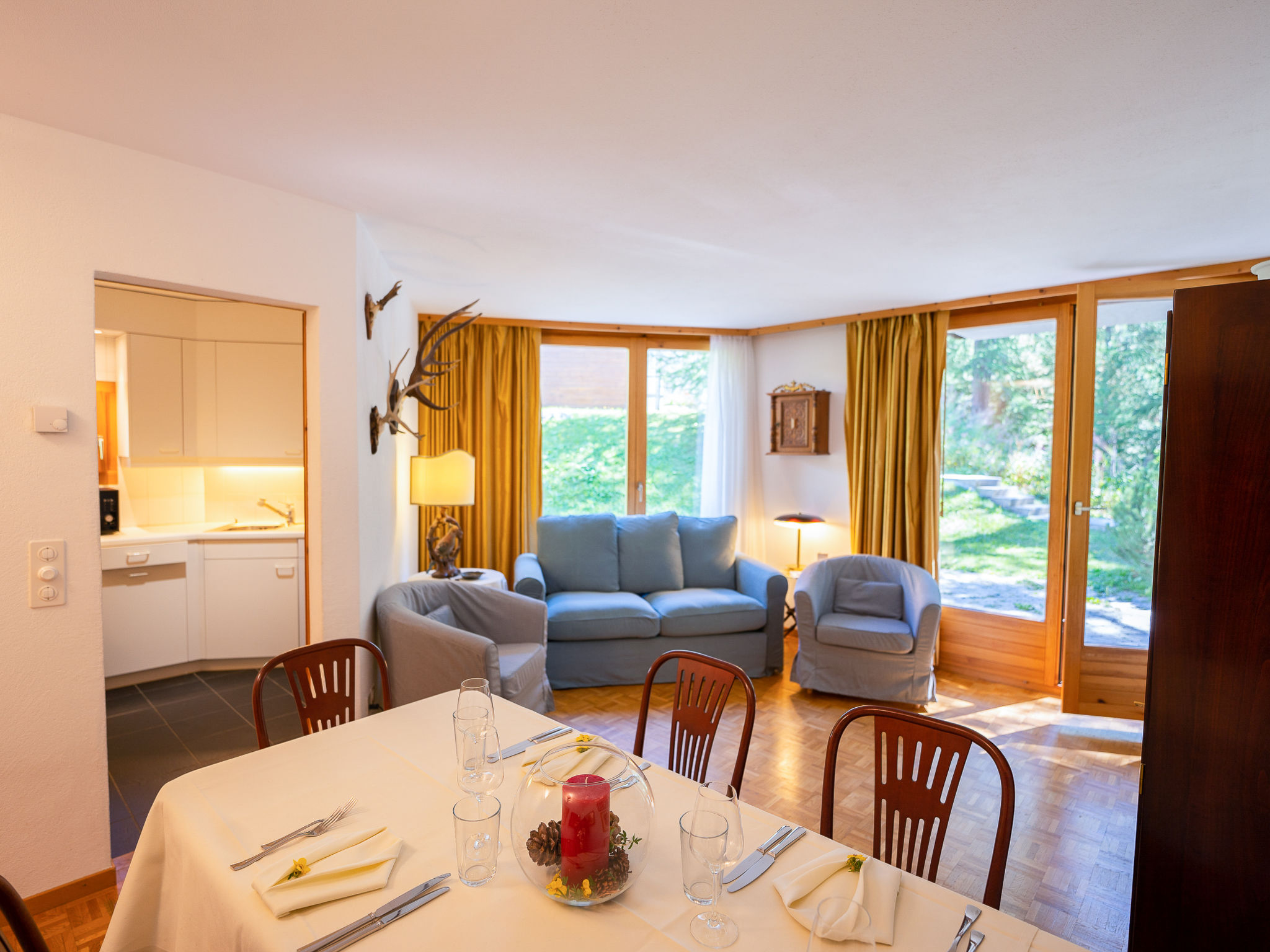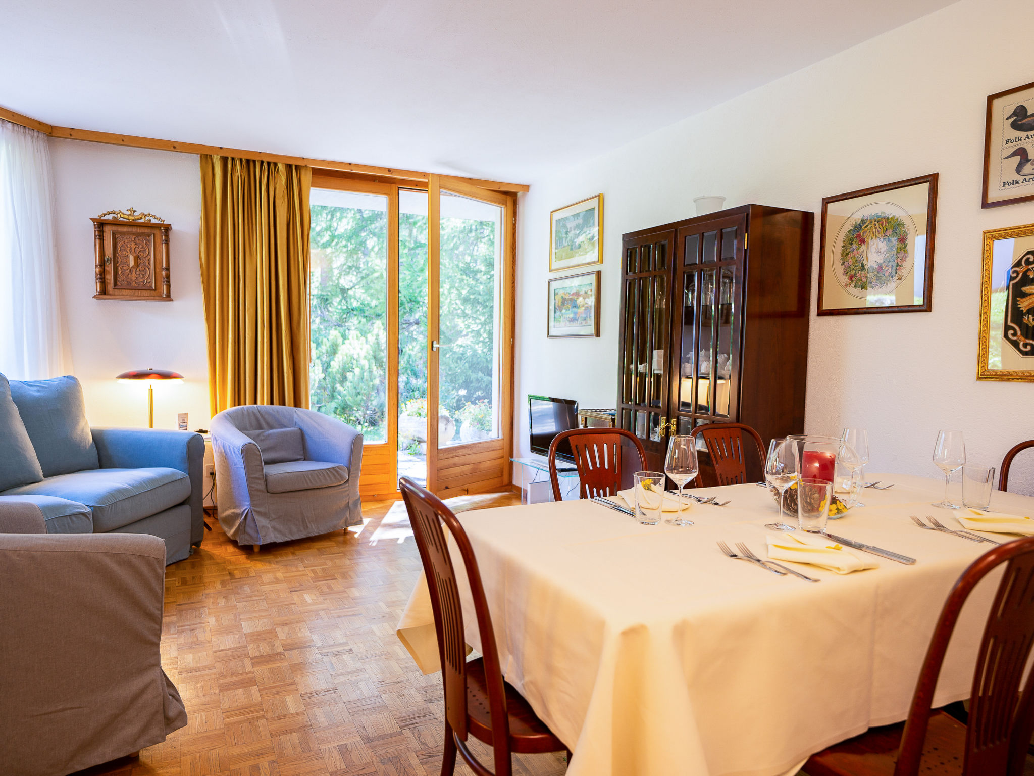 "Chesa Cresta", 3-Zimmer-Wohnung 65 m2, im erhöhten Erdgeschoss. Objekt geeignet für 2 Erwachsene + 2 Kinder. Hell, geschmackvoll und gemütlich eingerichtet: Wohn-/Esszimmer mit TV (Flachbildschirm). Ausgang zur Terrasse, Richtung Südwesten. 1 Zimmer mit 1 Doppelbett (1 x 170 cm, Länge 200 cm). 1 kleines Kinderzimmer mit 1 x 2 Etagenbetten (90 cm, Länge 190 cm). Kleine Küche (4 Kochplatten, Backofen, Geschirrspüler, Toaster, Wasserkocher, Mikrowelle, elektrische Kaffeemaschine, Kapseln für die Kaffeemaschine (Nespresso) extra, Racletteofen). Bad/WC, Bidet, sep. WC. Heizung. Holzdielenboden. Terrasse. Terrassenmöbel, Liegestühle (2). Sehr schöne Sicht auf die Berge und die Skipiste. Zur Verfügung: Haartrockner. Internet (Wireless LAN, gratis). Garage Nr. 6 + 10 auf dem Grundstück (2 Autos), Höhe 230 cm, Breite 295 cm. Bitte beachten: Nichtraucher-Unterkunft. Maximal 1 Haustier/Hund erlaubt. Kein Fahrstuhl.