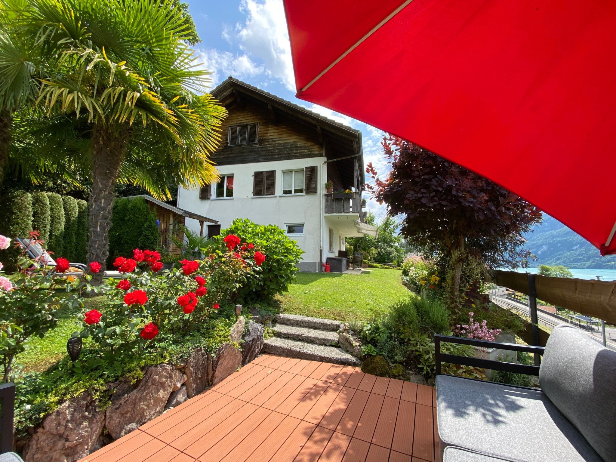 Entdecke deine perfekte Auszeit in dieser bezaubernden kleinen Ferienwohnung. Das Studio befindet sich in einem freistehenden Chalet und eignet sich hervorragend für 1 bis 2 Gäste. Die gepflegte Liegenschaft befindet sich hanglagig am Waldrand und besticht mit einer herrlicher Seesicht. Die erhöhte und ruhige Lage ermöglicht es dir, die Natur in vollen Zügen zu genießen. Das Objekt ist leider nicht Rollstuhlgängig. Deshalb müssen wir gehbehinderten Menschen von unserem Objekt abraten. Mit dem Auto ist es nicht möglich, bis ganz zur Liegenschaft zu fahren. Das Gepäck muss für die letzten 80m getragen werden. Ein einzigartiger Panoramablick über den ganzen Brienzersee und die umliegenden Berge, entschädigt dich jedoch gleich wieder für alles.