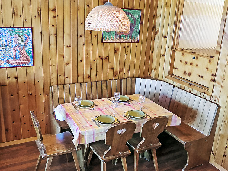 "Christiania 2 Tbel", 1-Zimmer-Wohnung 35 m2, im erhöhten Erdgeschoss. Objekt geeignet für 2 Erwachsene + 2 Kinder. Sehr einfach eingerichtet: Wohn-/Schlafzimmer mit 2 Wandklappbetten (80 cm, Länge 185 cm), Kabel-TV und Flachbildschirm. Ausgang zum Balkon. Eingang mit 1 x 2 Etagenbetten (75 cm, Länge 180 cm). Küche (3 Kochplatten, Backofen, Wasserkocher, Mikrowelle, elektrische Kaffeemaschine, Racletteofen, Fondue Set (Chinoise, Käse)). Bad/WC. Balkon, Nordlage. Balkonmöbel. Sicht auf die Berge und die Ortschaft. Zur Verfügung: Haartrockner. Internet (Wireless LAN, gratis). Bitte beachten: Nichtraucher-Haus, kein Parkplatz. Anstelle eines abgeschlossenen Schlafzimmers befinden sich manche Schlafplätze in einem offenen Bereich (Galerie, Nische etc.).