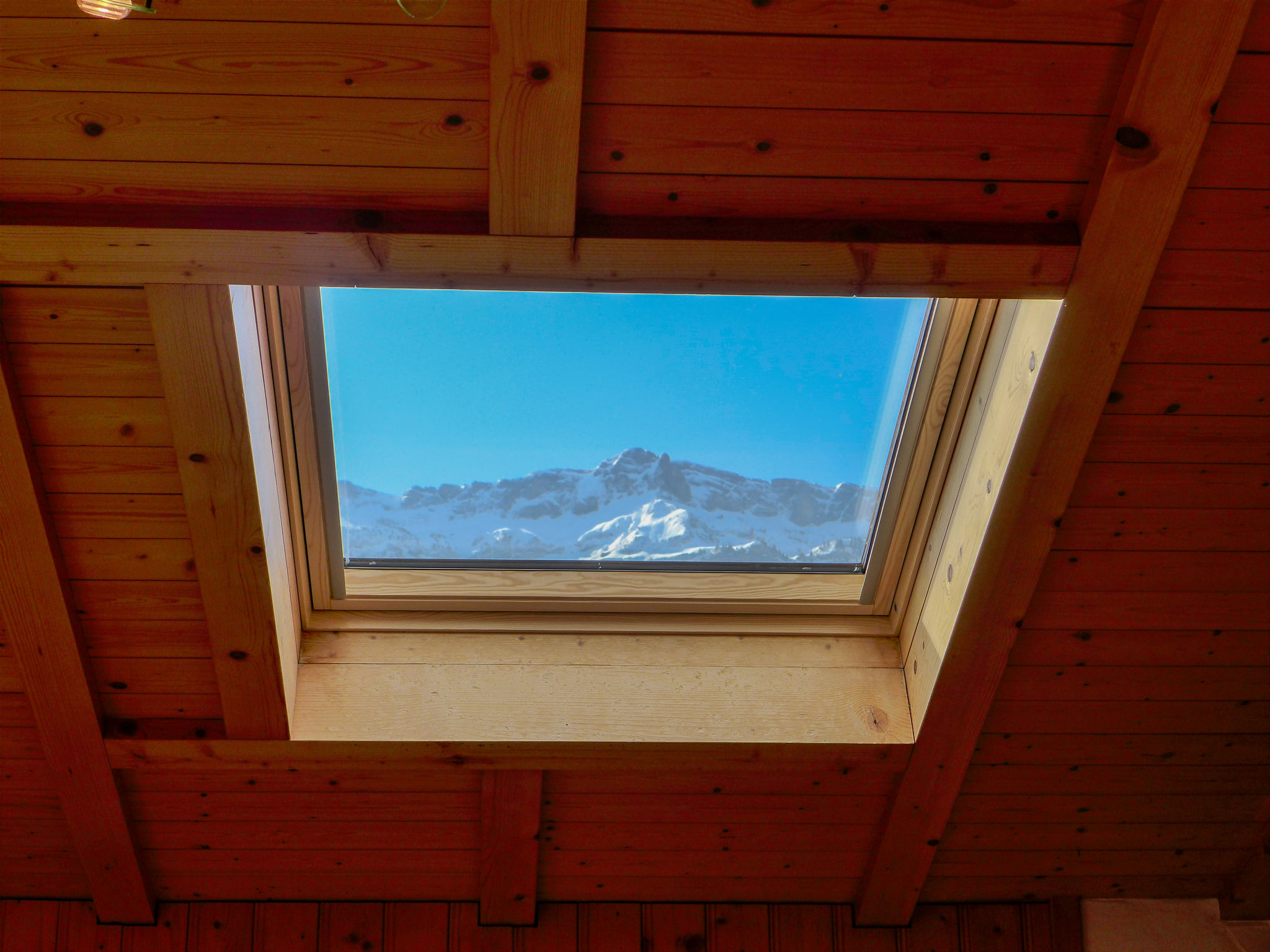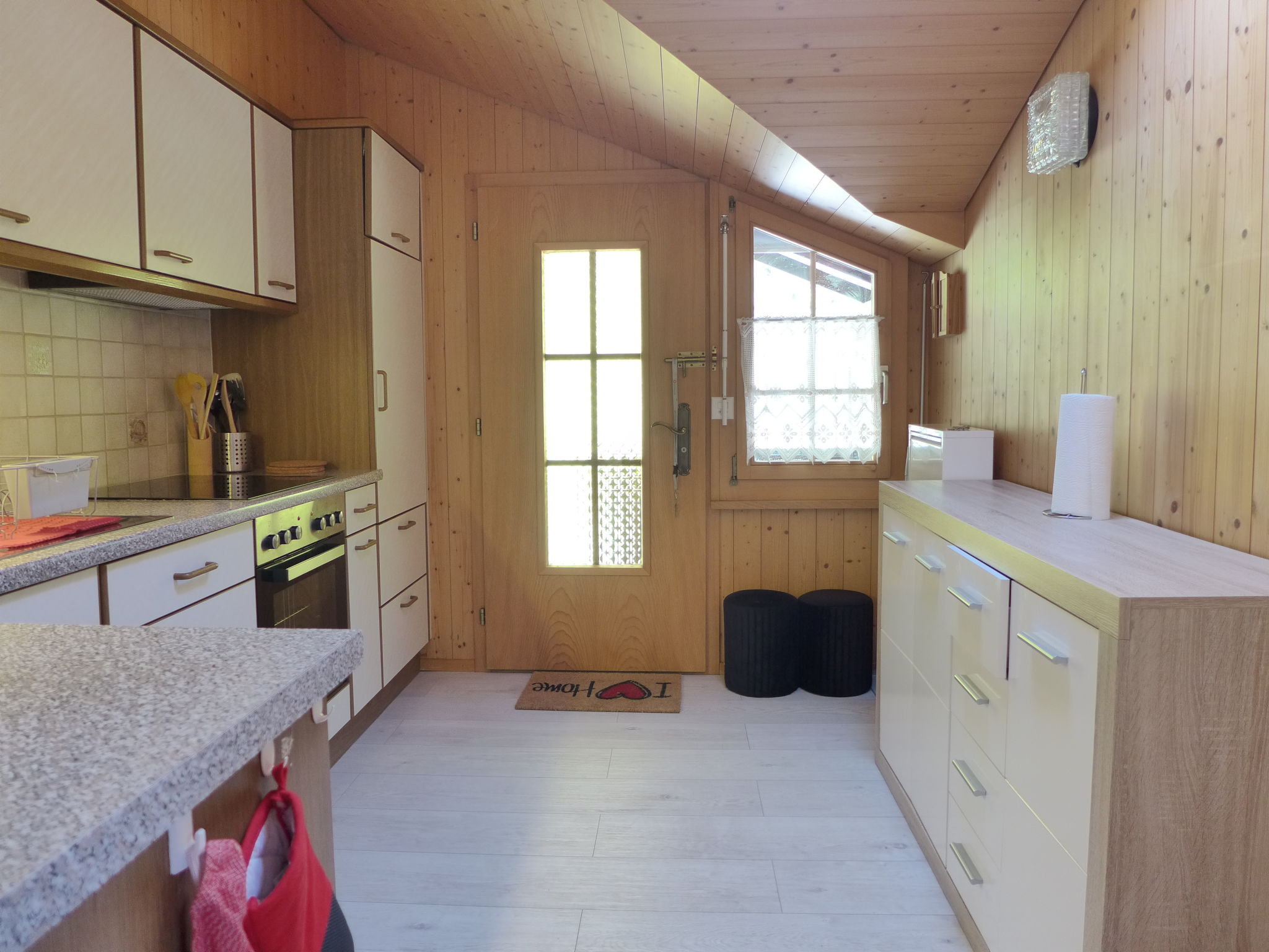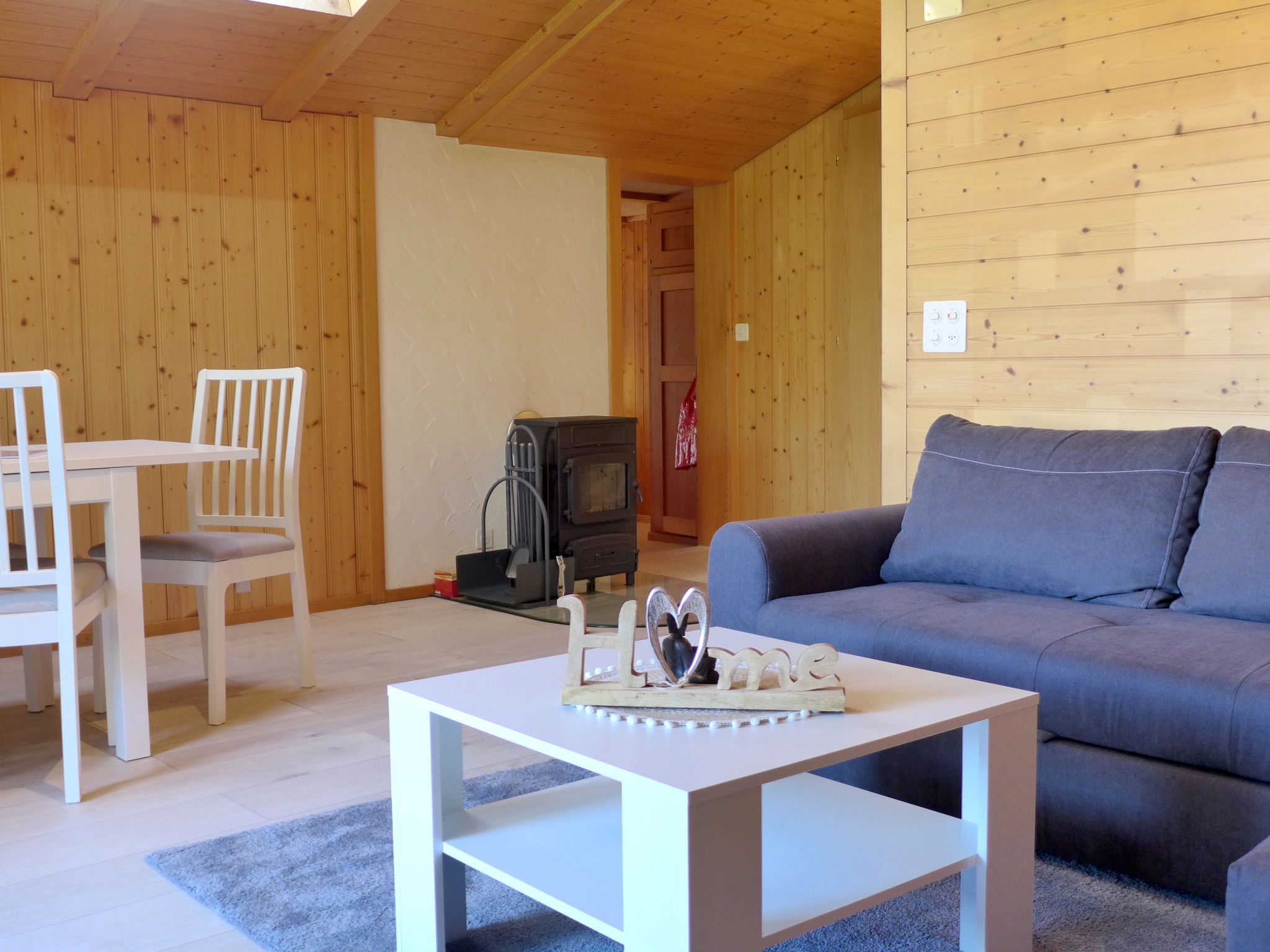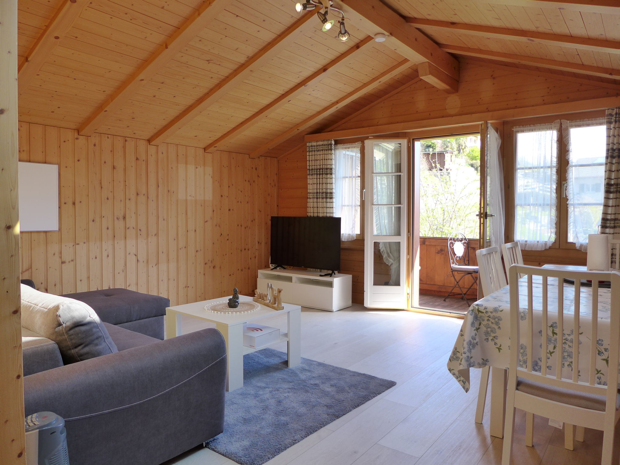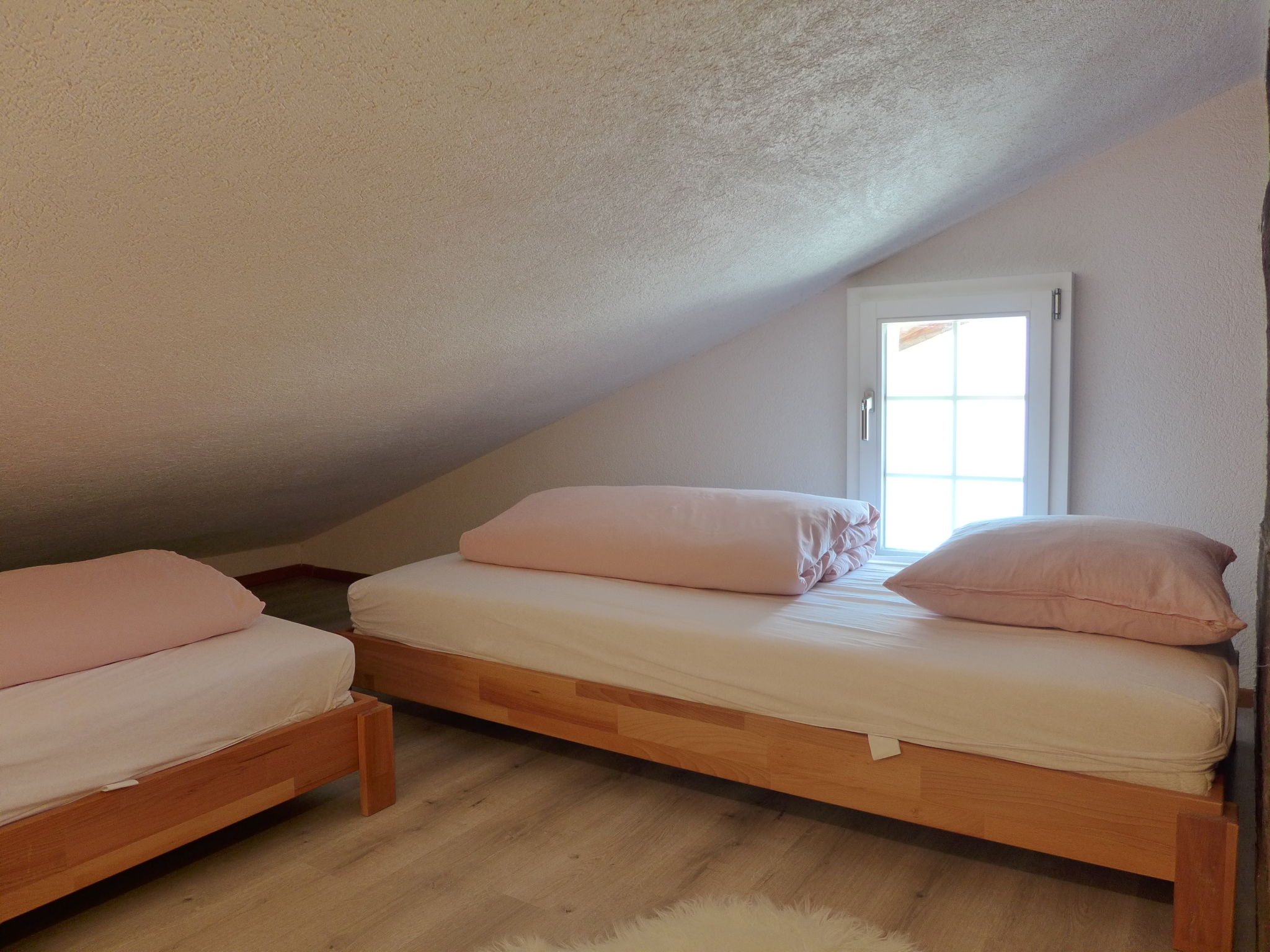 "Chalet Vamika", 2-Zimmer-Wohnung 52 m2, im Dachgeschoss. Objekt geeignet für 2 Erwachsene + 2 Kinder. Hell, teilweise renoviert im Jahre 2023, zweckmässig und gemütlich eingerichtet: offenes Wohn-/Schlafzimmer mit 1 Doppeldiwanbett (140 cm, Länge 200 cm), Schwedenofen, Esstisch und Digital-TV. Ausgang zum Balkon. 1 Doppelzimmer mit 1 Doppelbett (180 cm, Länge 200 cm). Abgeschrägtes kleines, verbundenes Zimmer, niedrige Türrahmen, Höhe 150 cm mit 2 Betten (90 cm, Länge 200 cm). Offene Küche im Eingang (4 Kochplatten, Backofen, Toaster, Wasserkocher, elektrische Kaffeemaschine, Kapseln für die Kaffeemaschine (Nespresso) extra, Racletteofen, Fondue Set (Käse)). Dusche/WC. E-Heizung, Holzheizung. Heizung nicht in allen Räumen. Balkon, Ostlage und Südlage. Balkonmöbel. Herrliche Sicht auf den See und die Berge. Zur Verfügung: Waschmaschine, Babybett bis 2 Jahre (extra), Haartrockner, Holz (gratis). Internet (WLAN, gratis). Parkplatz (1 Auto). Bitte beachten: Nichtraucher-Unterkunft. Rauchmelder, Feuerlöscher.