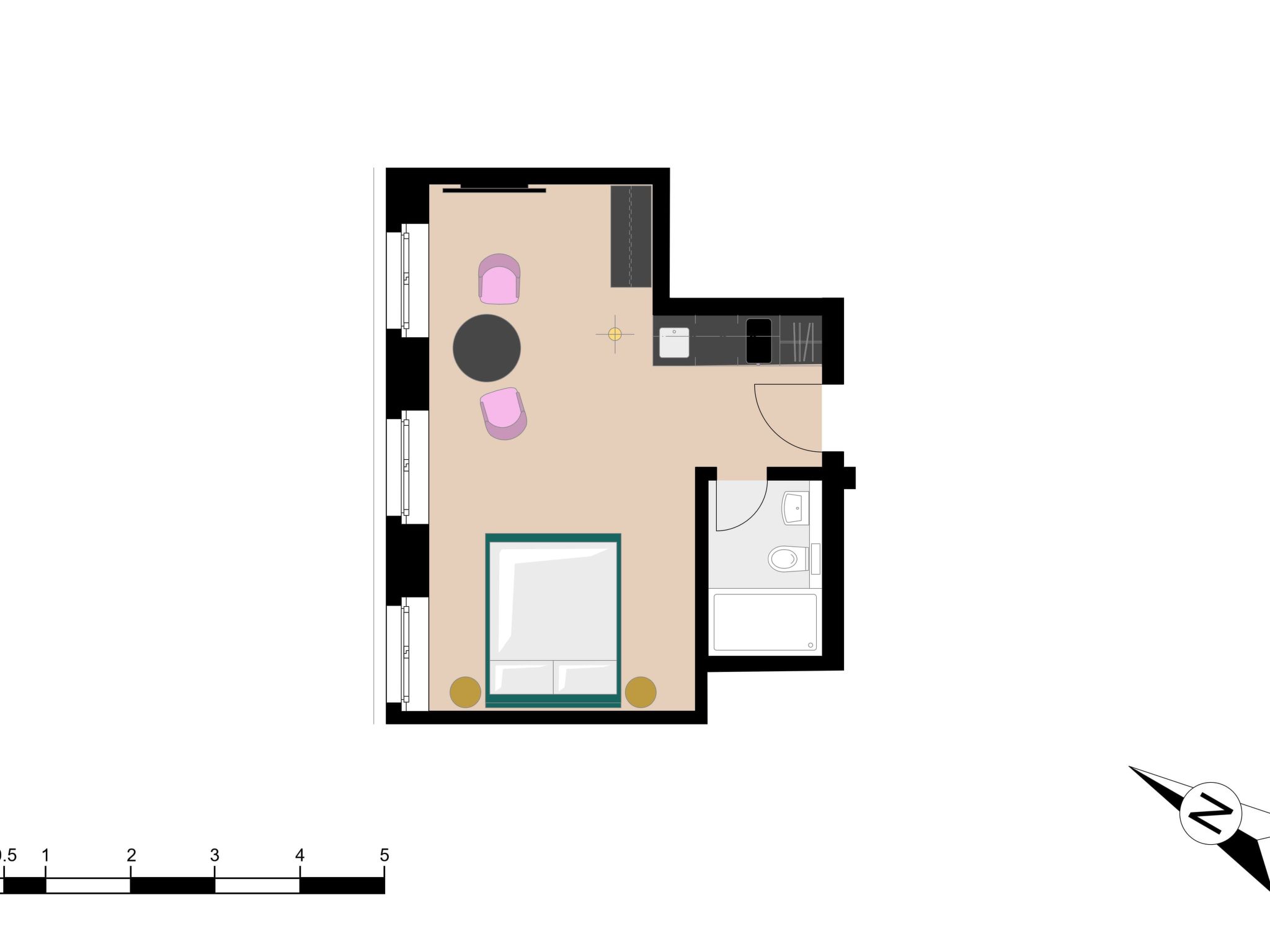 - Schlafzimmeranzahl: Studio (kein separates Schlafzimmer)