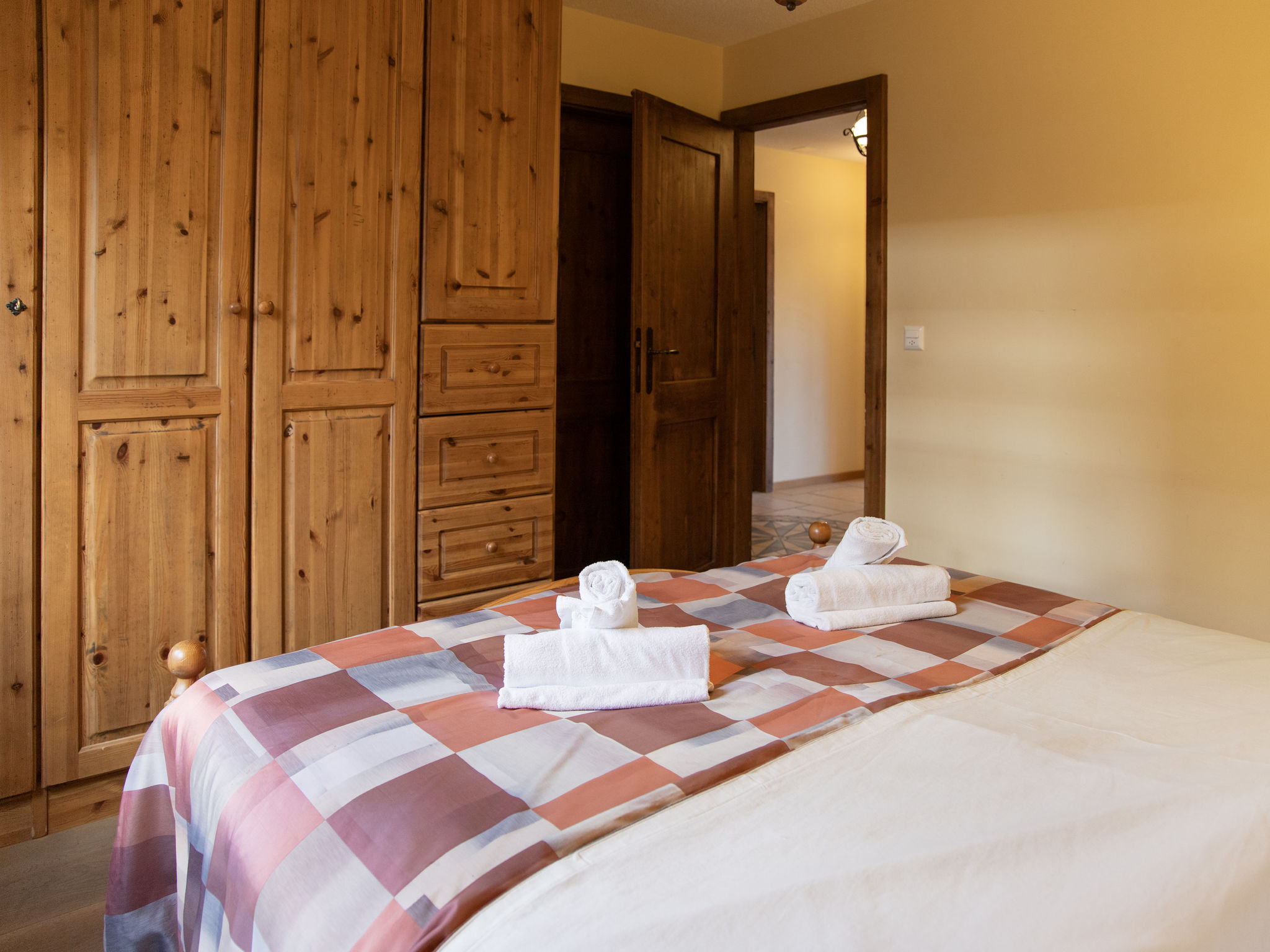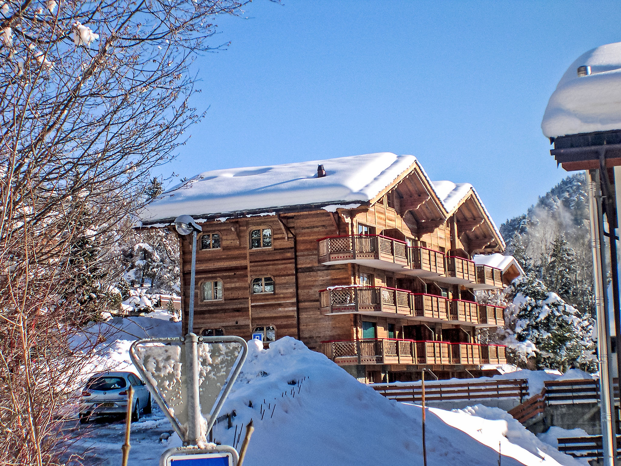 "Ardève 7", 4-Zimmer-Wohnung 100 m2 im 1. Stock, Südostlage. Sehr komfortabel und schön eingerichtet: Wohn-/Esszimmer mit offenem Kamin (nur Deko), Kabel-TV, CD, Stereoanlage und DVD. Ausgang zum Balkon. 2 Zimmer, jedes Zimmer mit 2 Betten (90 cm, Länge 200 cm), Radio. 1 Zimmer mit 1 franz. Bett (1 x 160 cm, Länge 200 cm), Bad/WC und Waschbecken. Offene Küche (Backofen, Geschirrspüler, 4 Glaskeramikplatten, Mikrowelle, elektrische Kaffeemaschine, Kapseln für die Kaffeemaschine (Nespresso) extra, Racletteofen, Fondue Set (Chinoise, Käse)). Dusche/WC. Ölheizung. Grosser Balkon. Terrassenmöbel, Liegestühle (4). Sehr schöne Sicht auf die Berge und das Tal. Zur Verfügung: Bügeleisen, Kinderhochstuhl, Babybett bis 3 Jahre, Haartrockner. Internet (WLAN, gratis). Parkplatz, Garage Nr. 7, Höhe 205 cm. Bitte beachten: Nichtraucher-Unterkunft.