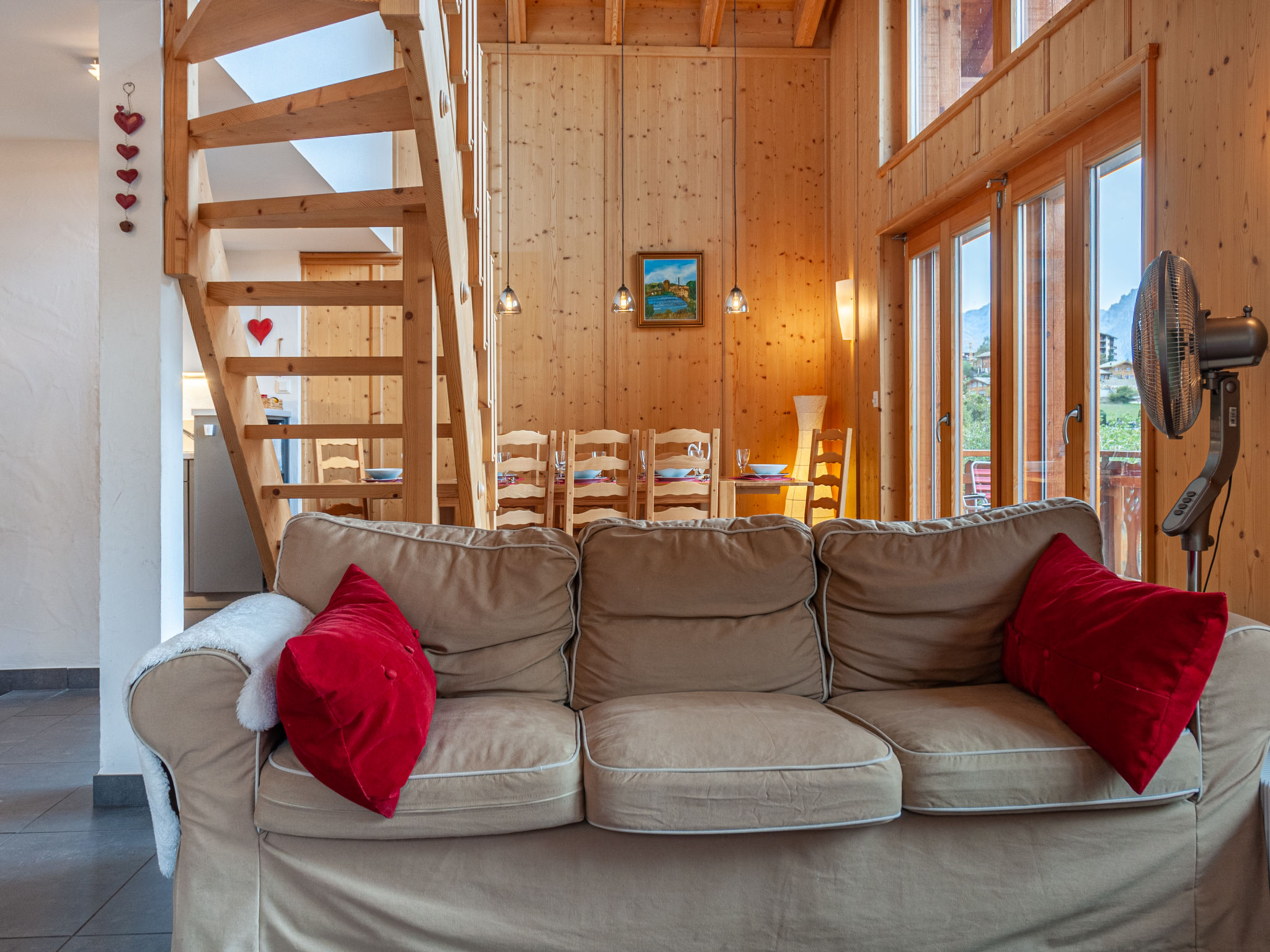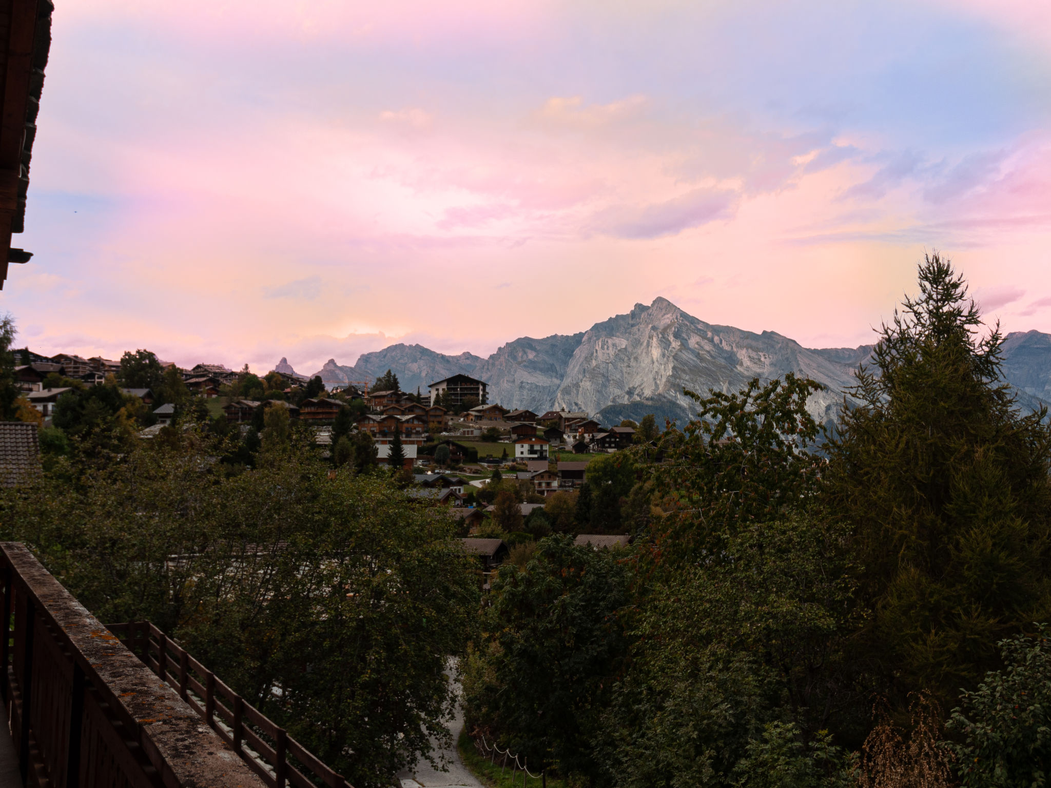 "Sneachta", 5-Zimmer-Chalet 115 m2 auf 3 Stockwerken. Objekt geeignet für 4 Erwachsene + 4 Kinder. Komfortabel und gemütlich eingerichtet: kleiner Eingang. Wohn-/Esszimmer mit offenem Kamin, Kabel-TV und DVD. Ausgang zur Terrasse, Richtung Norden. Kleine, offene Küche (Backofen, Geschirrspüler, 4 Glaskeramikplatten, Toaster, Wasserkocher, Mikrowelle, Tiefkühler, elektrische Kaffeemaschine, Kapseln für die Kaffeemaschine (Nespresso) extra, Racletteofen, Fondue Set (Käse)). Dusche/WC. E-Heizung, Fussbodenheizung. Unteres Geschoss: 2 Zimmer, jedes Zimmer mit 1 franz. Bett (160 cm, Länge 200 cm). 1 Zimmer mit 2 Betten (90 cm, Länge 200 cm). Bad/WC. Obergeschoss: 1 Zimmer mit 1 Doppelbett (160 cm, Länge 200 cm), Bad/Dusche/WC. Grosse Terrasse, Nordlage und Ostlage. Terrassenmöbel, Gartengrill. Herrliche Panoramasicht auf die Berge. Zur Verfügung: Waschmaschine, Wäschetrockner, Kinderhochstuhl. Internet (WLAN, gratis). Parkplatz (2 Autos). Bitte beachten: geeignet für Familien. Nichtraucher-Haus. Maximal 1 Haustier/Hund erlaubt.