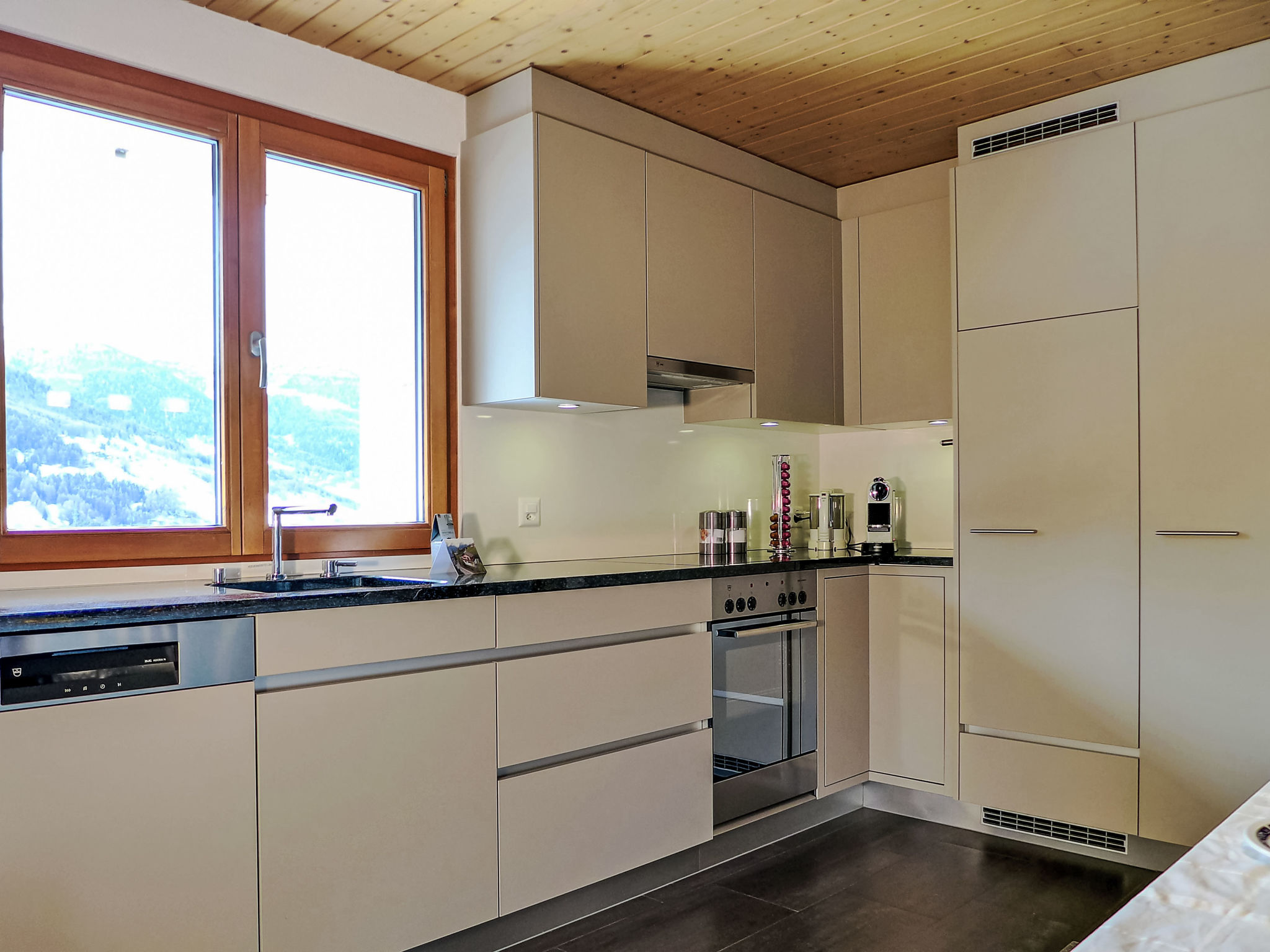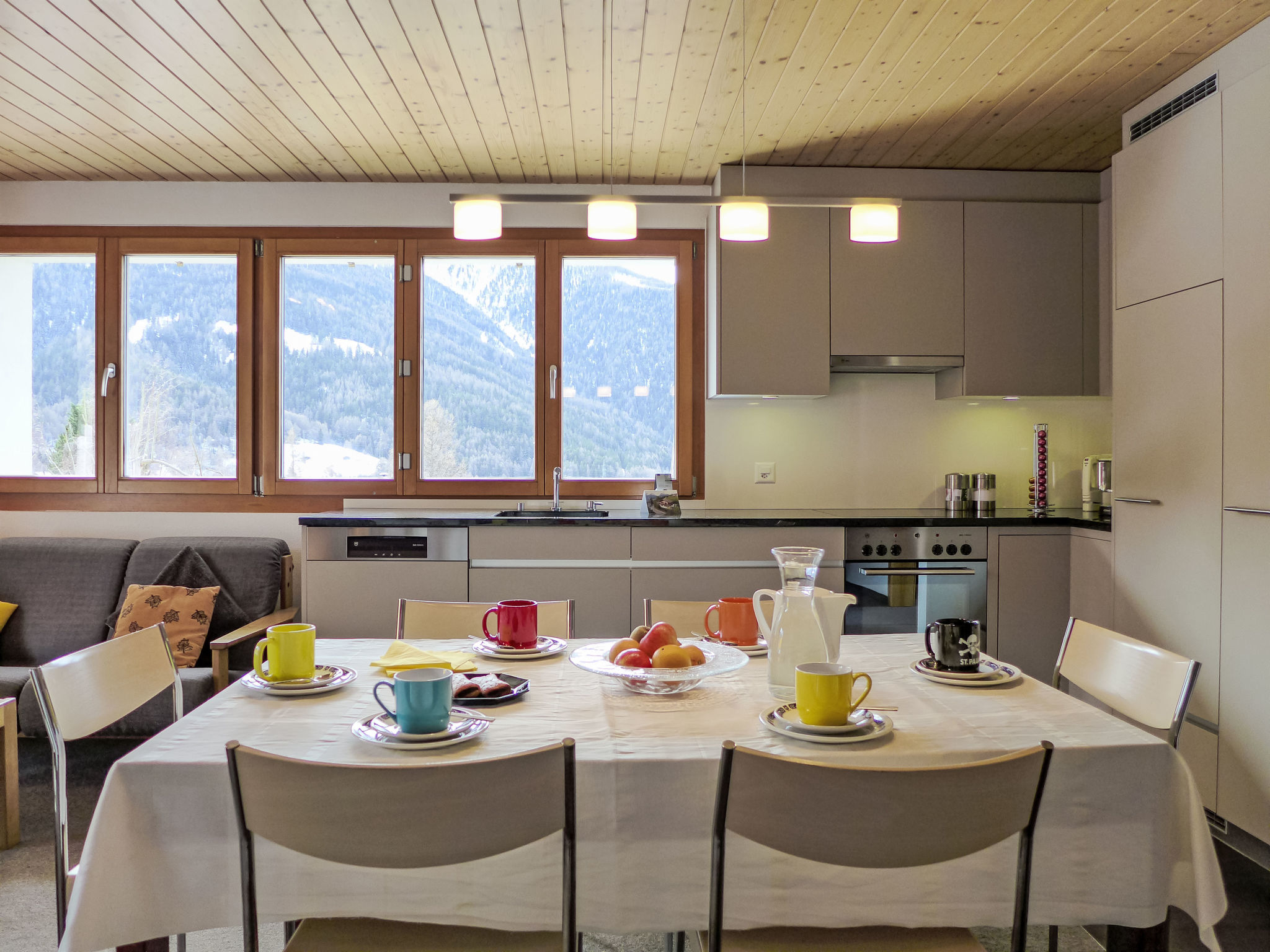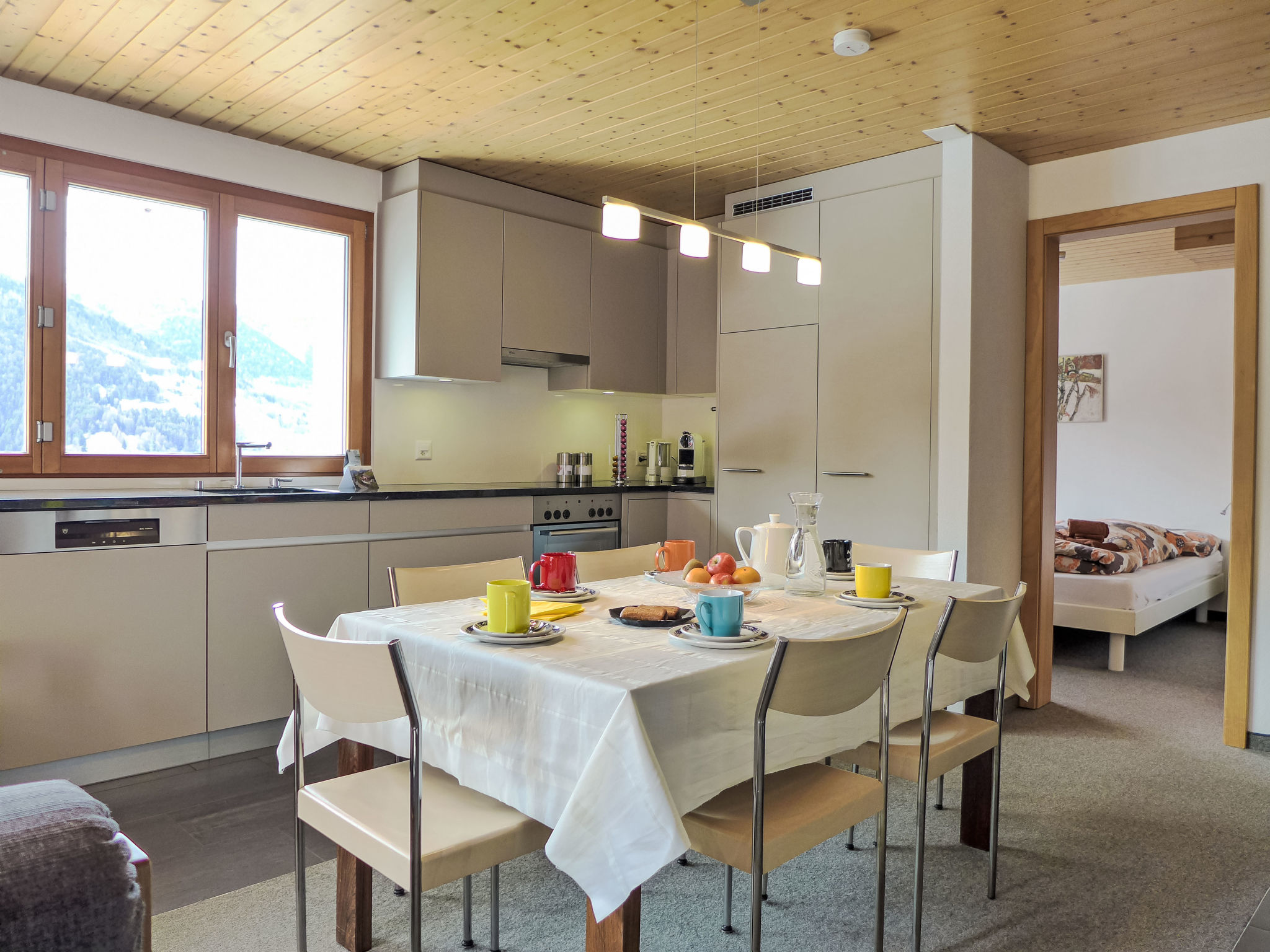 "Chalet Gredetsch 4B", 3-Zimmer-Wohnung im Erdgeschoss. Geräumig und hell, modern und gemütlich eingerichtet: offenes Wohn-/Esszimmer mit Schwedenofen, Kabel-TV und Flachbildschirm. Ausgang zur Terrasse. 1 Zimmer mit 1 Doppelbett (2 x 80 cm, Länge 200 cm). 1 Kinderzimmer mit 1 x 2 Etagenbetten (90 cm, Länge 200 cm). Offene Küche (Backofen, Geschirrspüler, 4 Glaskeramikplatten, Toaster, Wasserkocher, elektrische Kaffeemaschine, Kapseln für die Kaffeemaschine (Nespresso) extra, Racletteofen, Fondue Set (Käse)) mit Esstisch. Dusche/WC. Holzheizung. Teppichboden. Grosse Terrasse. Terrassenmöbel, Liegestühle. Herrliche Panoramasicht auf die Berge, das Tal und die Landschaft. Zur Verfügung: Waschmaschine, Wäschetrockner, Kinderhochstuhl, Babybett (extra), Haartrockner, Holz (gratis). Internet (Wireless LAN, gratis). Parkplatz (1 Auto) beim Haus. Bitte beachten: geeignet für Familien. Nichtraucher-Unterkunft. Rauchmelder, Feuerlöscher.